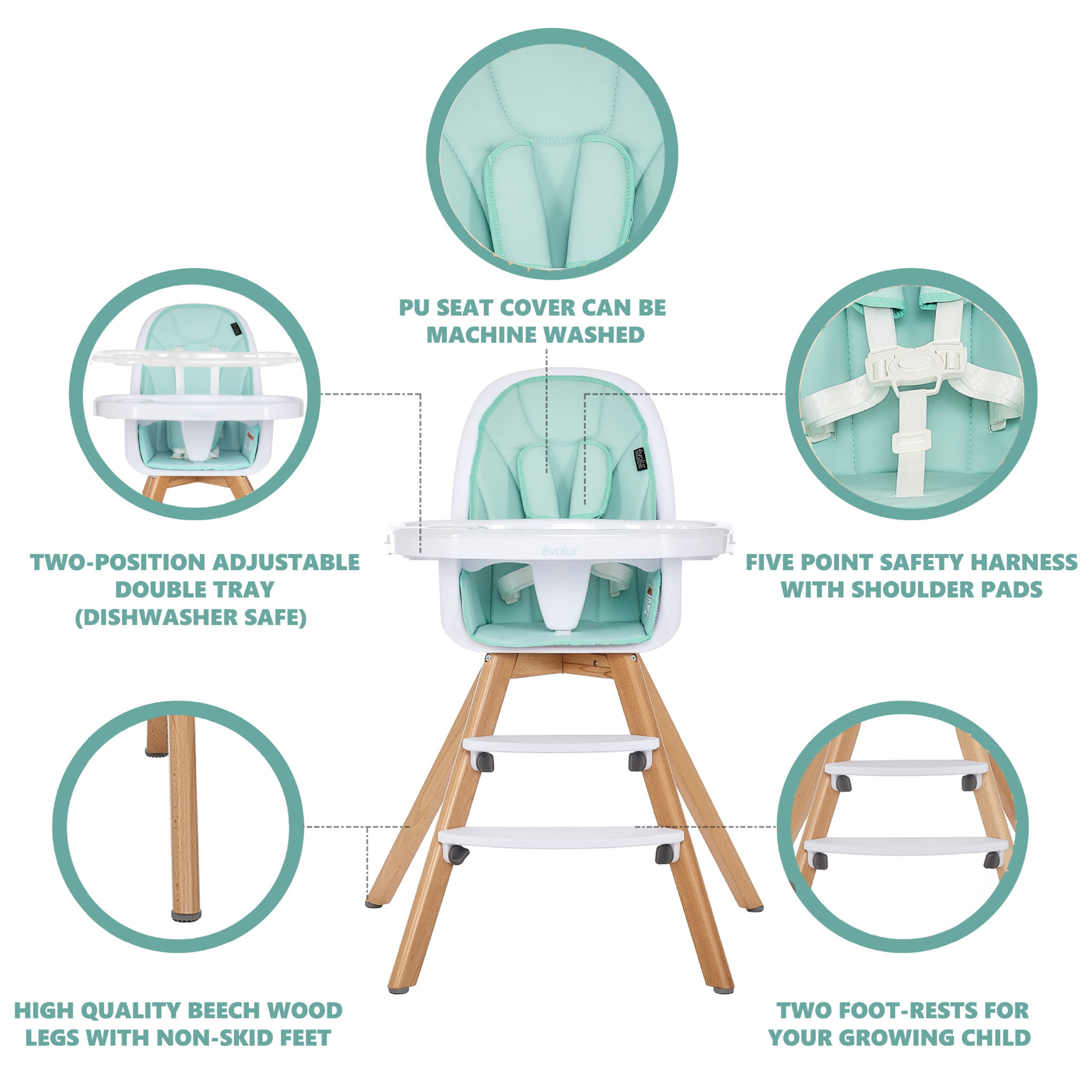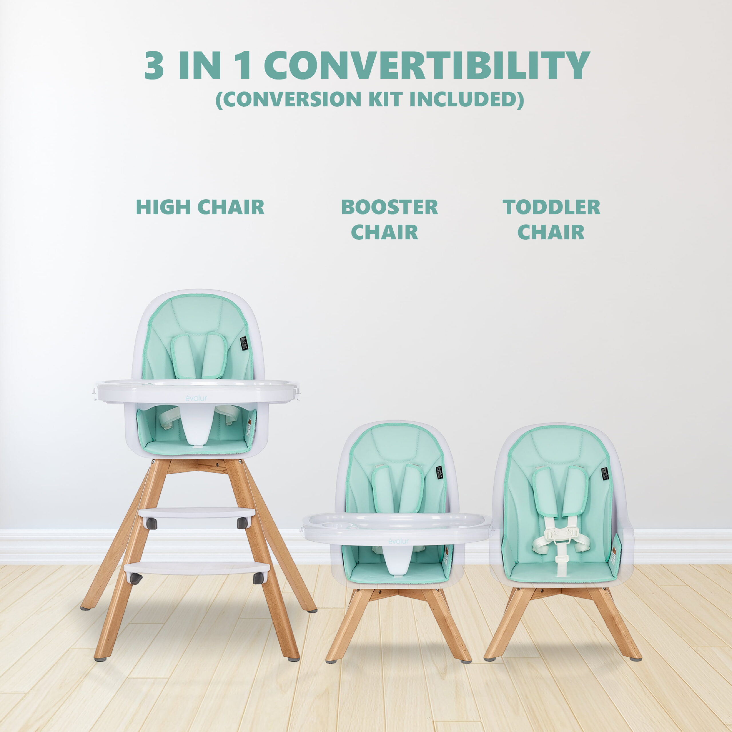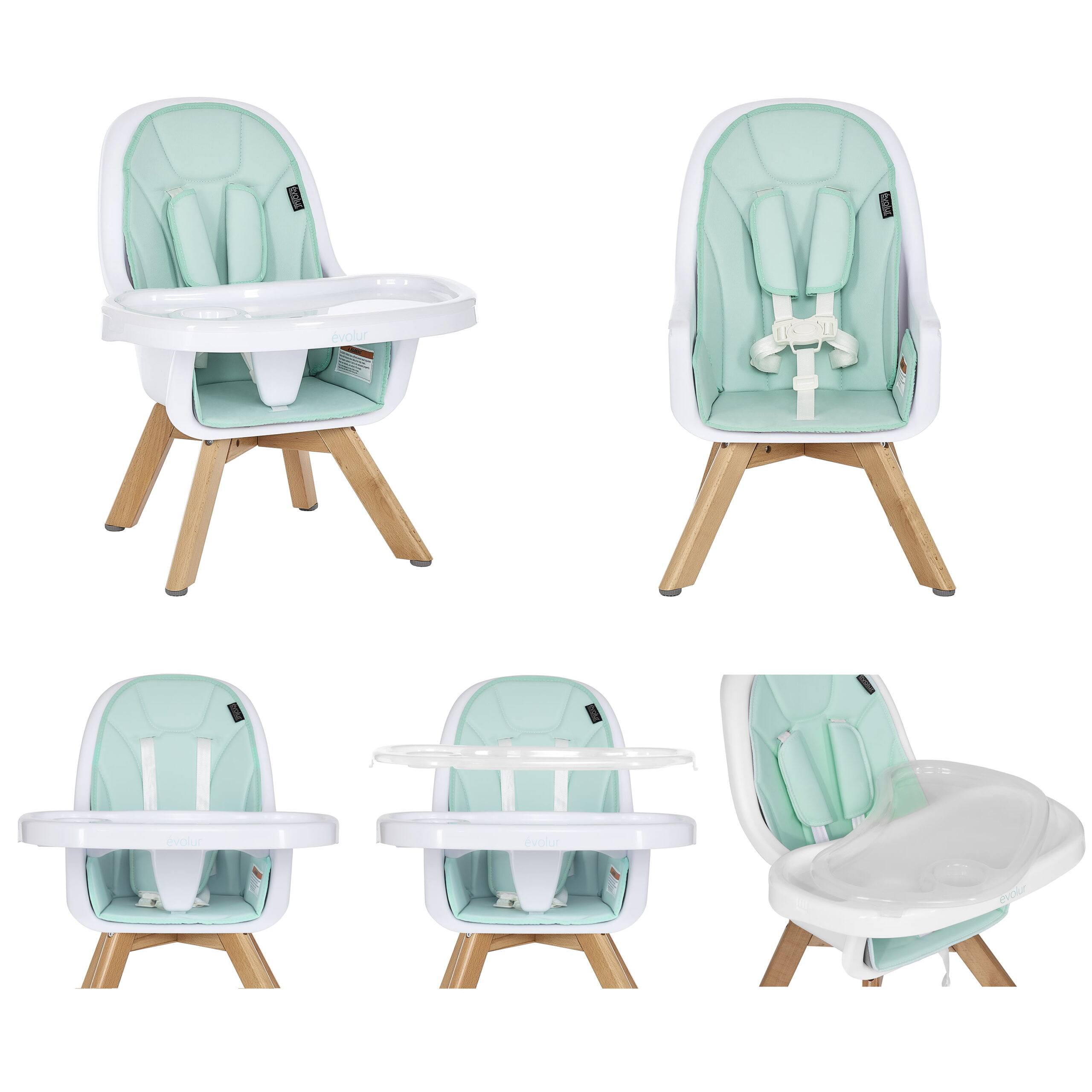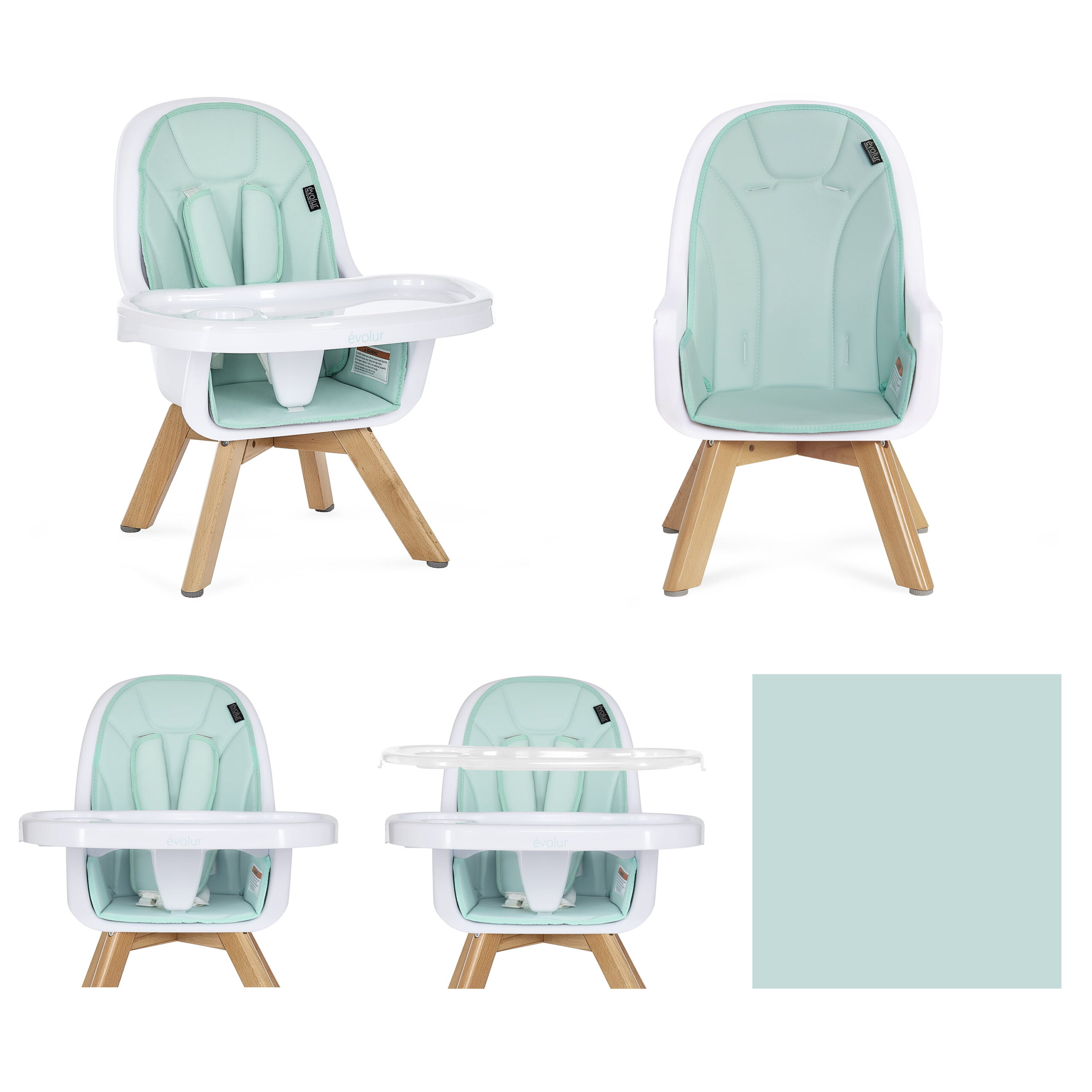 Evolur Zoodle 3-in-1 High Chair Booster Feeding Chair with Modern Design. Mint (Model #254)