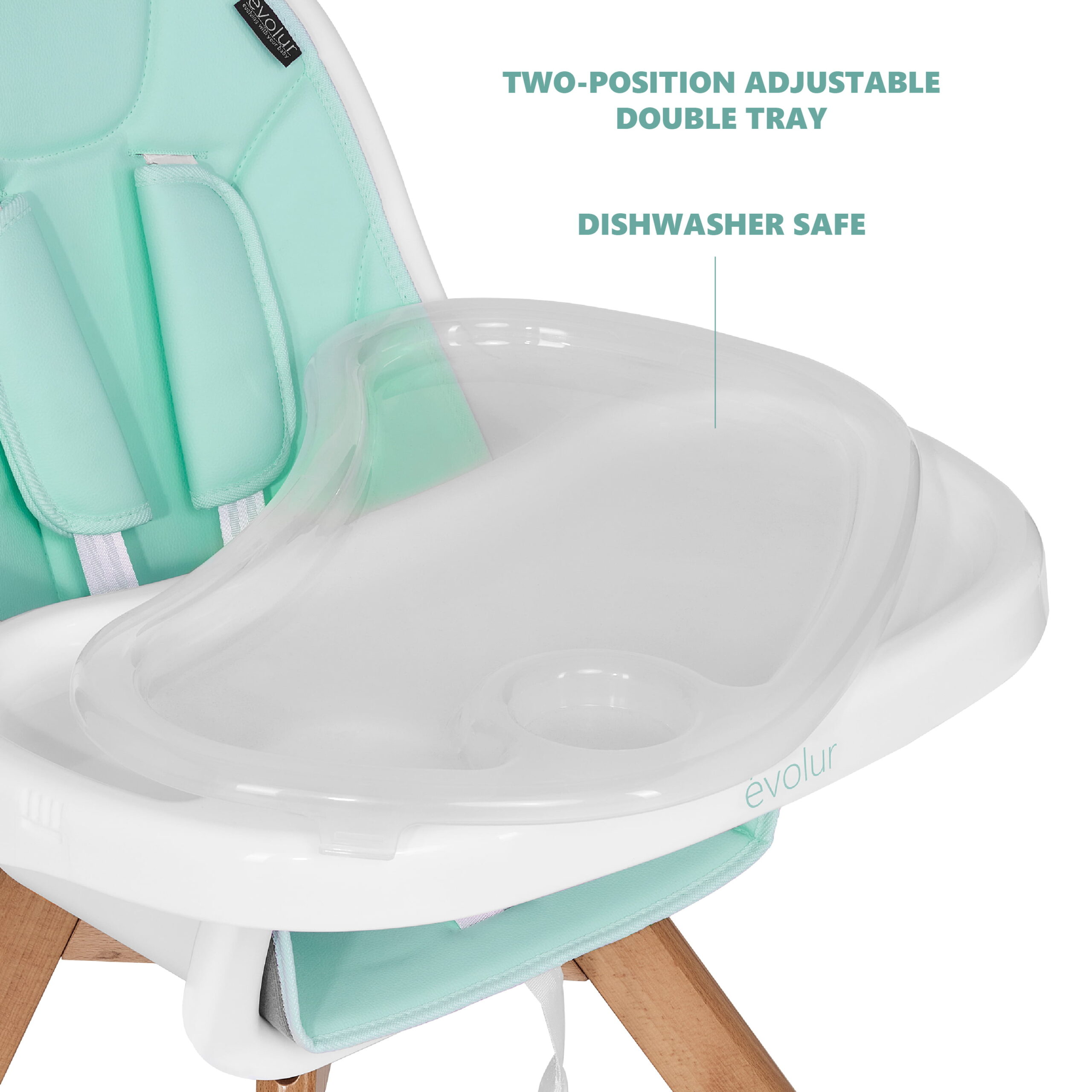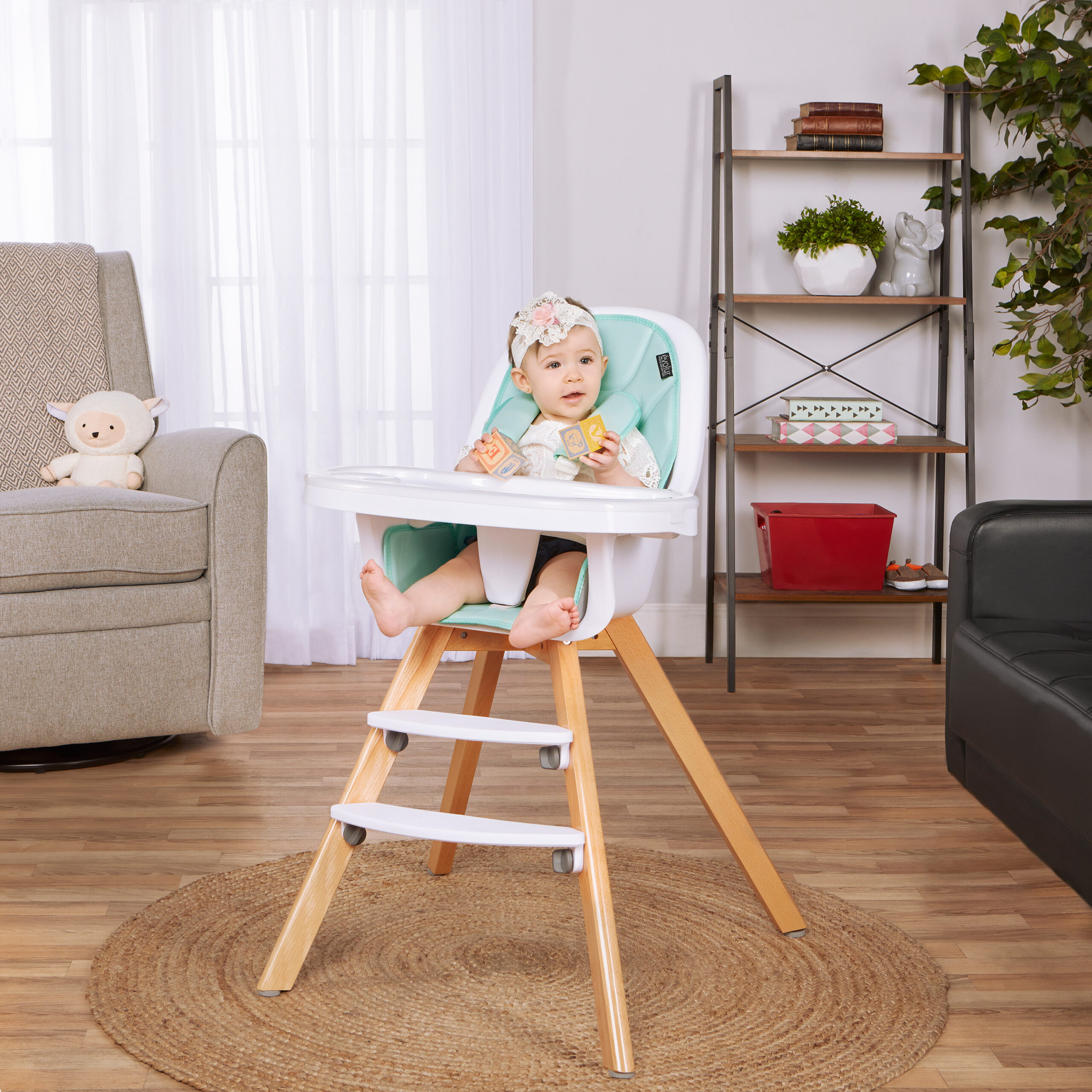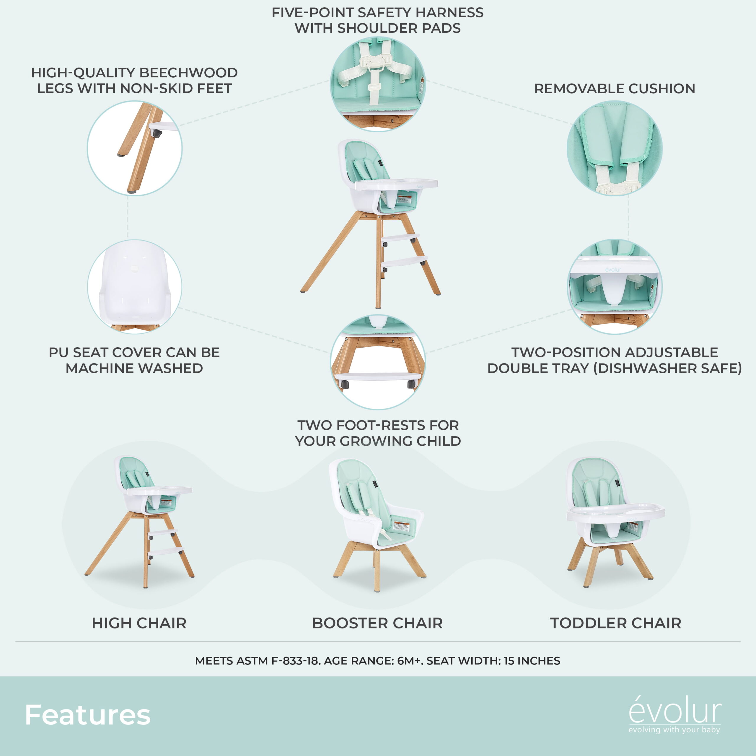 Evolur Zoodle 3-in-1 High Chair Booster Feeding Chair with Modern Design. Mint (Model #254)