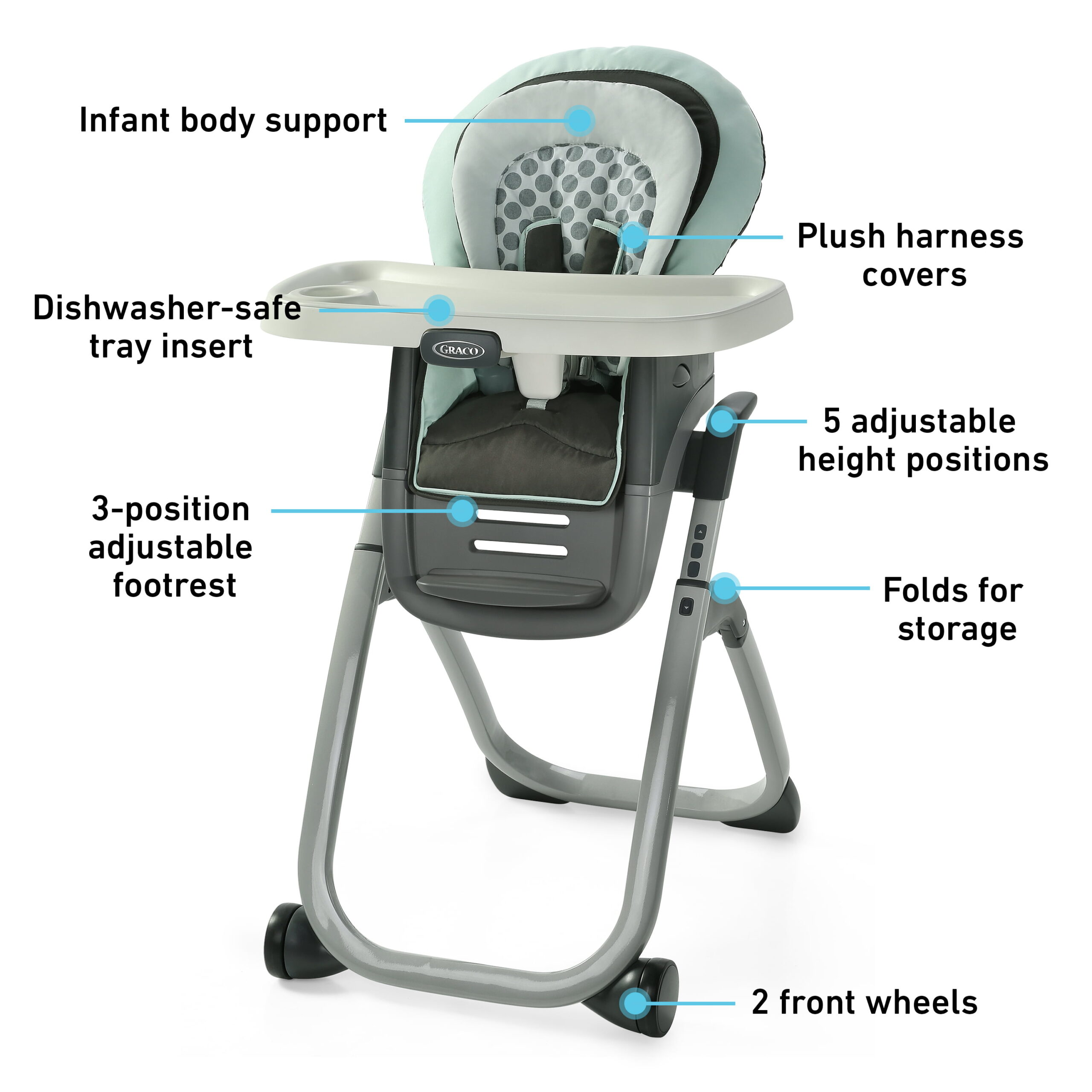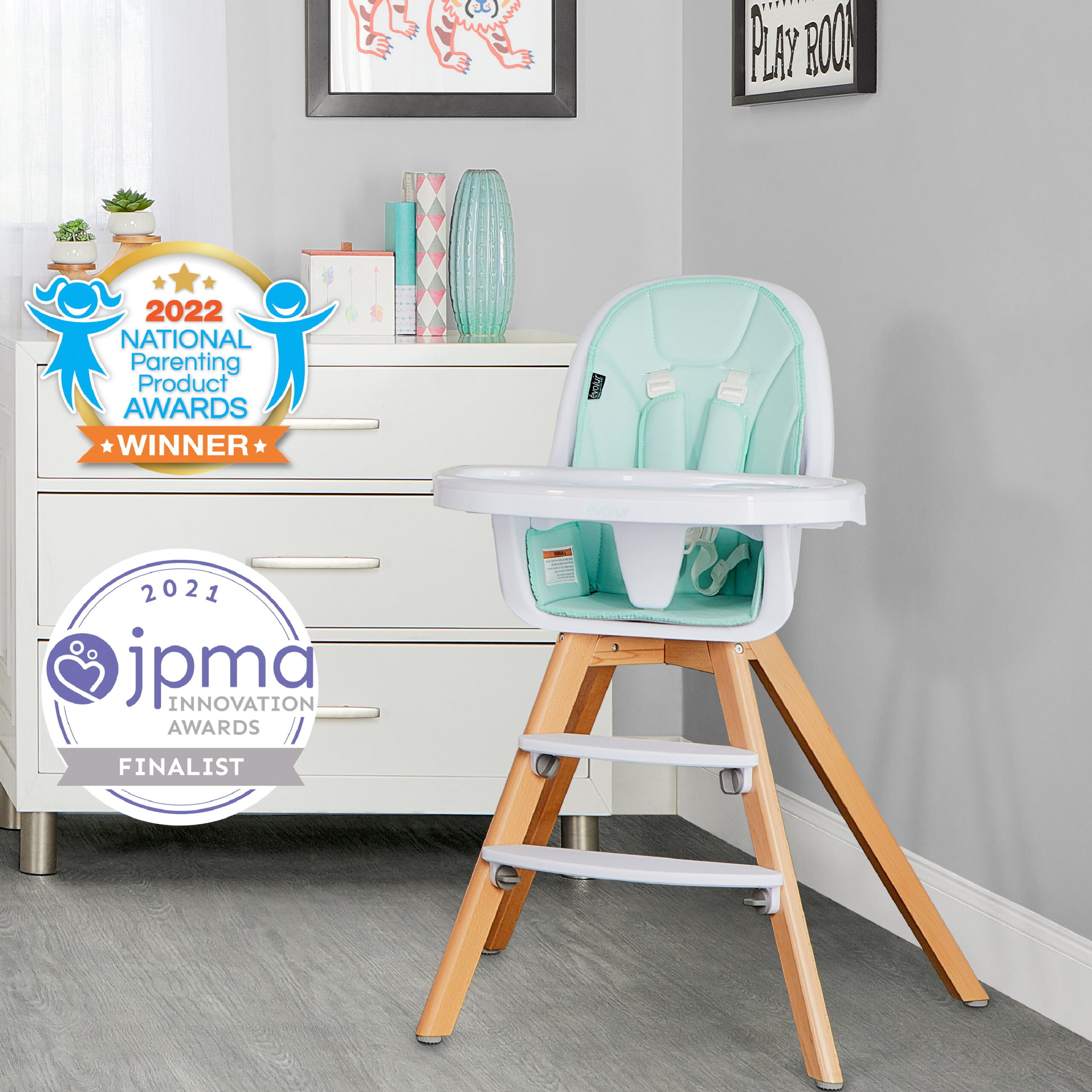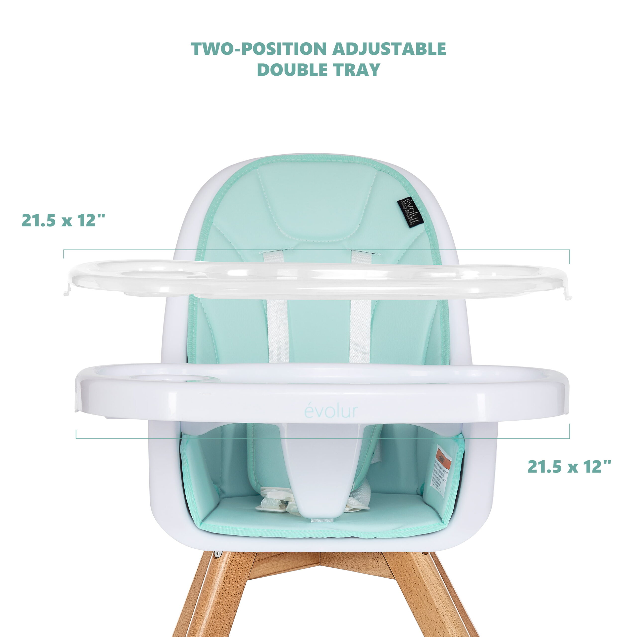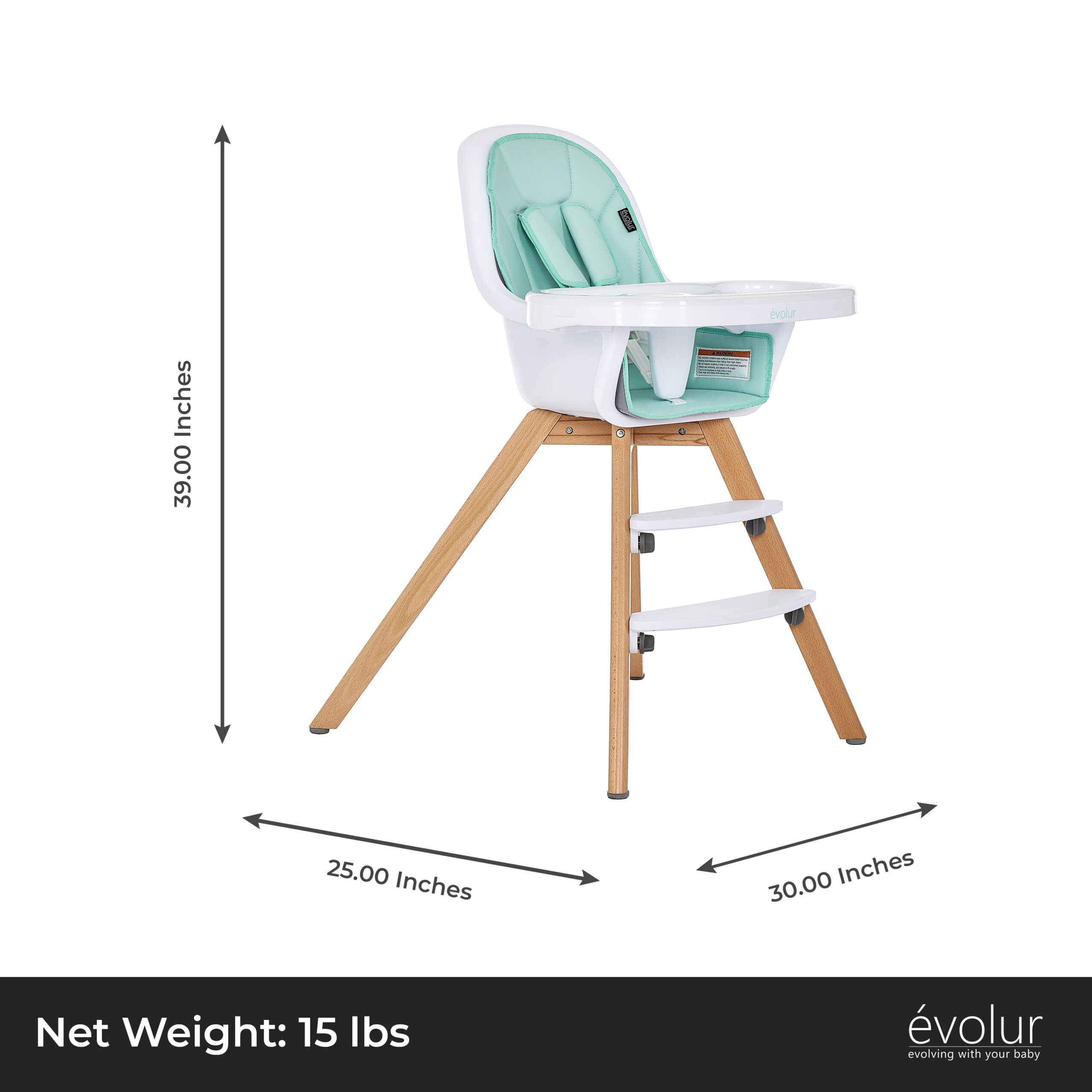 Evolur Zoodle 3-in-1 High Chair Booster Feeding Chair with Modern Design. Mint (Model #254)