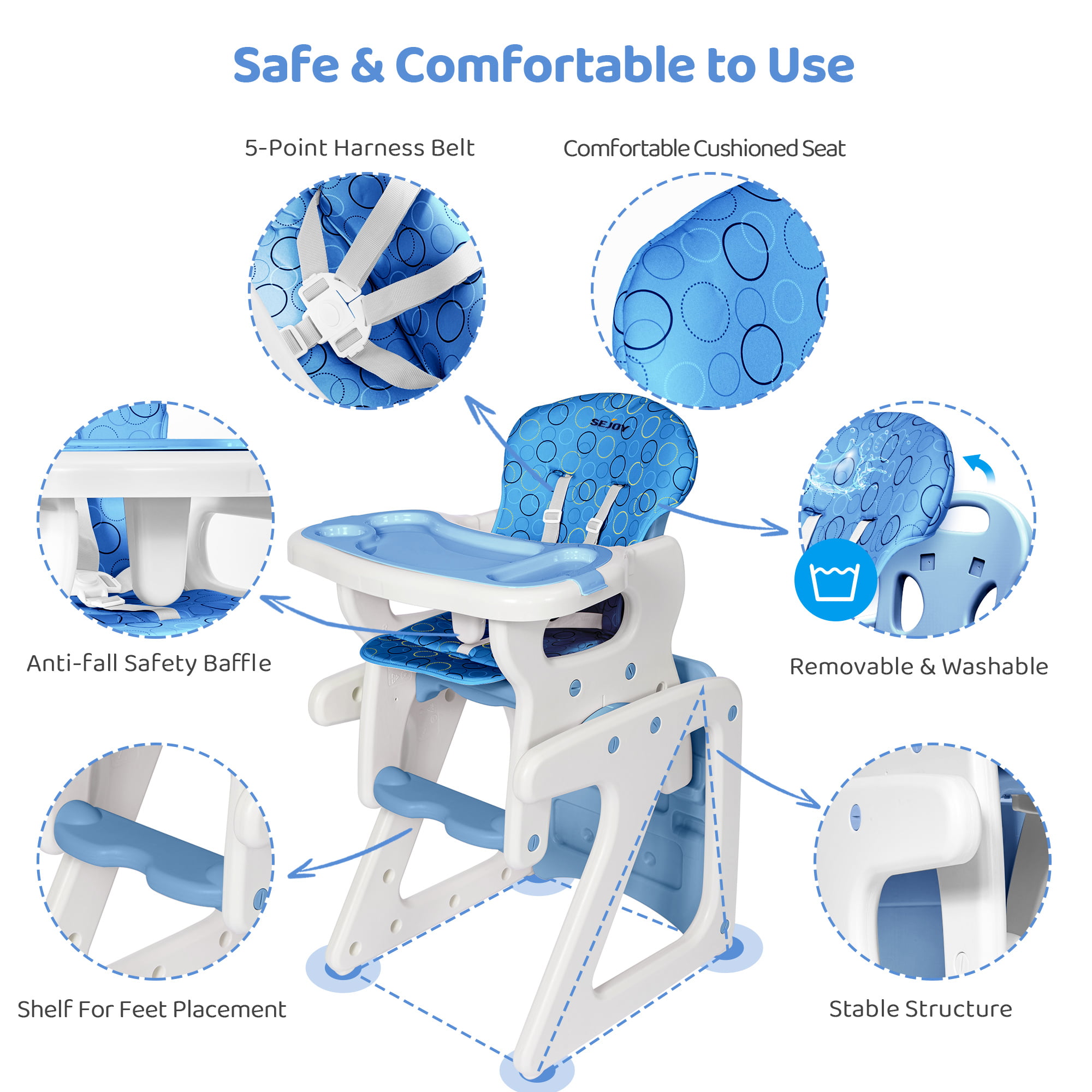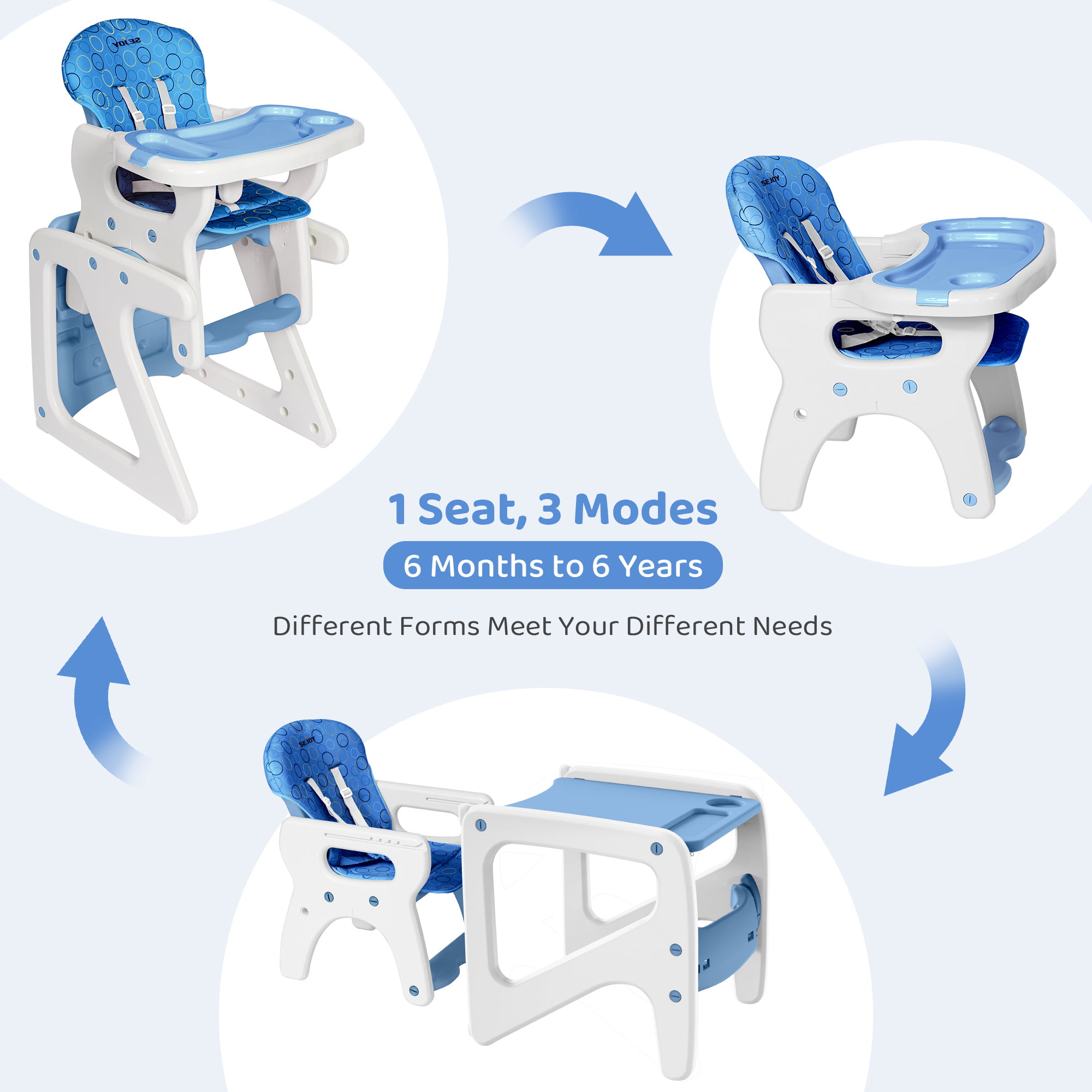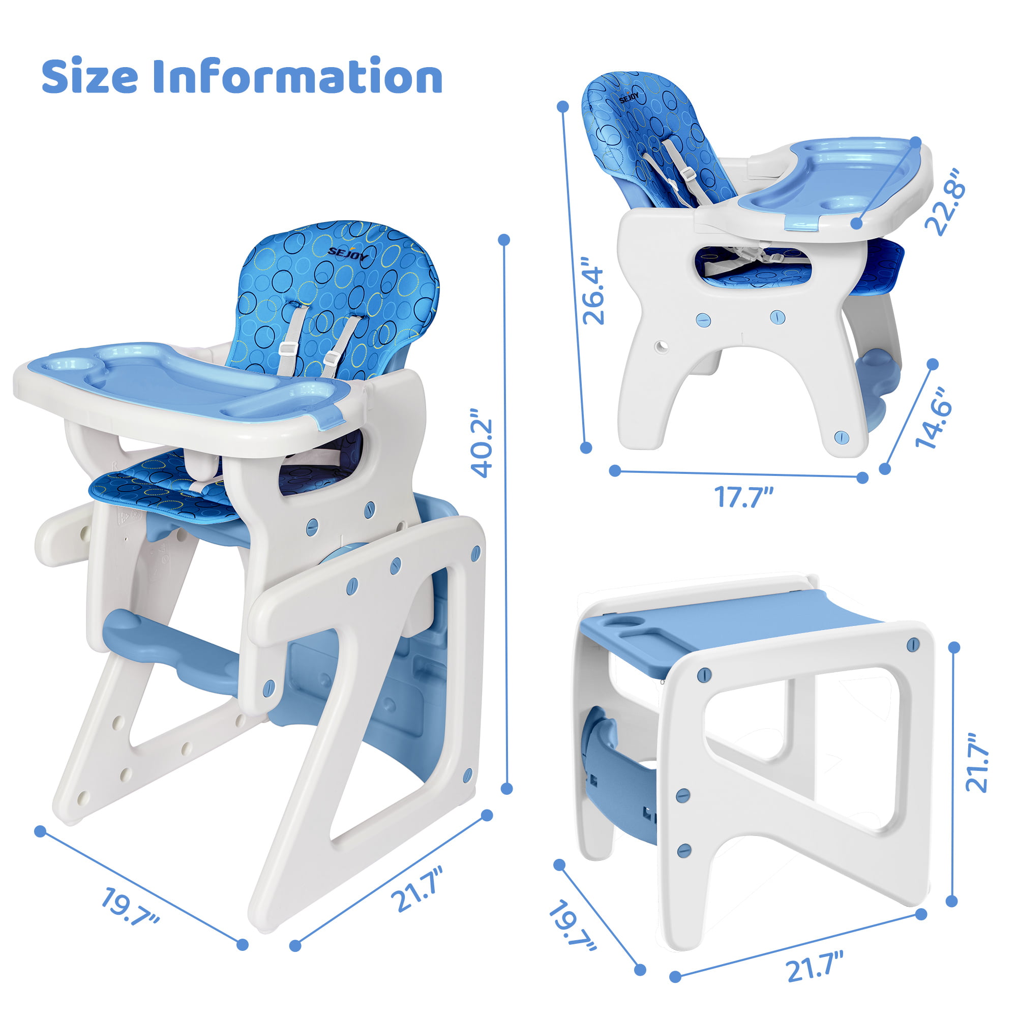 Sejoy 3 in 1 Baby High Chair Convertible Play Table Seat Booster Toddler Feeding Tray. Blue