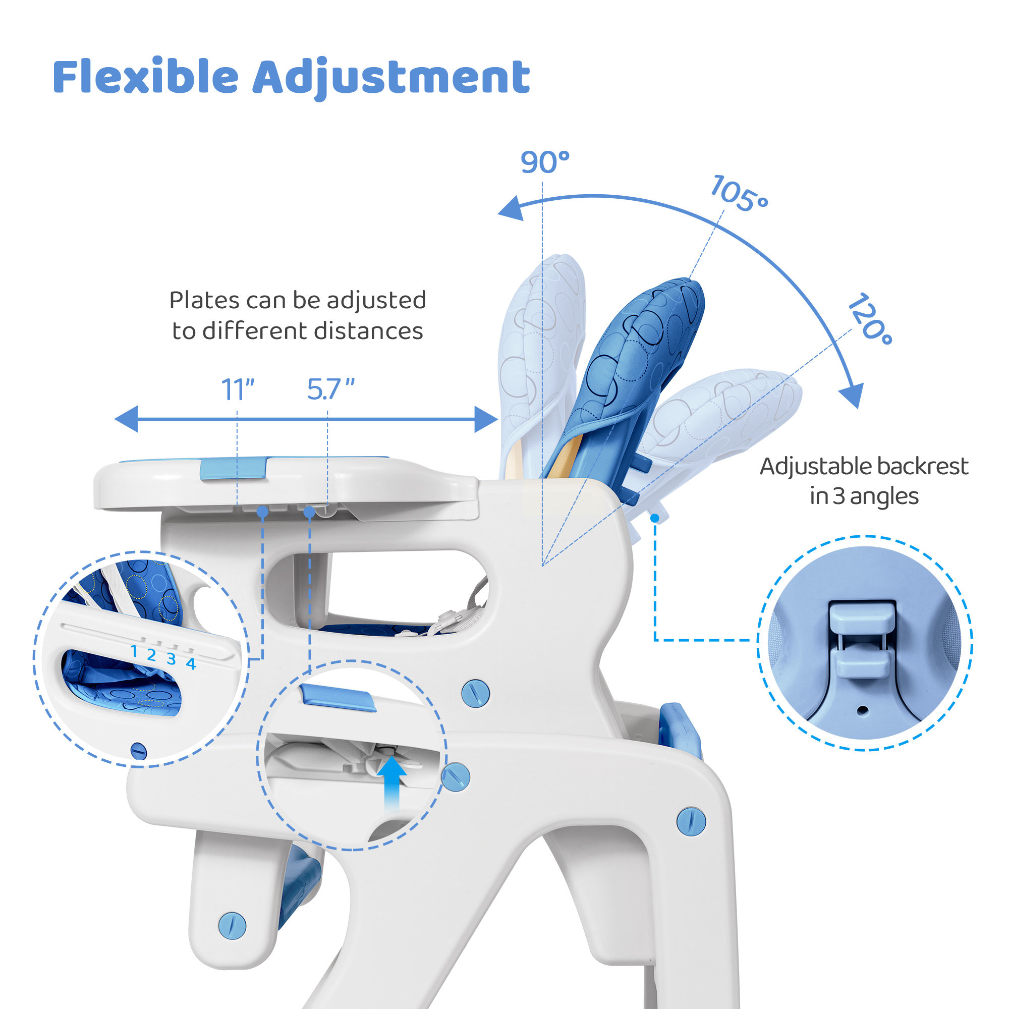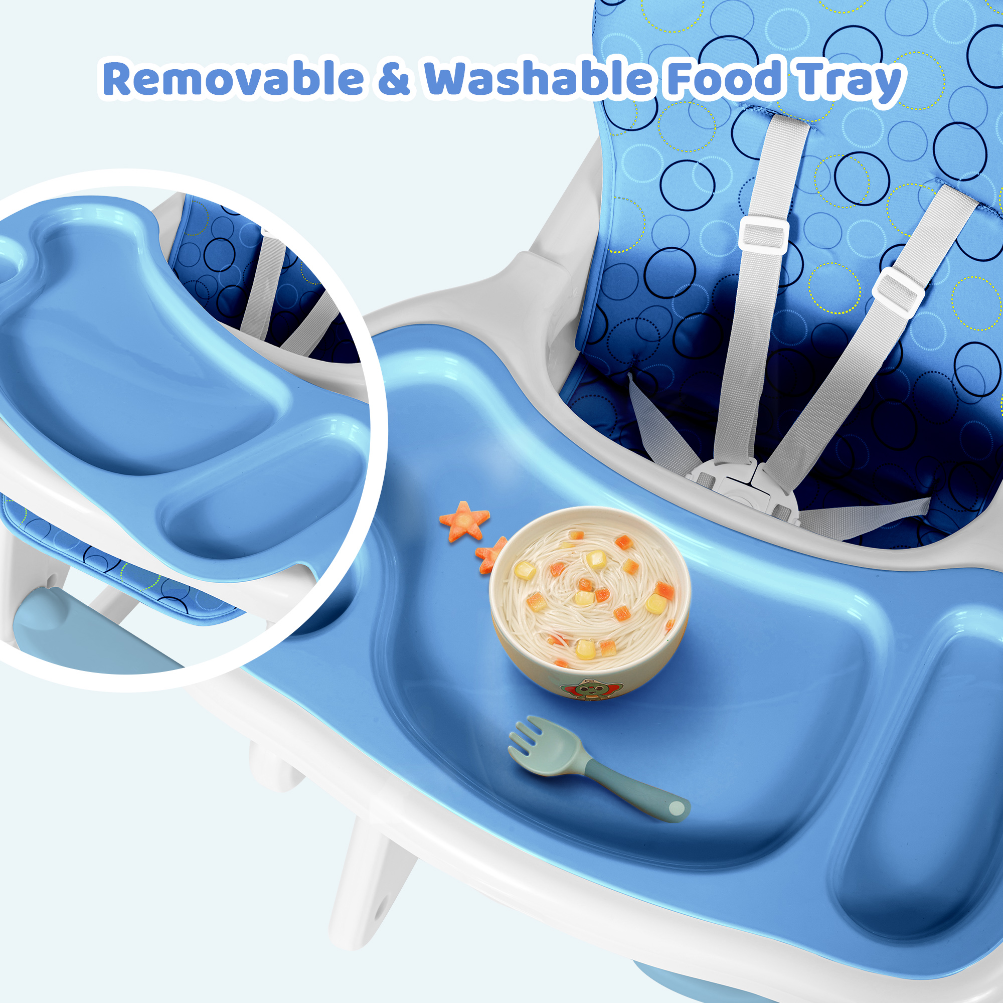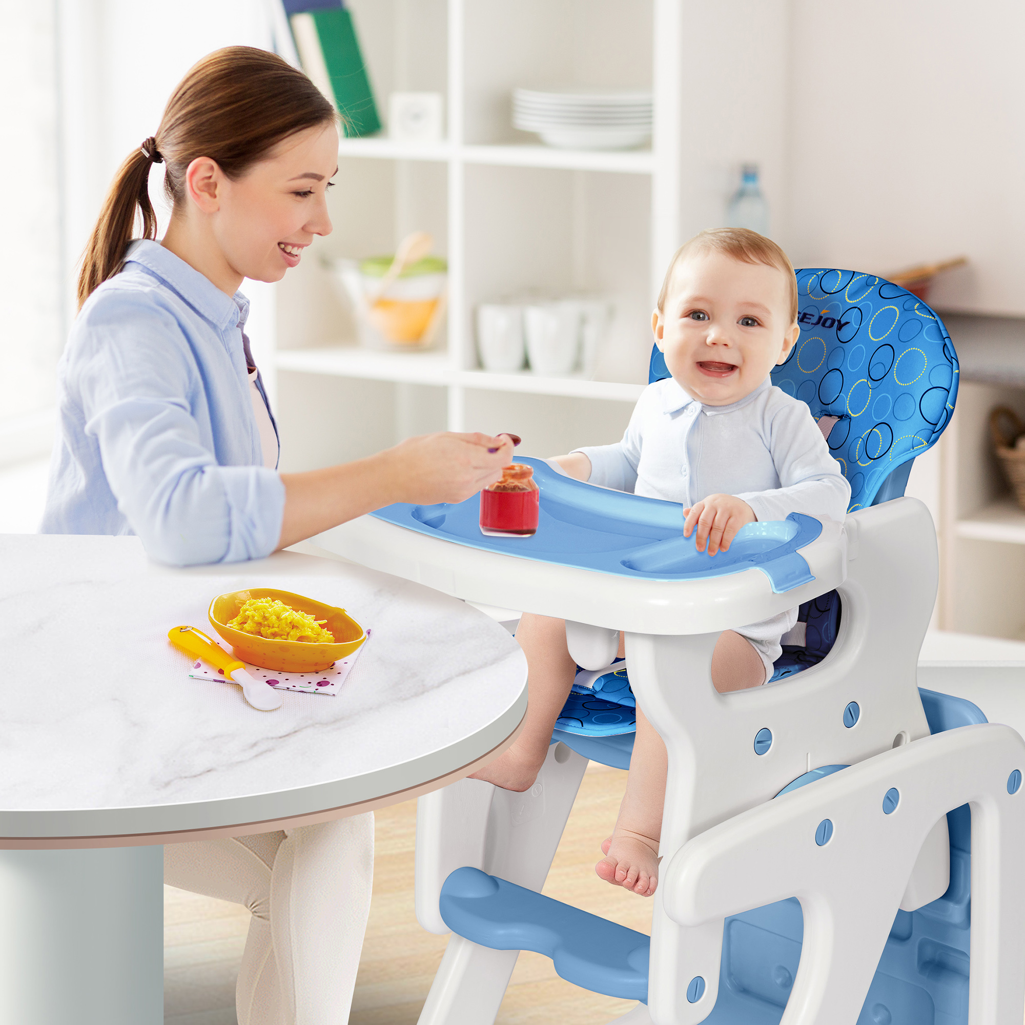 Sejoy 3 in 1 Baby High Chair Convertible Play Table Seat Booster Toddler Feeding Tray. Blue