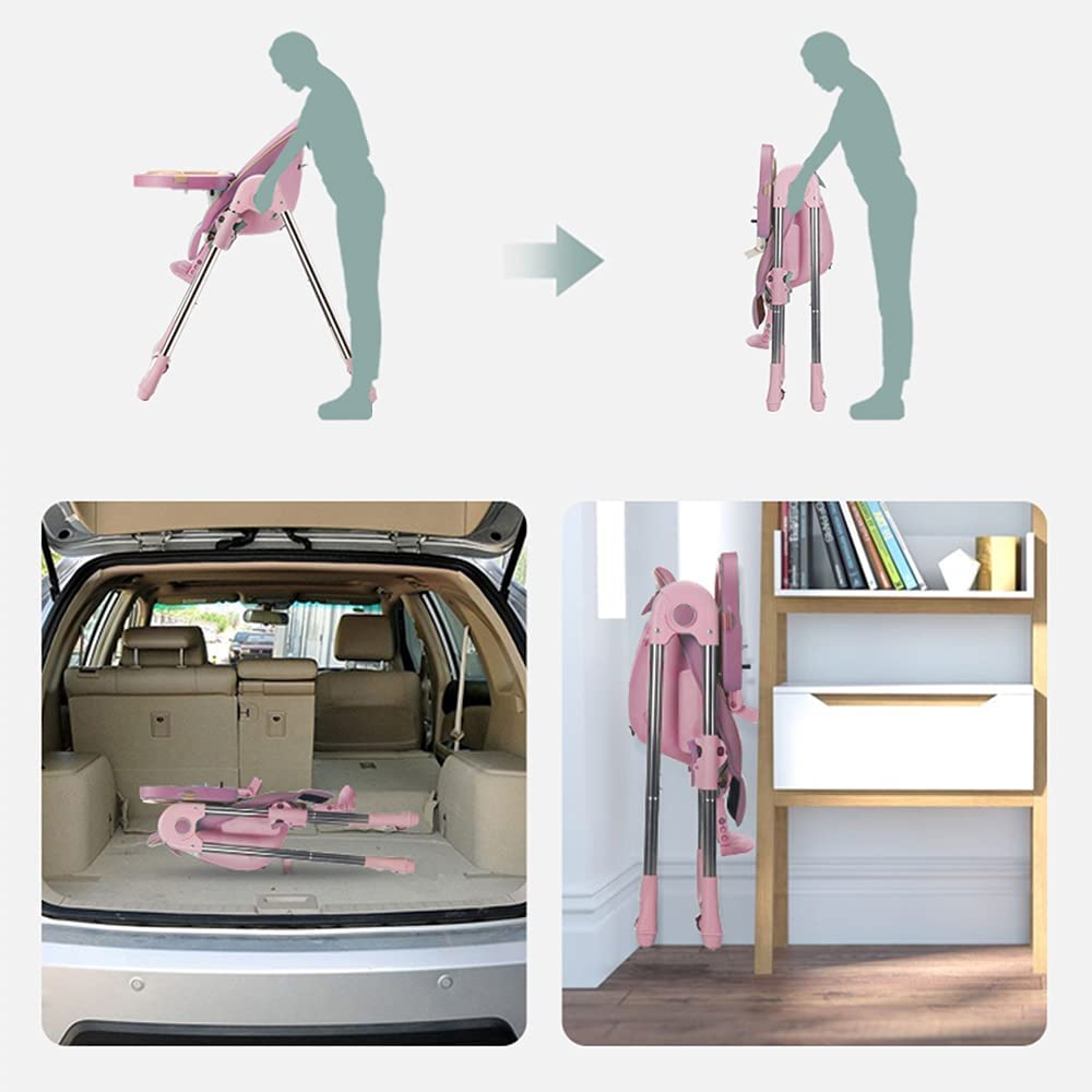 Foinwer 5-in-1 Baby Convertible Highchair Foldable Baby High Chair 4-Ways to Use Unisex. Removable Tray (Pink)