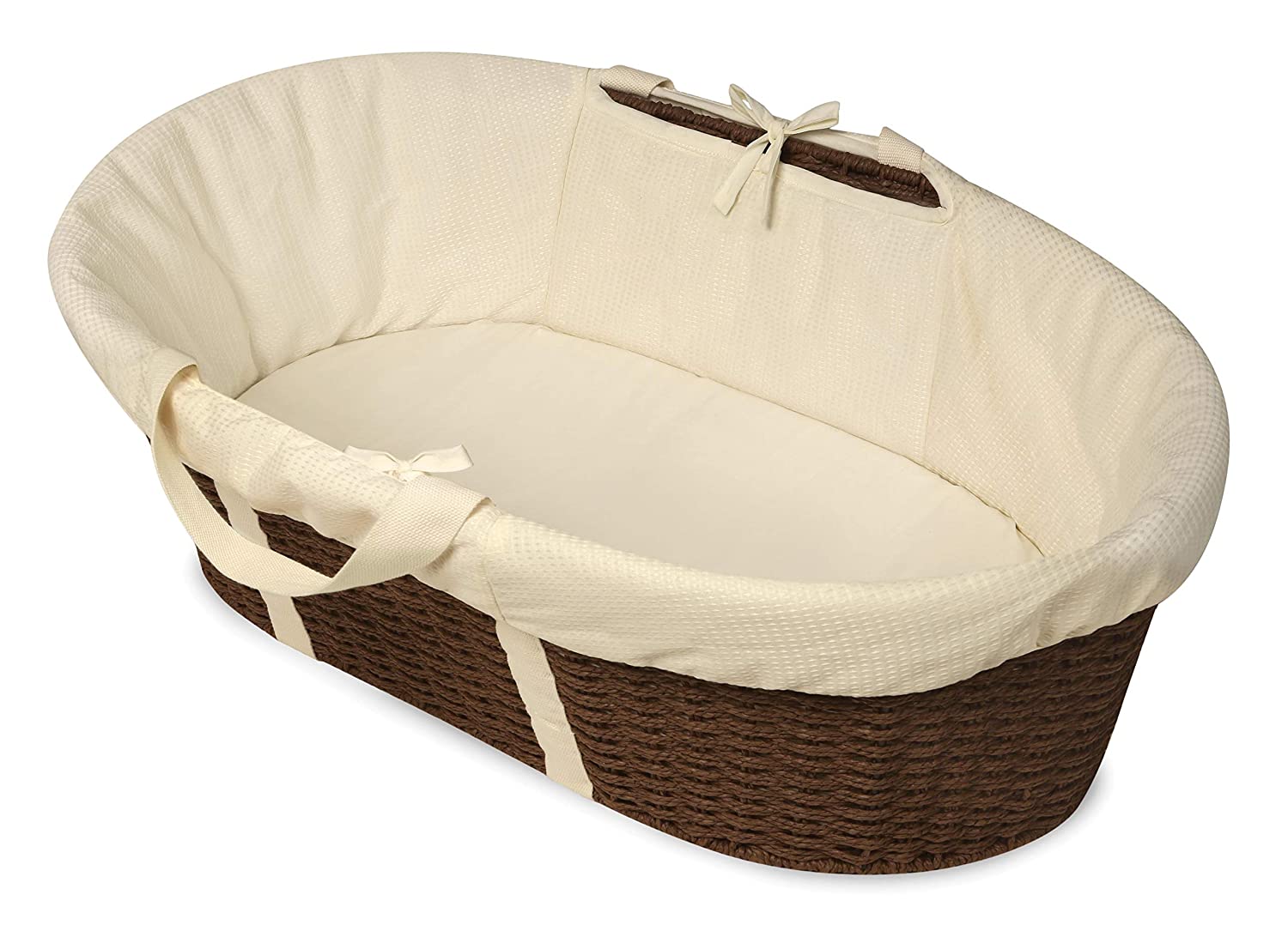 Wicker-Look Woven Baby Moses Basket with Bedding. Sheet. and Pad