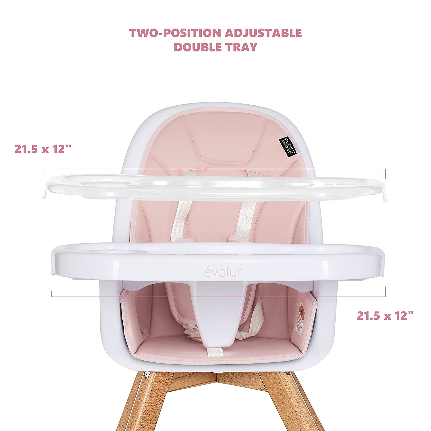 Evolur Zoodle 3-in-1 High Chair I Booster Feeding Chair I Modern Design I Toddler Chair I Removable Cushion I Adjustable Tray I Baby and Toddler. Pink