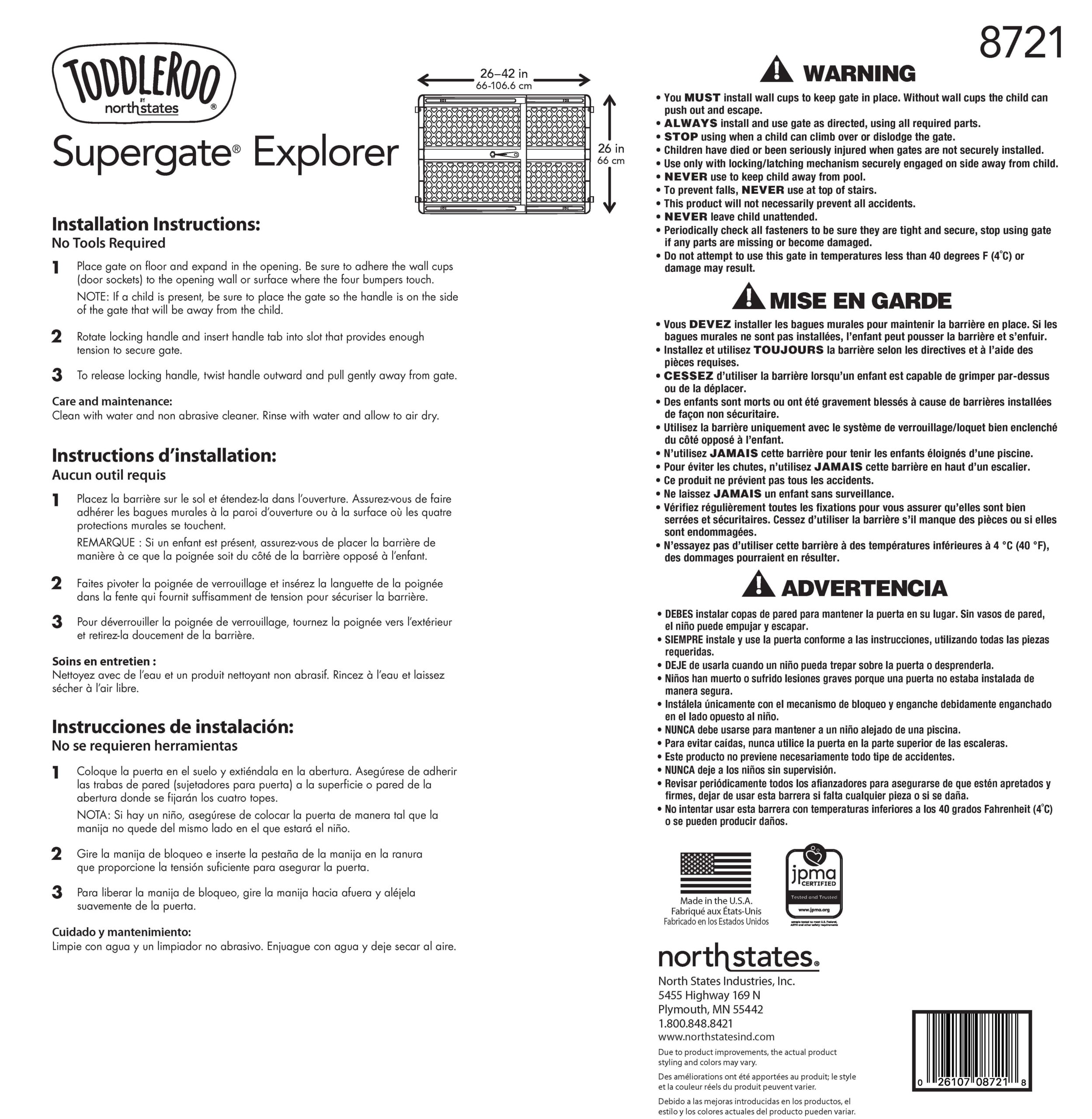 Toddleroo by North States 26″-42″ Supergate Explorer Baby Safety Gate. Gray Plastic