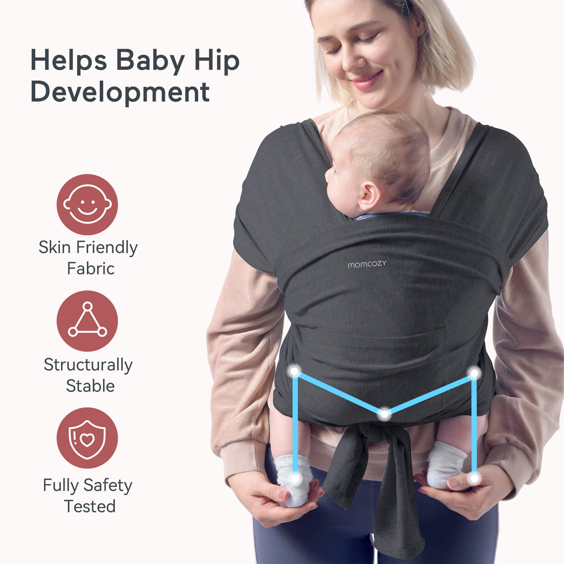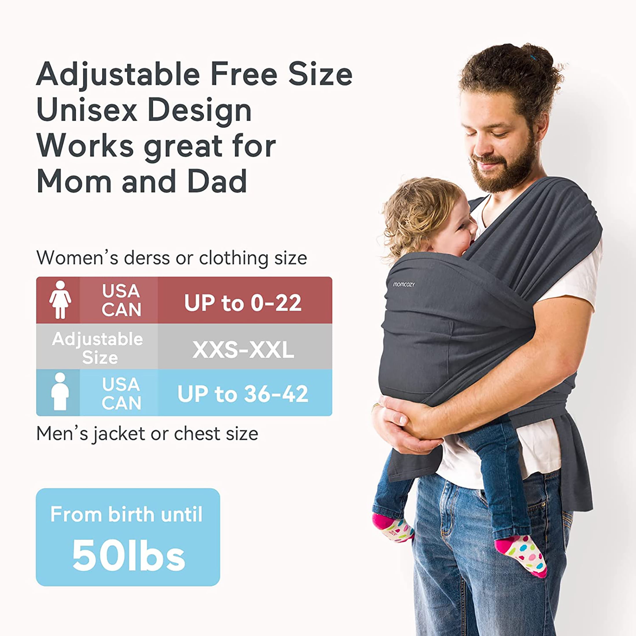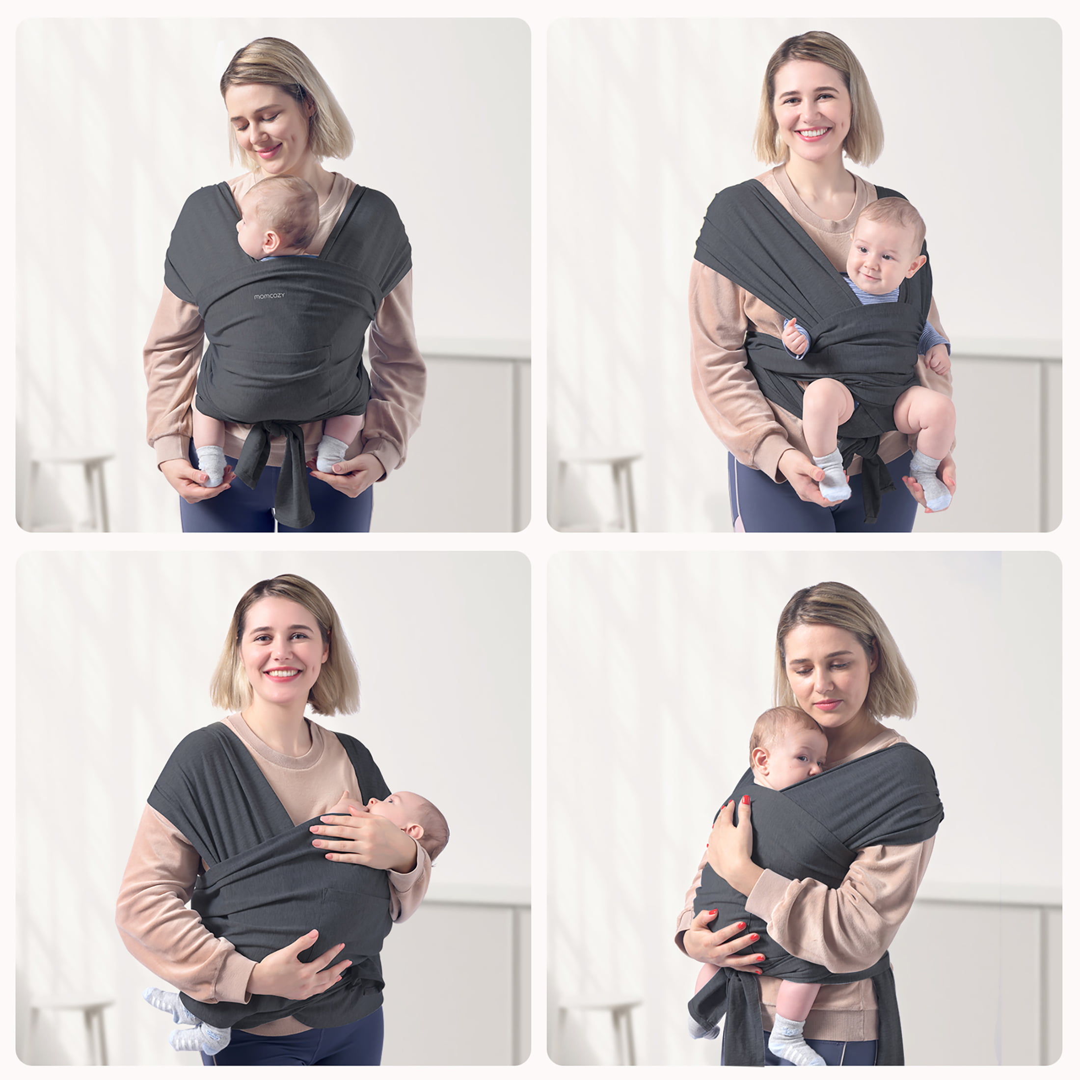 Momcozy Baby Wrap Carrier Slings for Toddlers Infant Newborn. up 50 lbs Deep Grey (Choose Your Color)