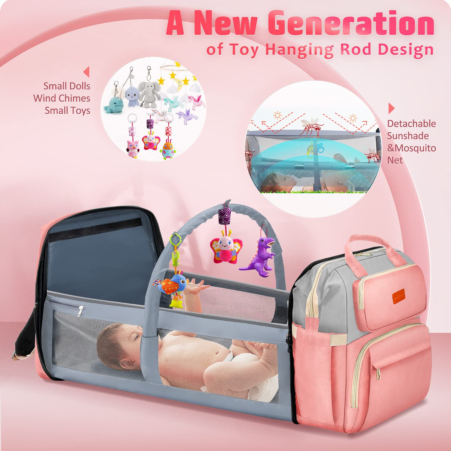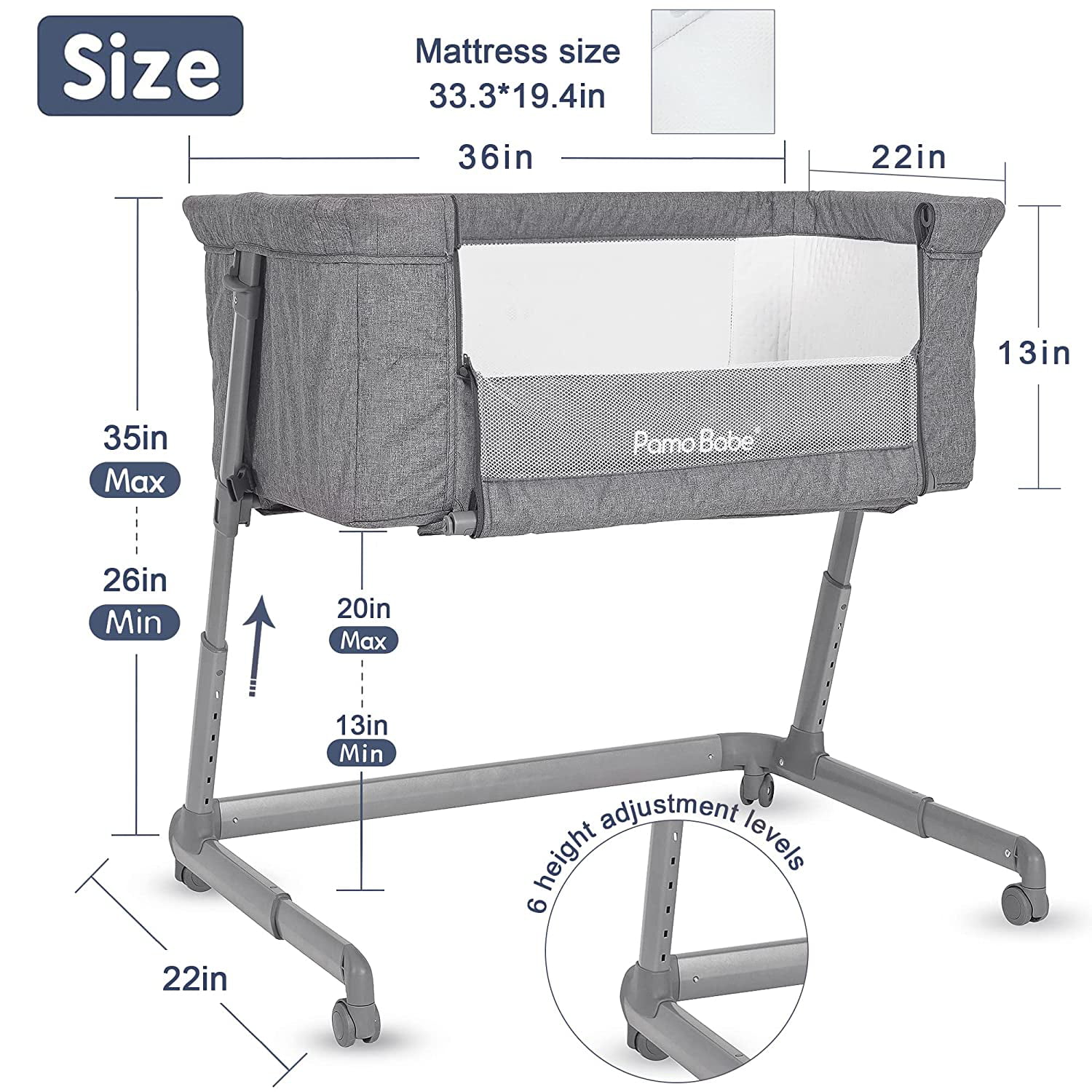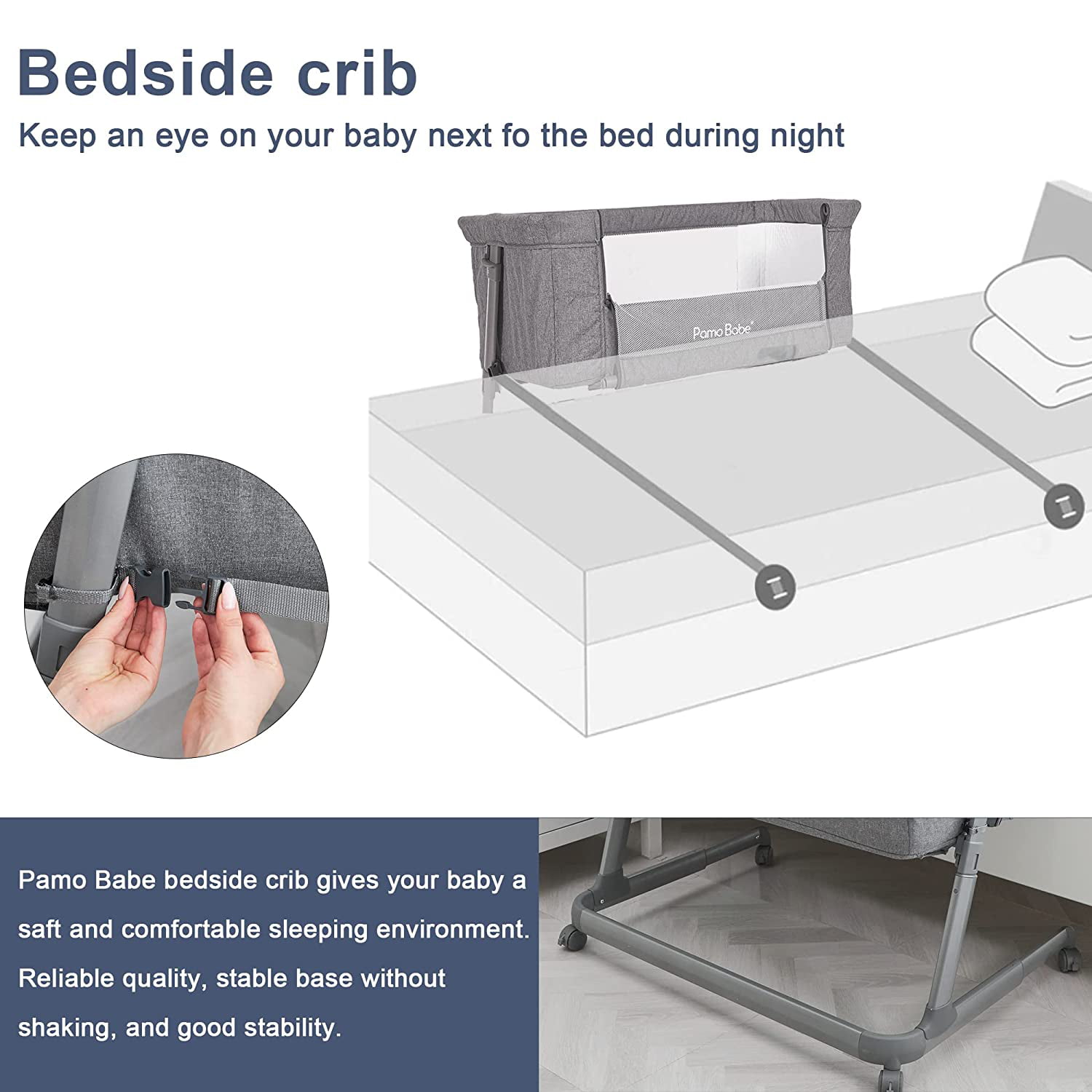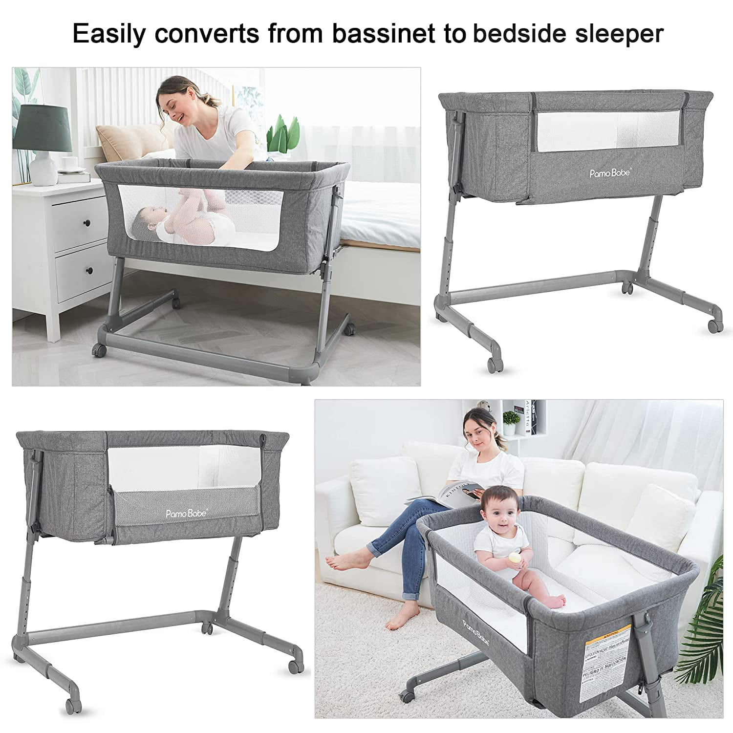 Pamo Babe Unisex Bedside Sleeper Infant Bassinet with Wheels and Floding Frame (Grey)