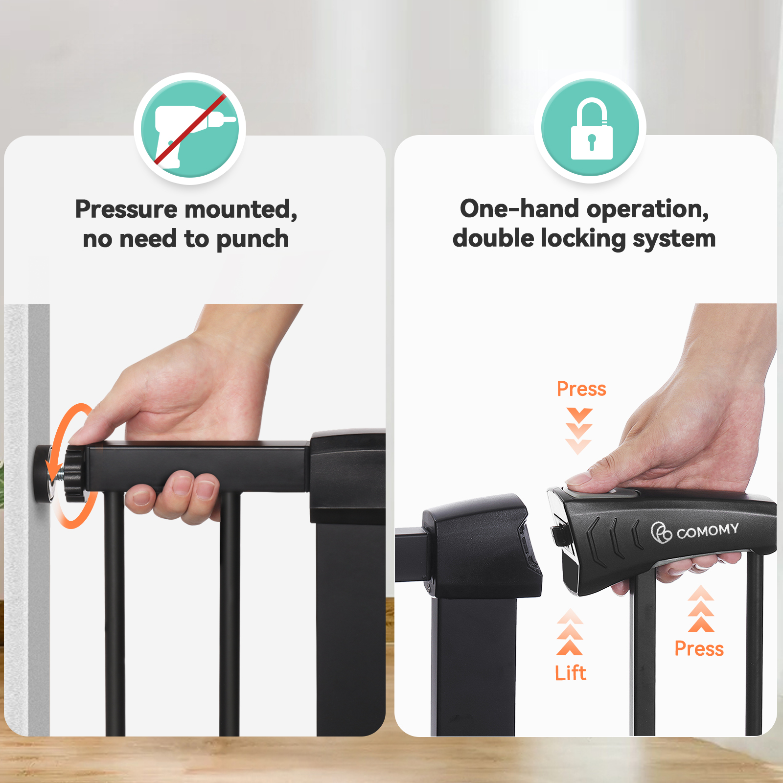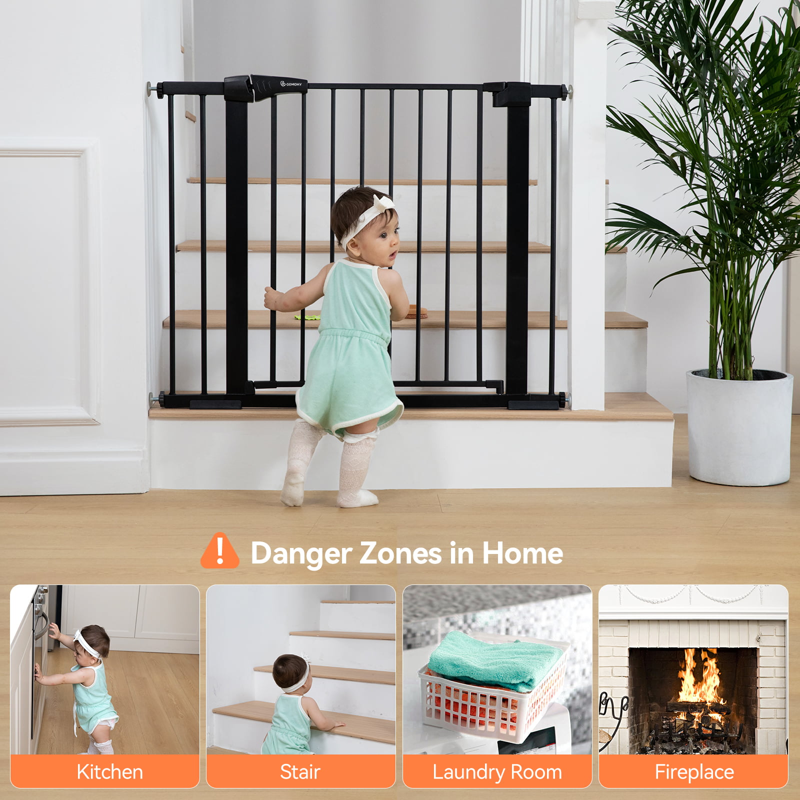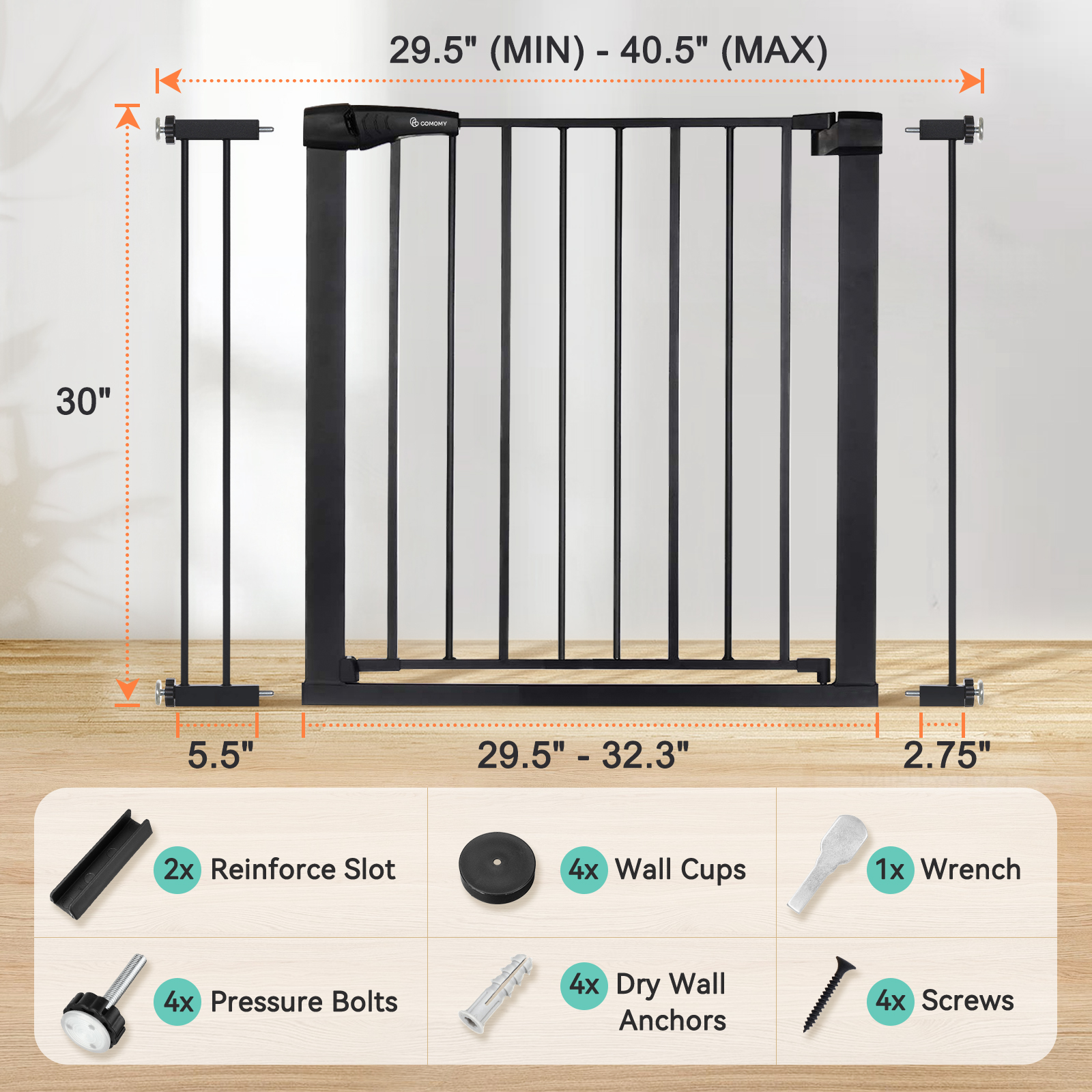 KingSo 29.5″-40.5″ Extra Wide Baby Gate Baby Fences. 30″ Tall Kids Play Gate Large Pet Gate with Swing Door For Doorway Stairs. Black