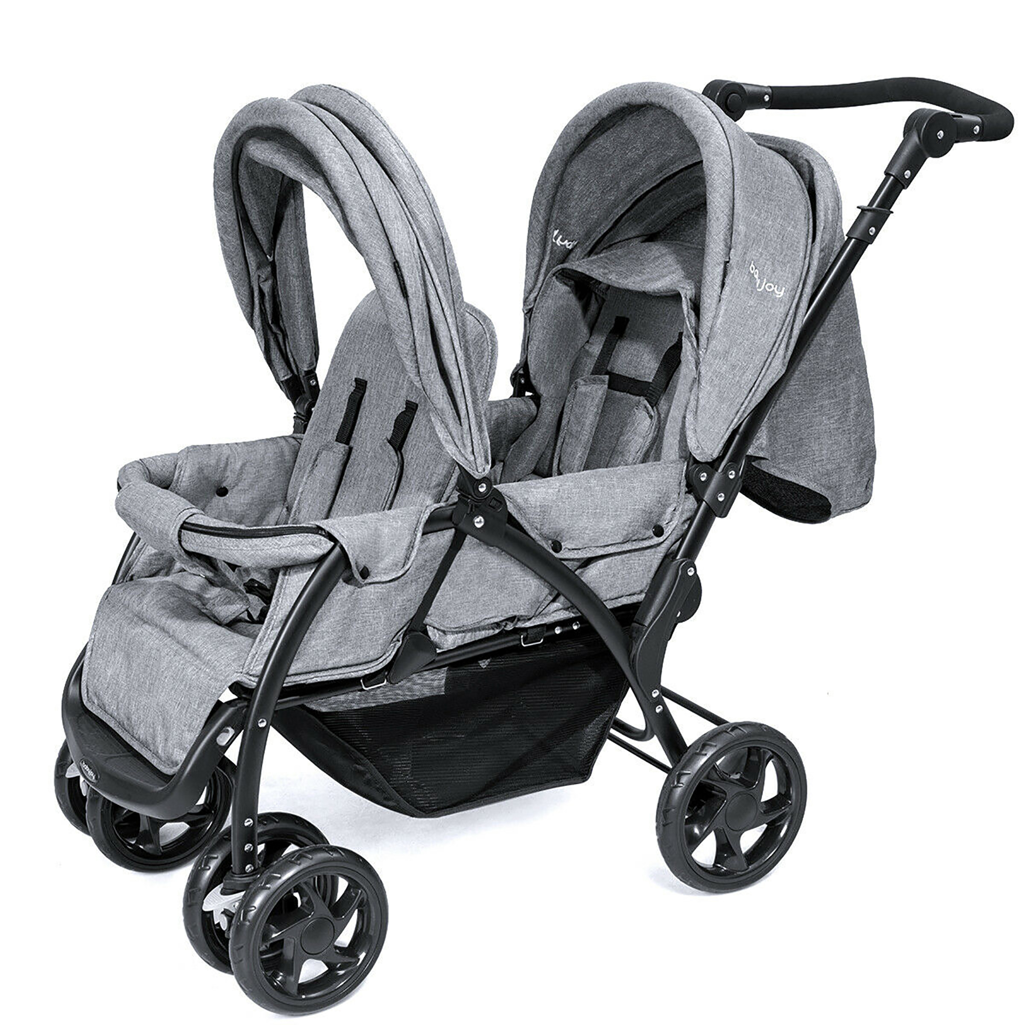 Foldable Double Baby Stroller Lightweight Front & Back Seats Pushchair Gray