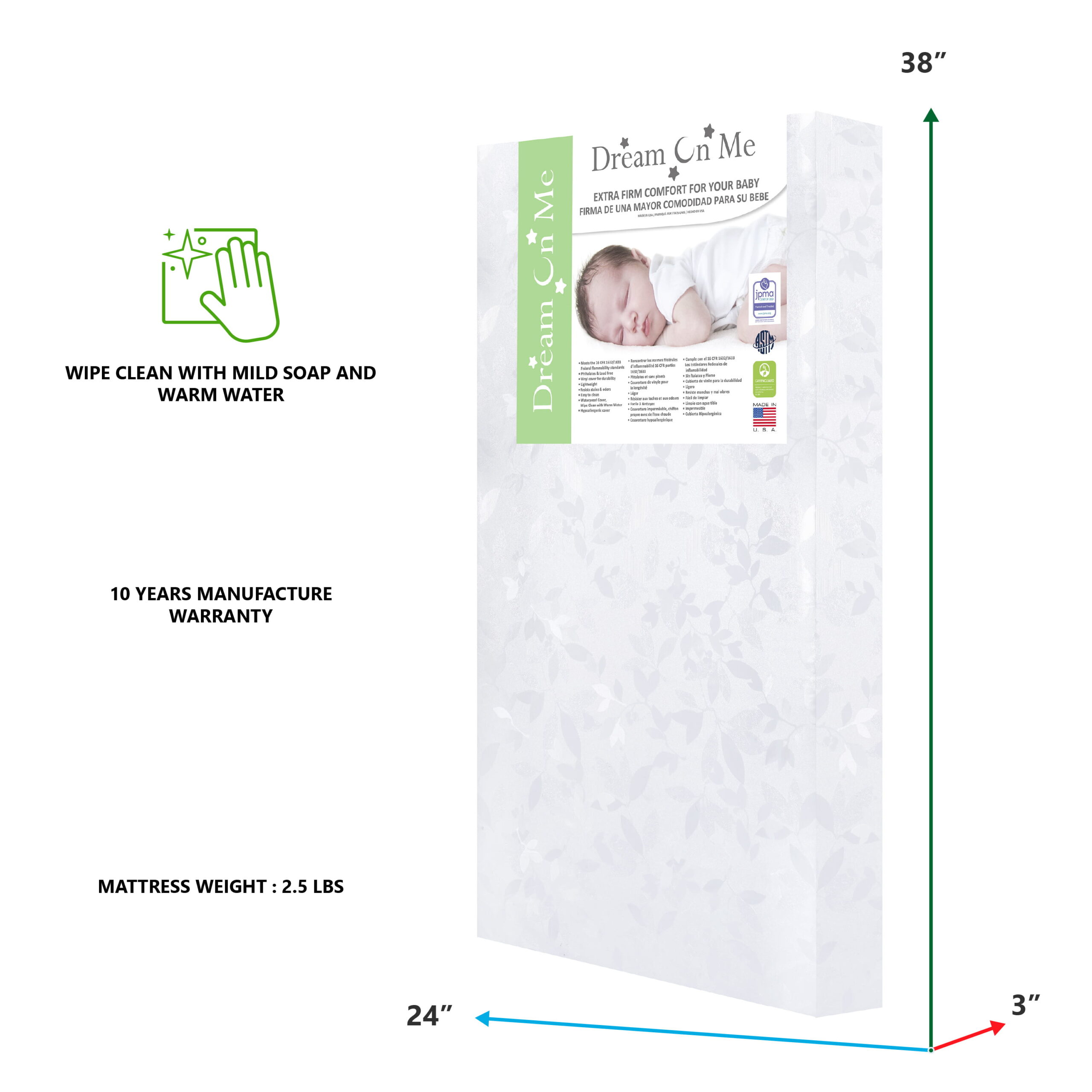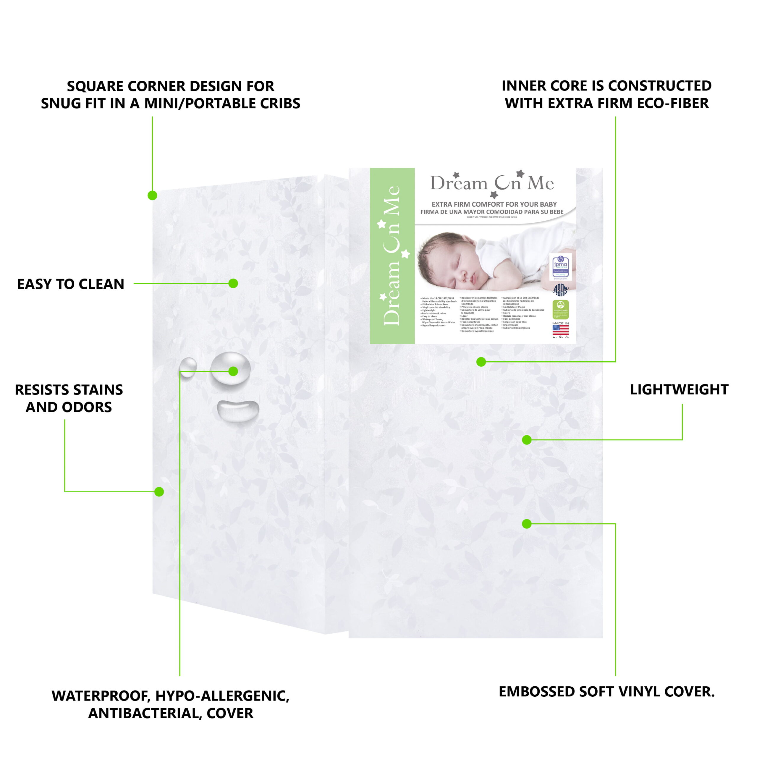 Dream on Me Jasmine 4 Foam Crib & Toddler Mattress I Greenguard Gold Certified I JPMA Certified I Vinyl Cover Durable Mattress