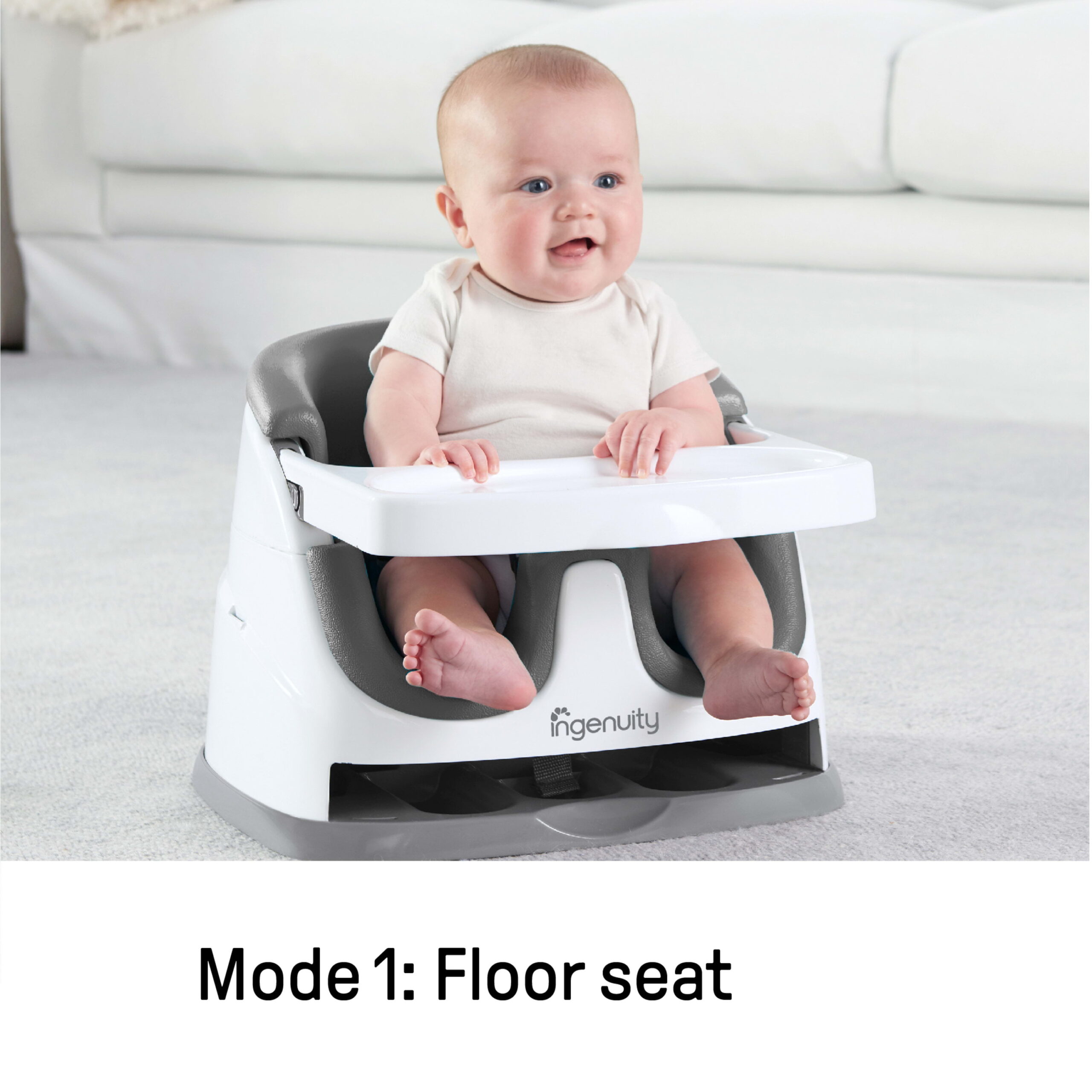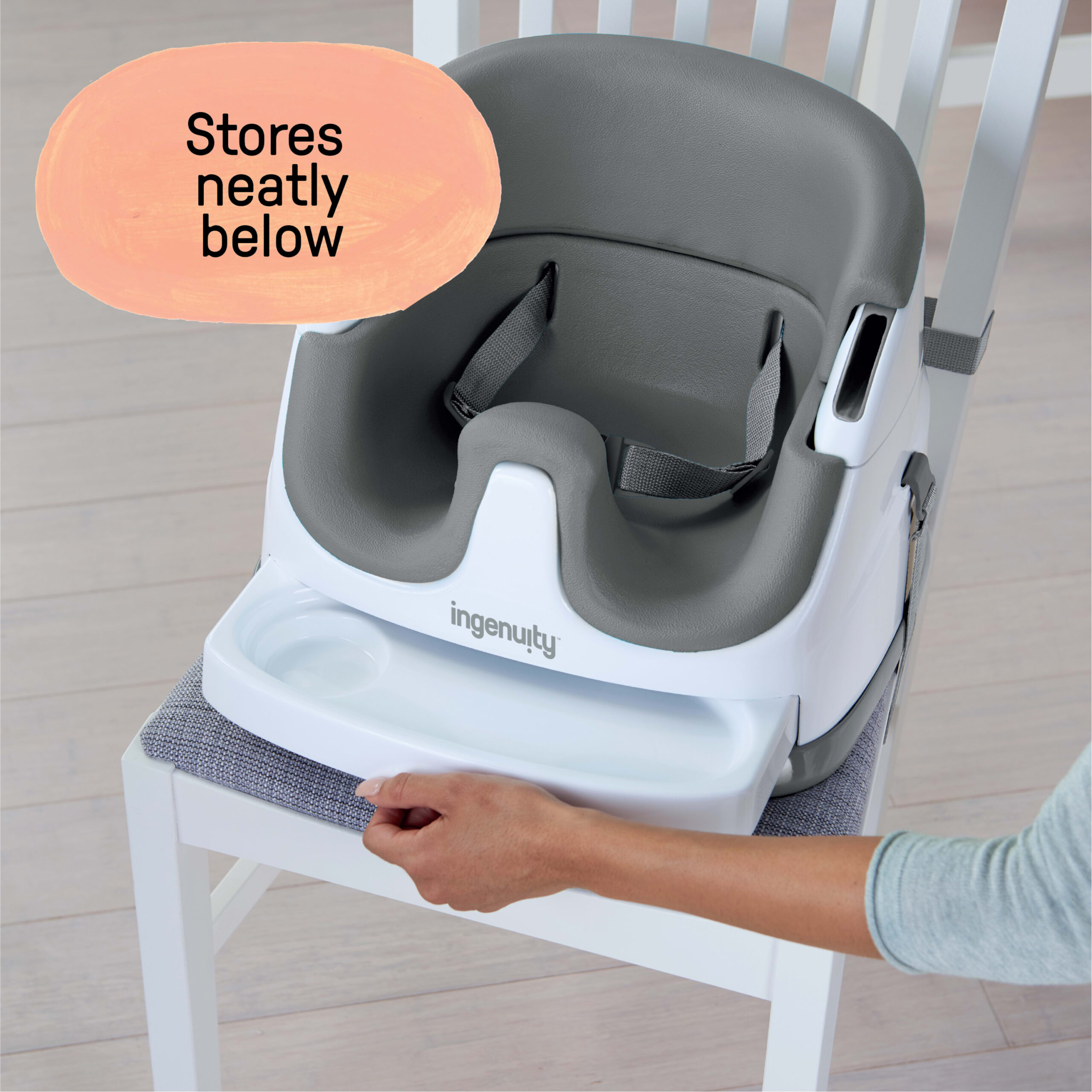 Ingenuity Baby Base 2-in-1 Booster Feeding High Chair and Floor Seat with Self-Storing Tray - Slate