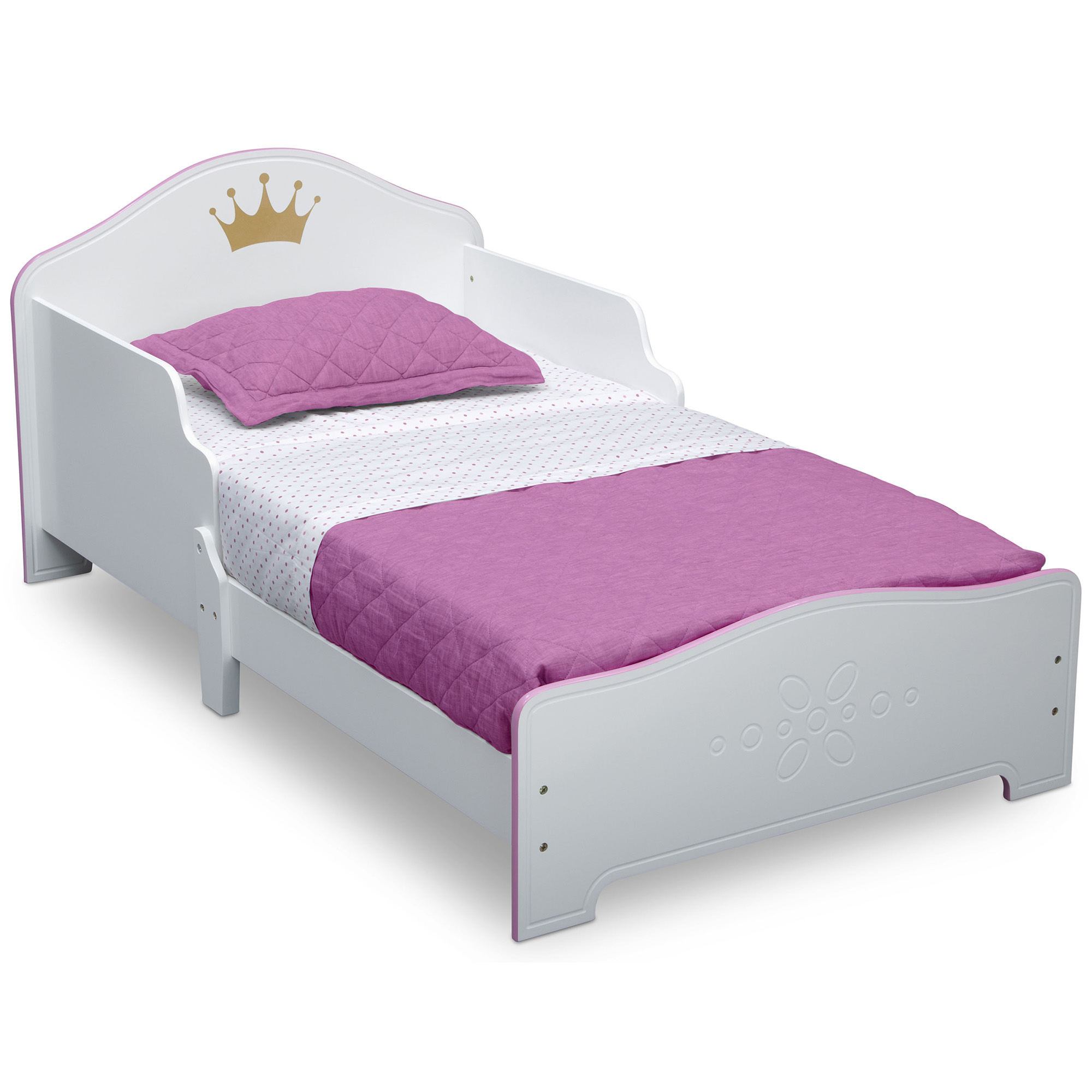 Delta Children Princess Crown Wood Toddler Bed. Greenguard Gold Certified. White/Pink