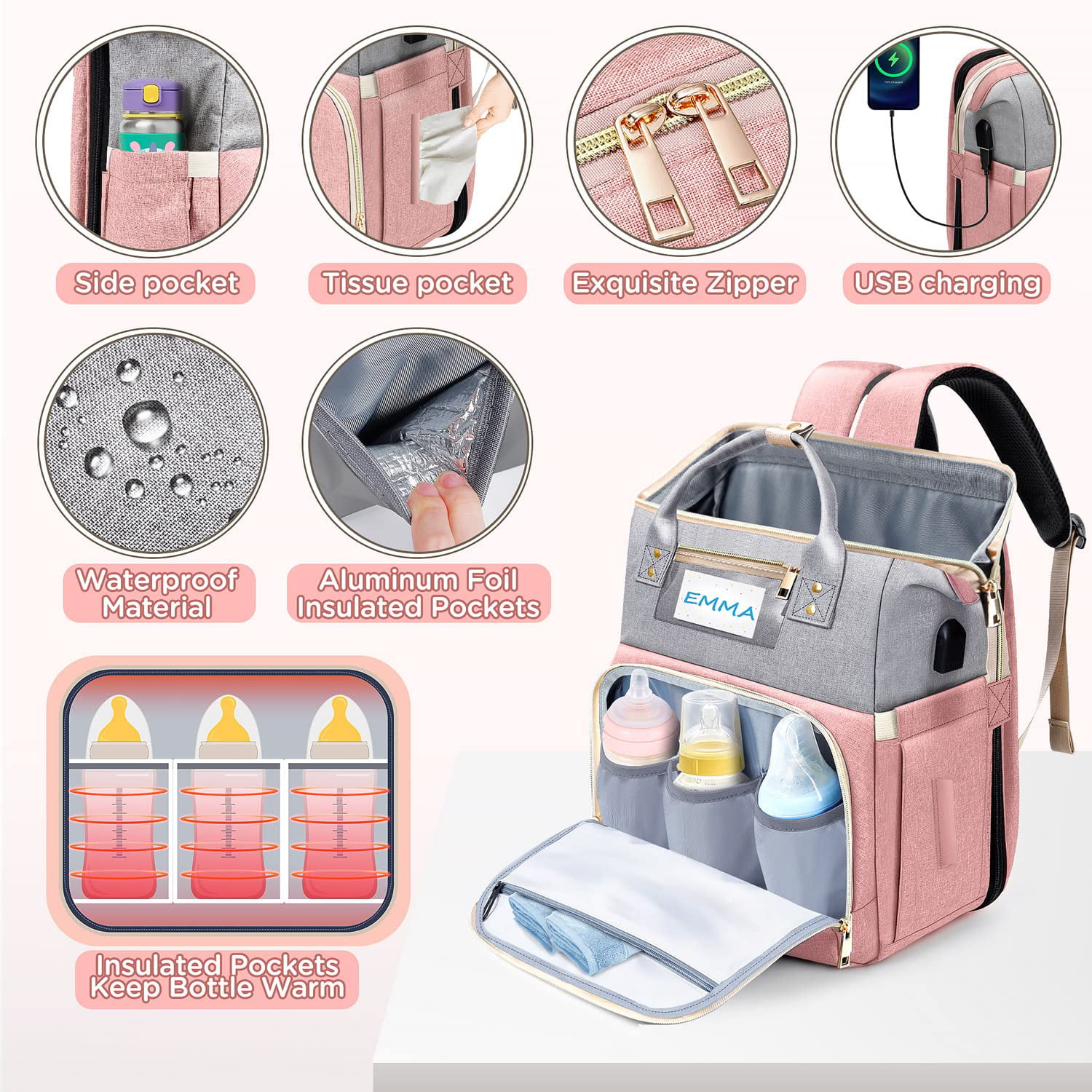 Diaper Bag Backpack. Campmoy 8 in 1 Large Diaper Bag with Changing Station