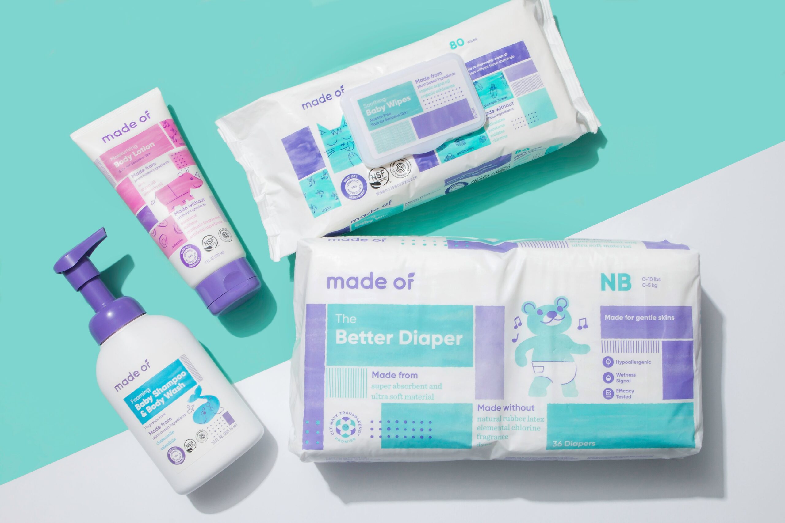 MADE OF Better Baby Diaper - No Dyes. No Chlorine. Non-Toxic - Size Newborn (4-Pack - 144 count)
