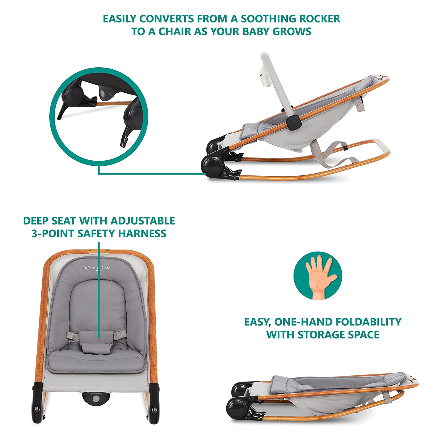 Summer 2-in-1 Bouncer & Rocker Duo (Gray and Teal) Convenient and Portable Rocker and Bouncer for Babies Includes Soft Toys and Soothing Vibrations