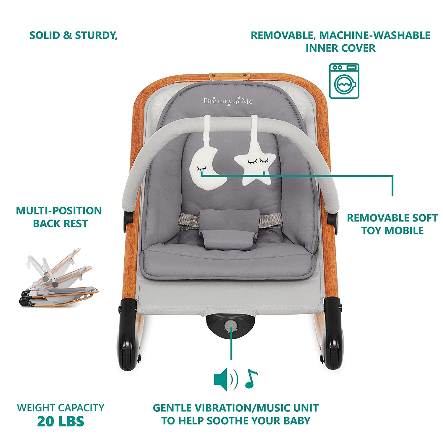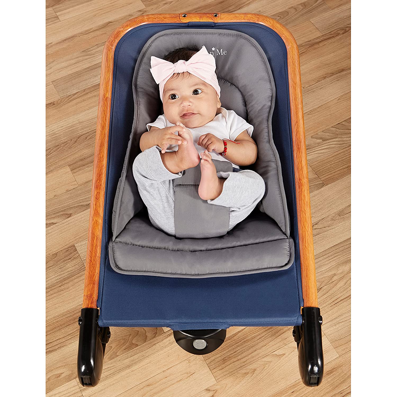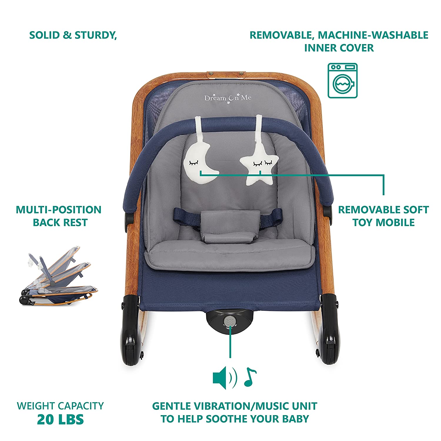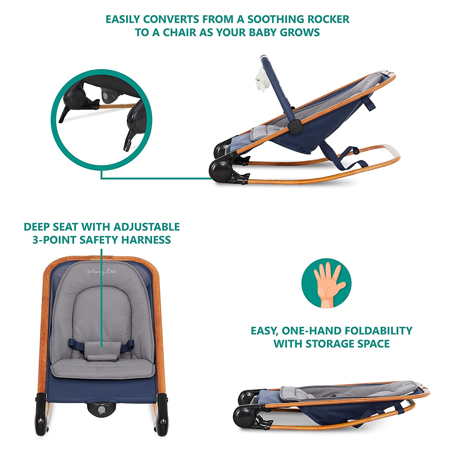 Dream on Me Rock with me 2-in-1 Rocker and Stationary Seat | Compact Portable Infant Rocker with Removable Toys Bar & Hanging Toys in Blue