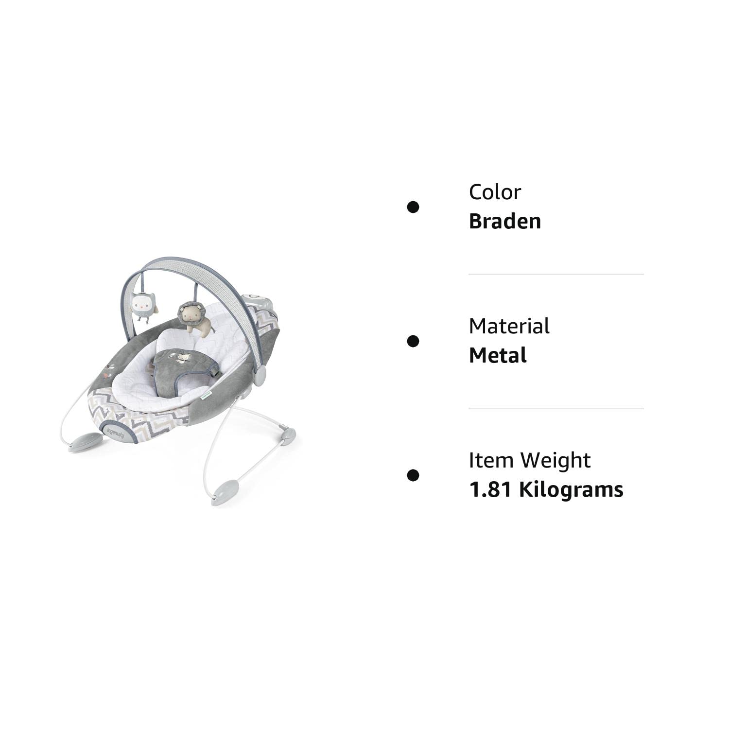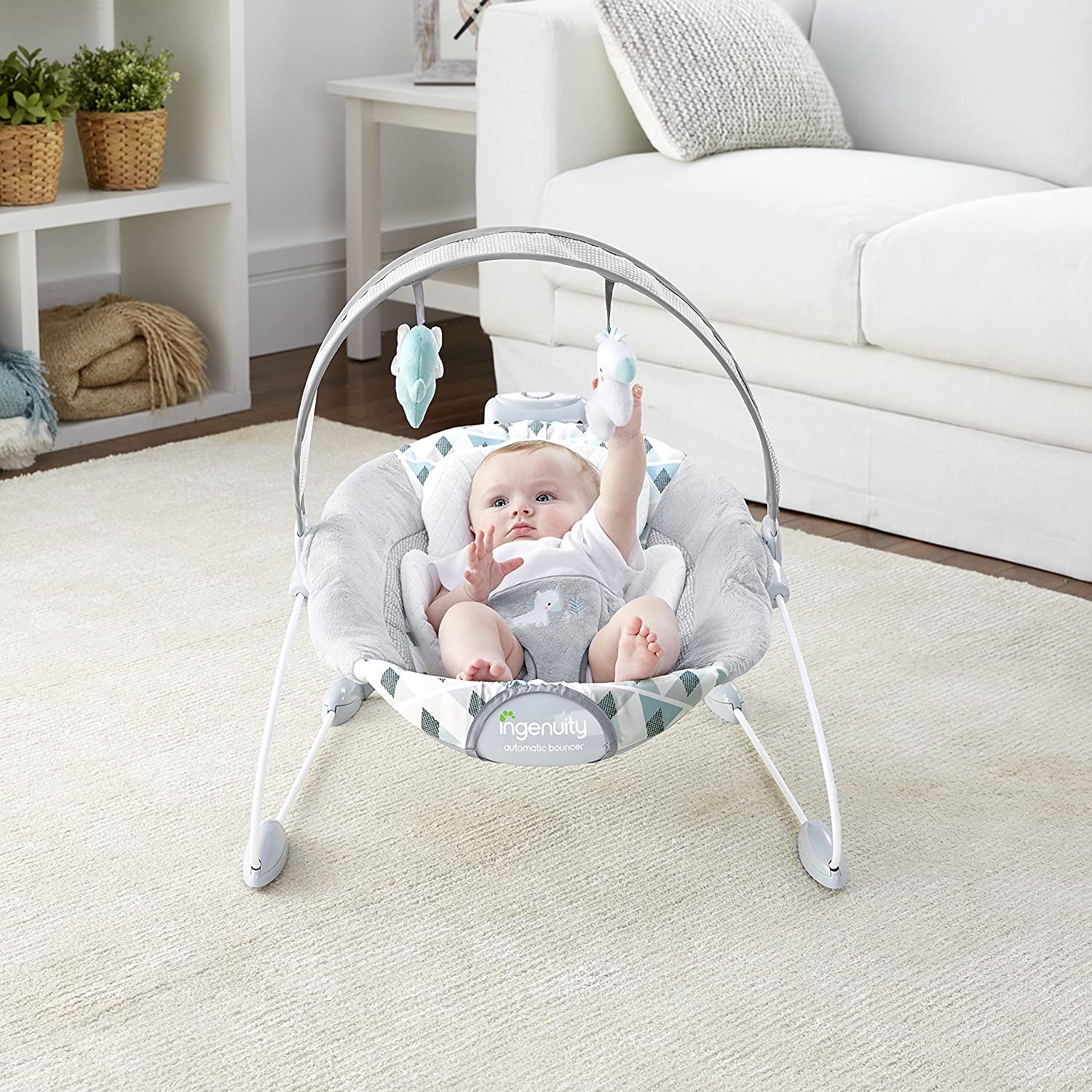 Ingenuity SmartBounce Automatic Baby Bouncer Seat with White Noise. Music. -Toy Bar & 2 Plush Infant Toys. 0-6 Months Up to 20 lbs (Braden)