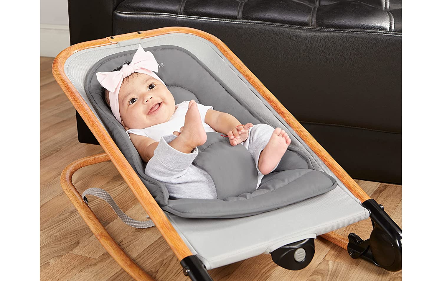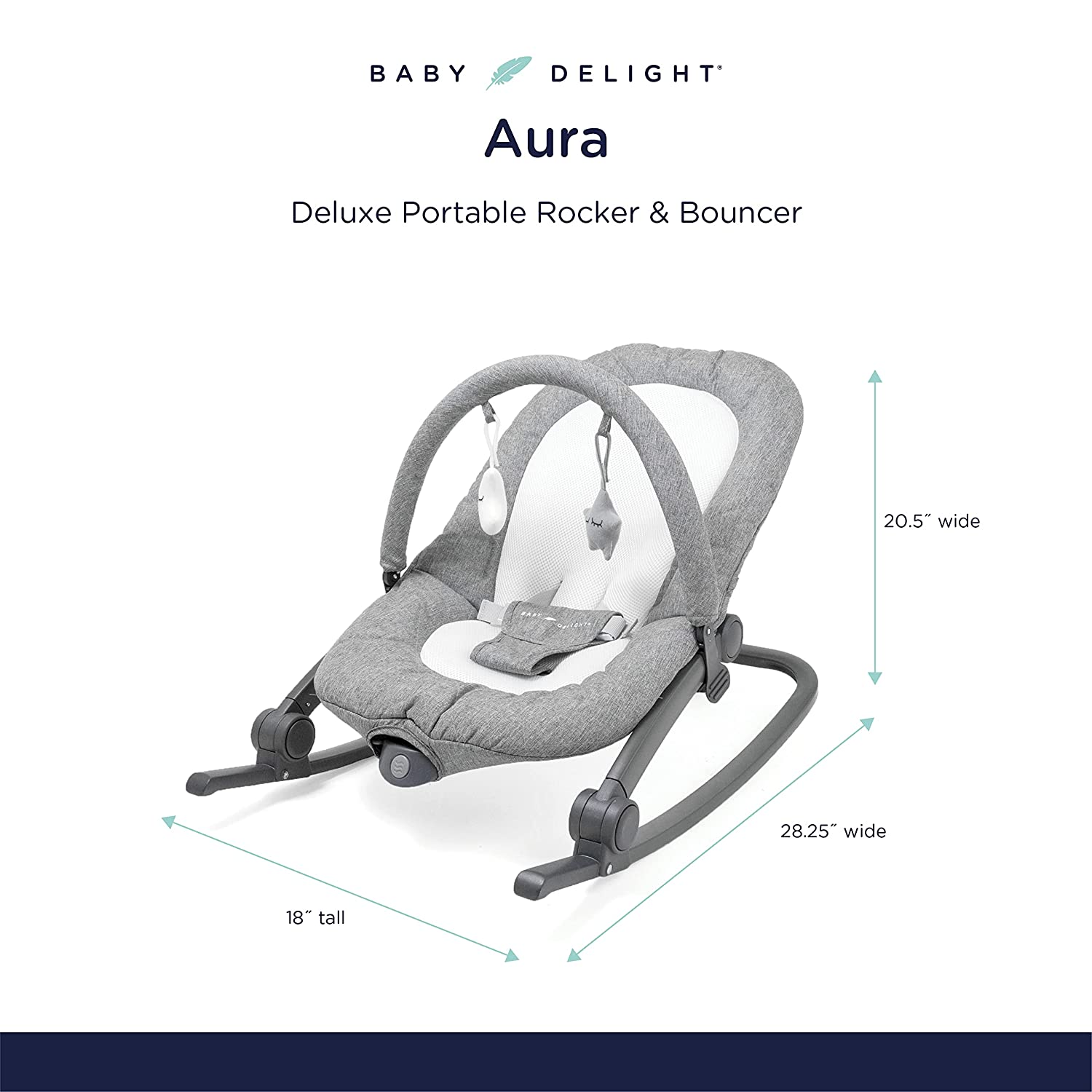 Baby Delight Aura Deluxe | Portable Baby Bouncer for Infants | Baby Rocker | Quilted Charcoal Tweed