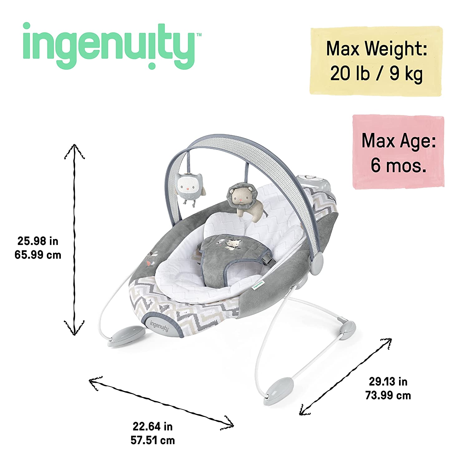 Ingenuity SmartBounce Automatic Baby Bouncer Seat with Music. Nature Sounds. Removable Bar & 2 Plush Infant - Chadwick