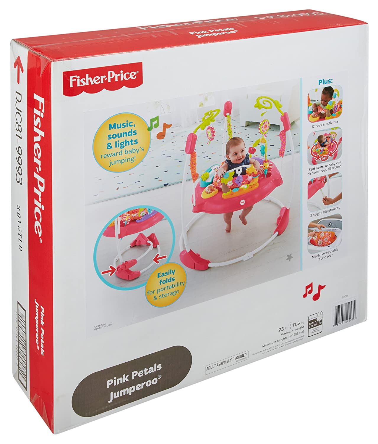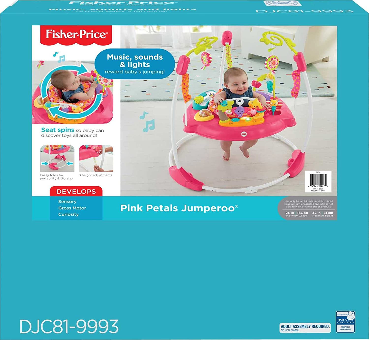 Fisher-Price Baby Bouncer Pink Petals Jumperoo Activity Center with Music Lights Sounds and Developmental Toys