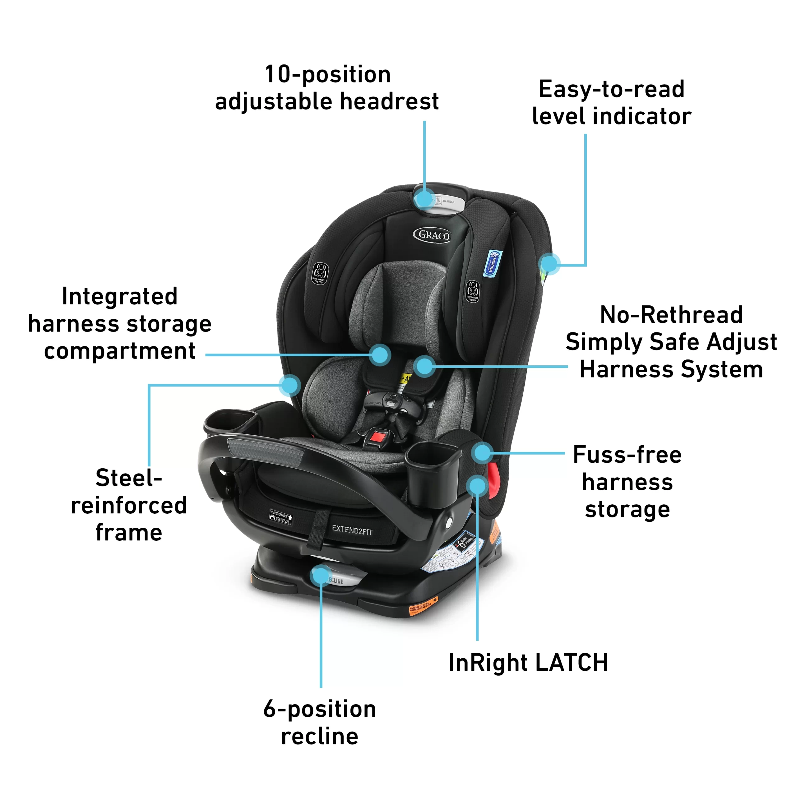 Graco Extend2Fit 3-in-1 Car Seat featuring Anti-Rebound Bar - Prescott