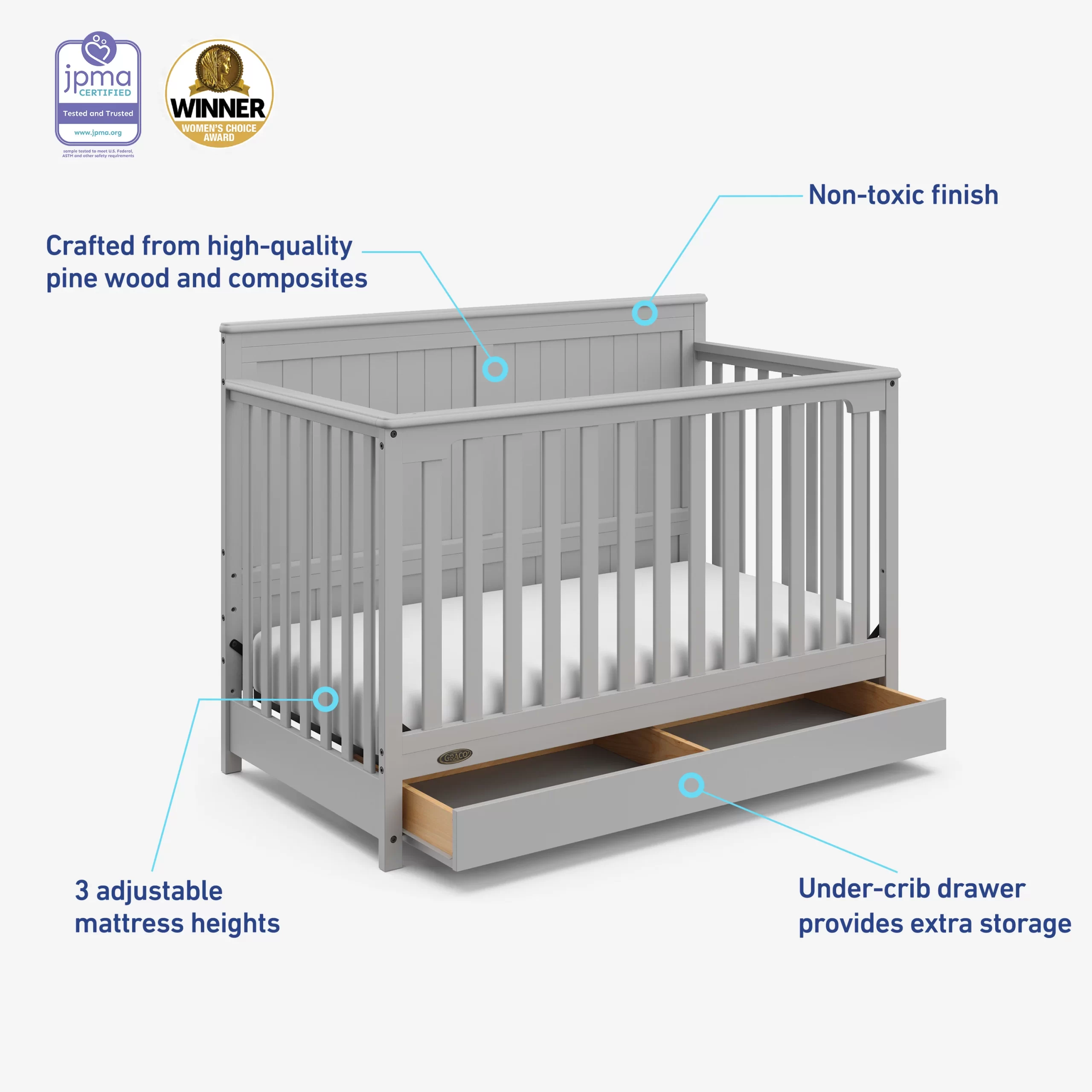 Graco Hadley 4-in-1 Convertible Crib with Drawer - Pebble Gray
