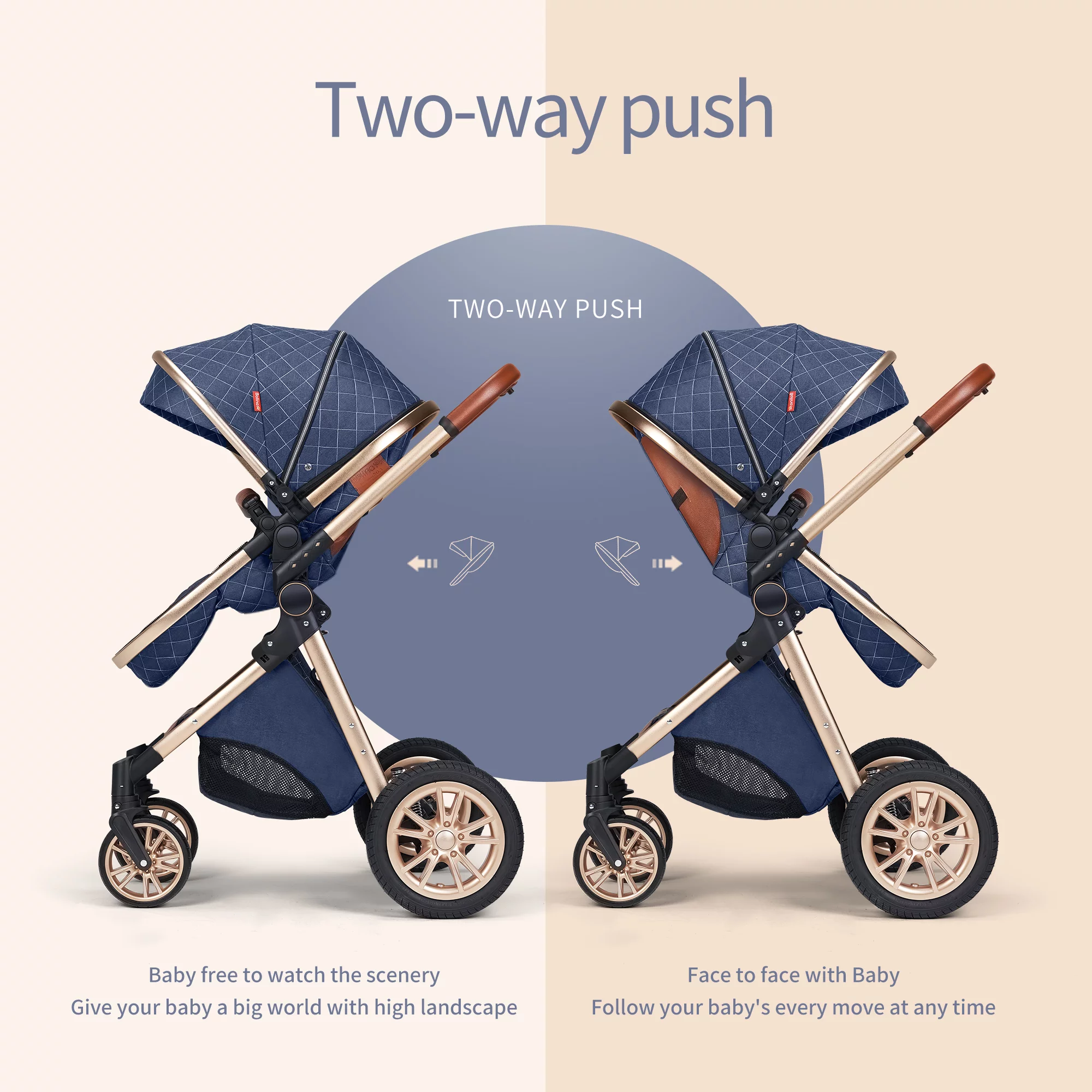 B.Childhood High Landscape Baby Stroller Folding Reversible Seat.Unisex.Blue