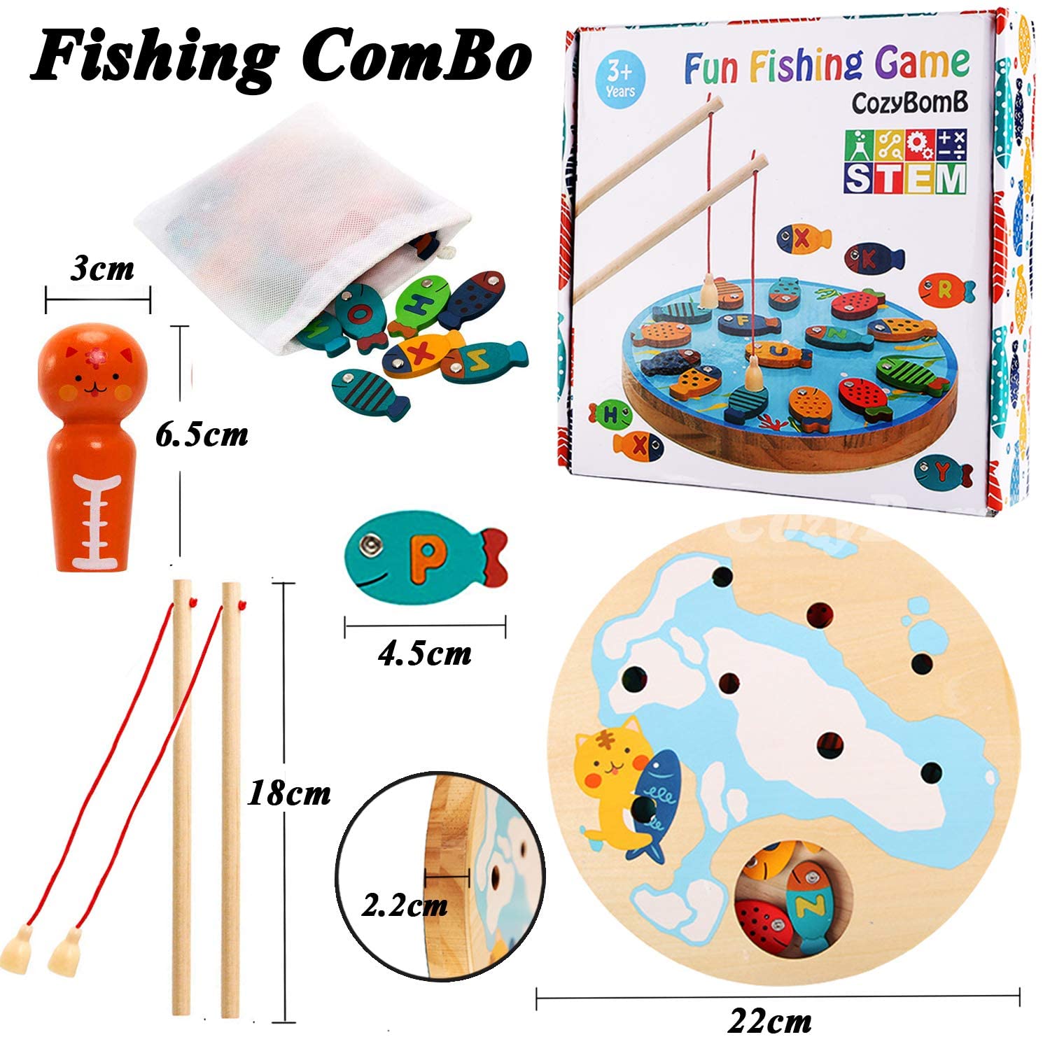 Coogam Wooden Magnetic Fishing Game. Fine Motor Skill Toy ABC Alphabet Color Sorting Puzzle