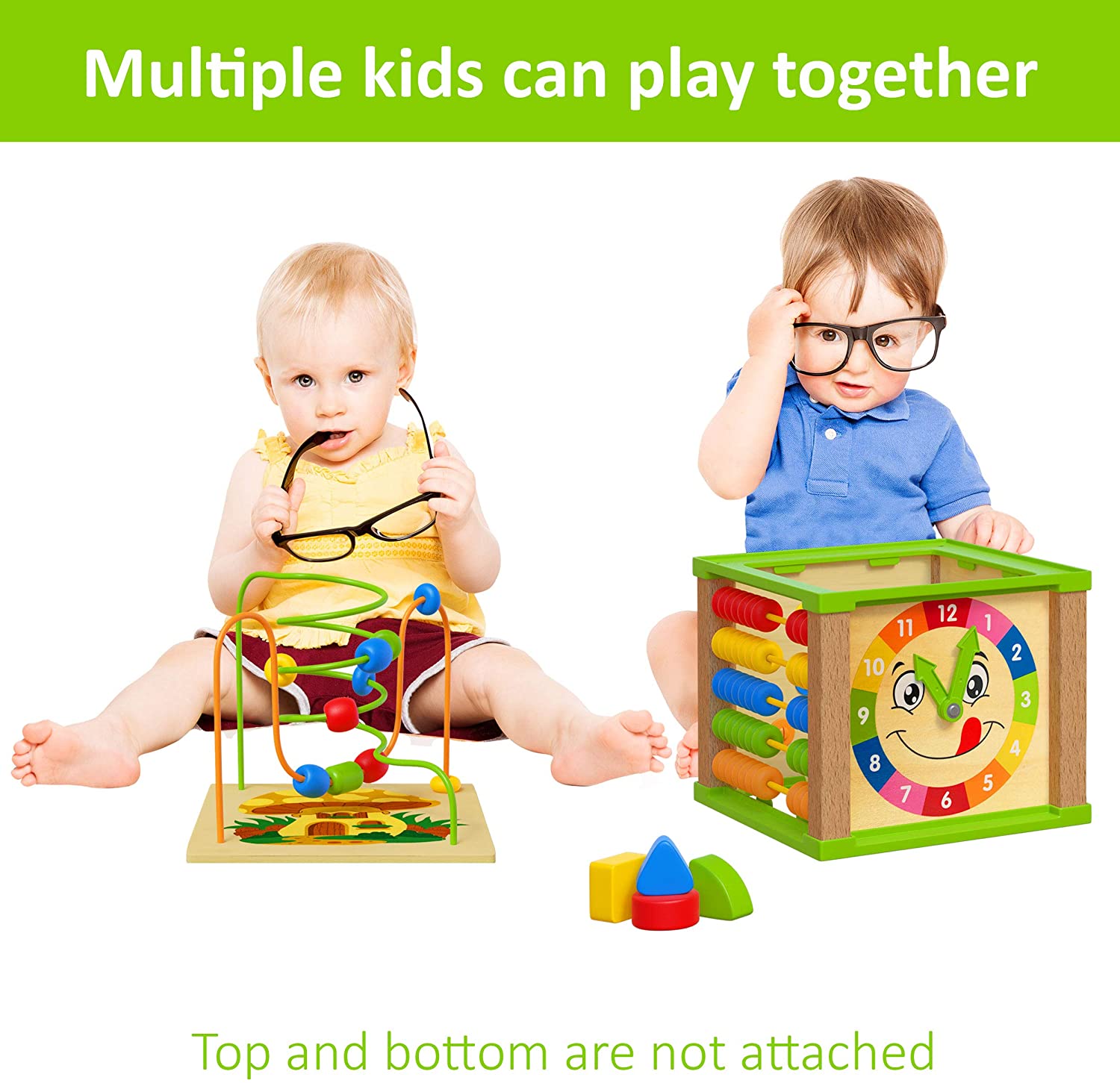 TOYVENTIVE Wooden Kids Baby Activity Cube. Toddler Educational. Toys 12-18 Months
