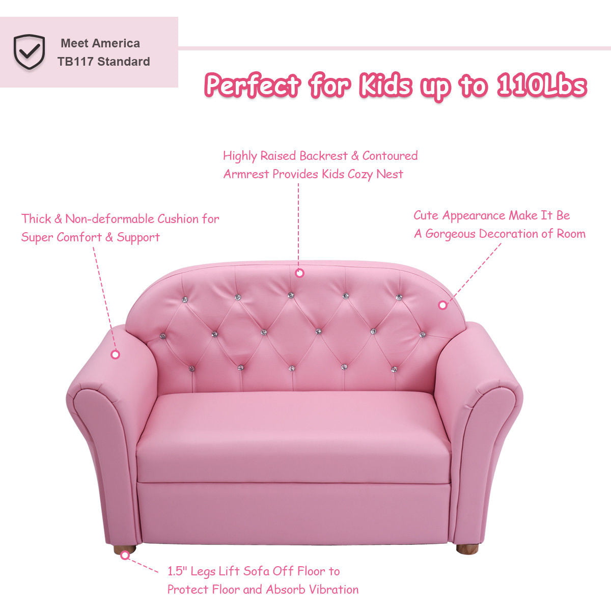 Costway Kids Sofa Princess Armrest Chair Lounge Couch Children Toddler Gift Wood Frame + Sponge + PVC Pink