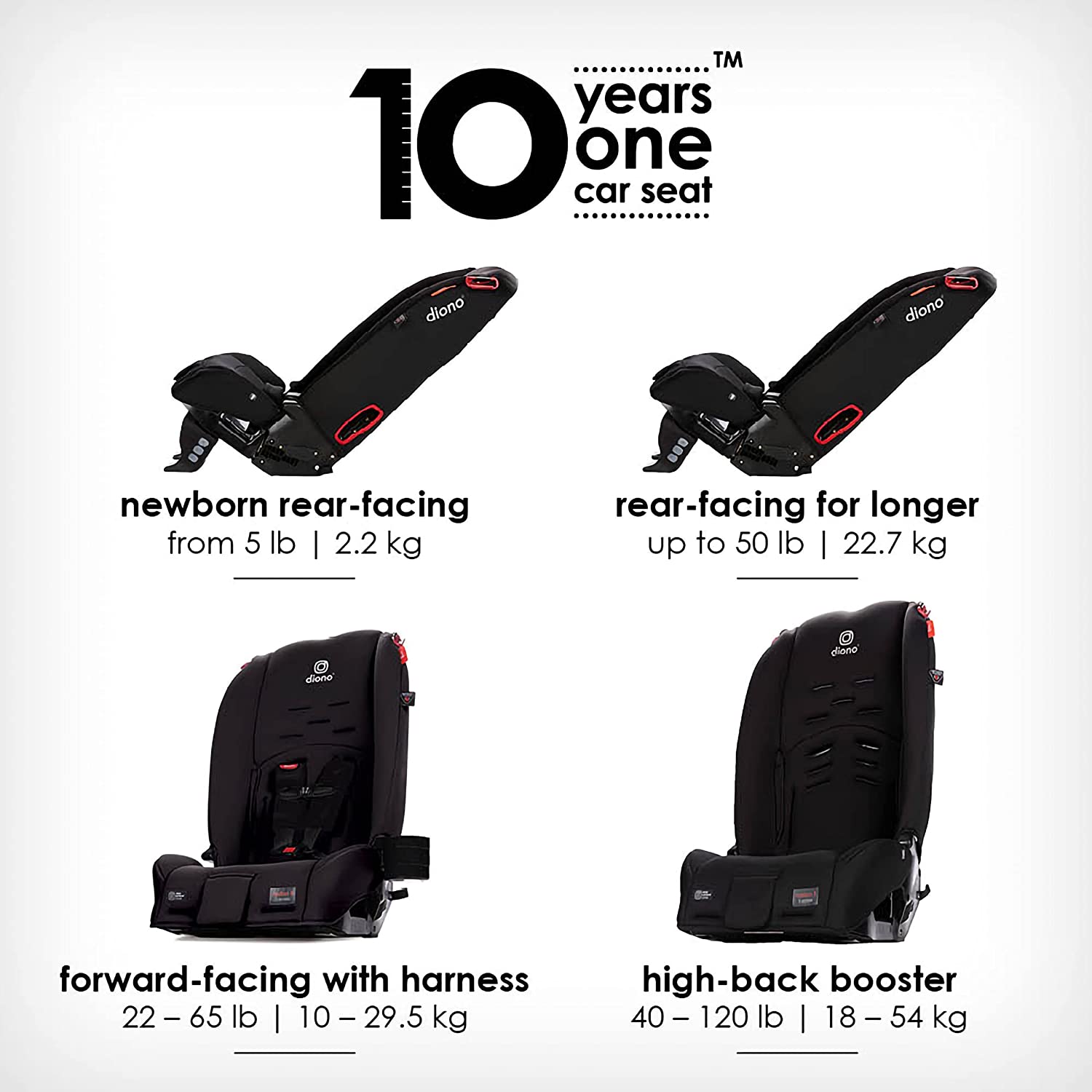 Diono Radian 3R. 3-in-1 Convertible Car Seat. Rear Facing & Forward Facing. 10 Years 1 Car Seat. Slim Fit 3 Across. Jet Black