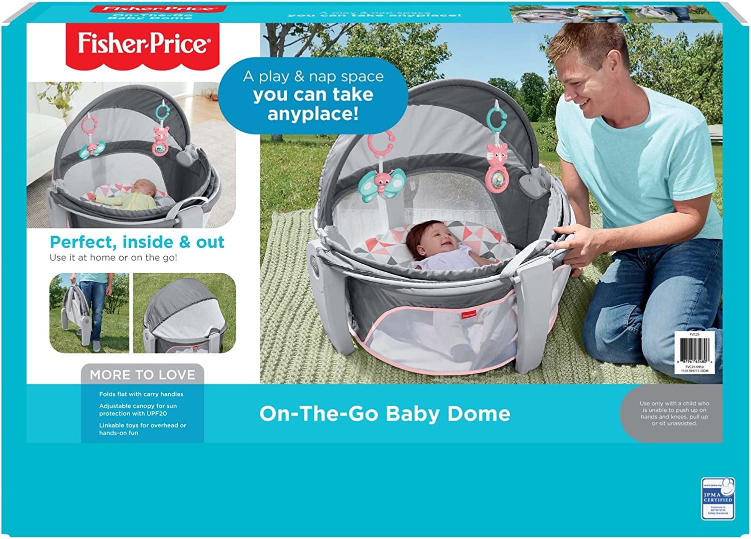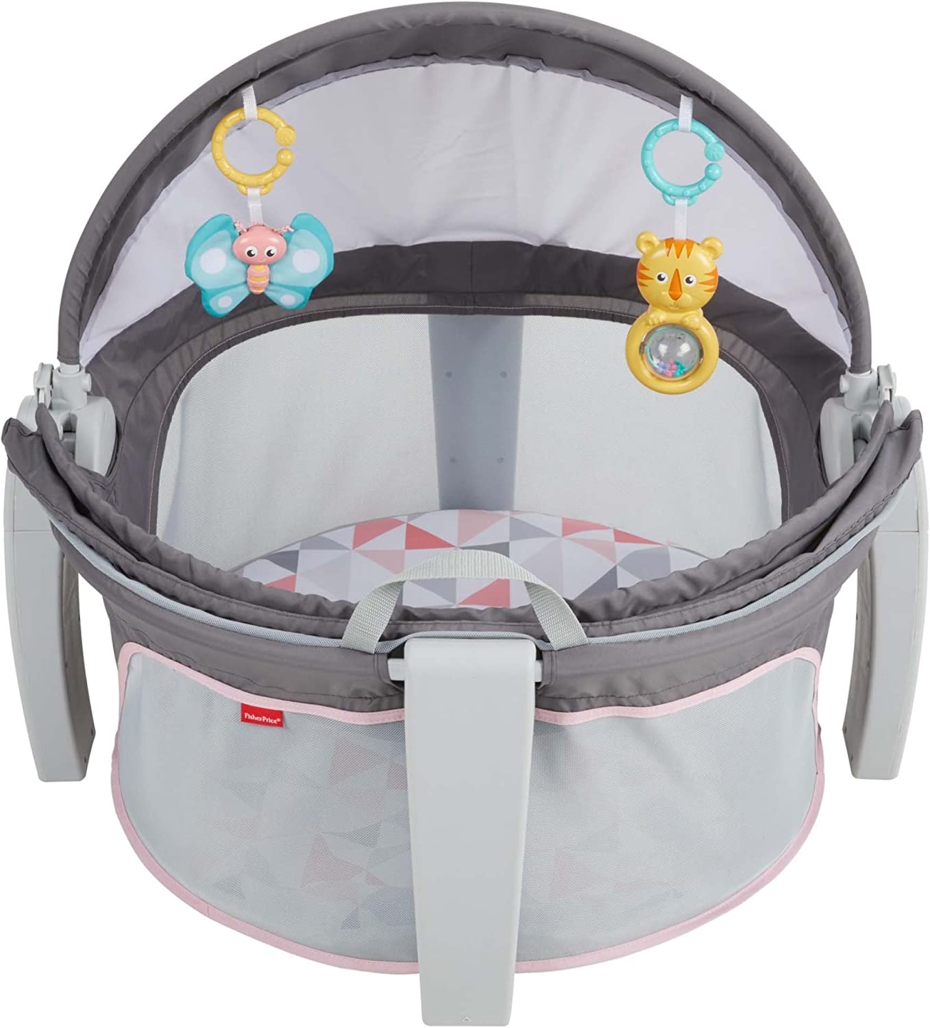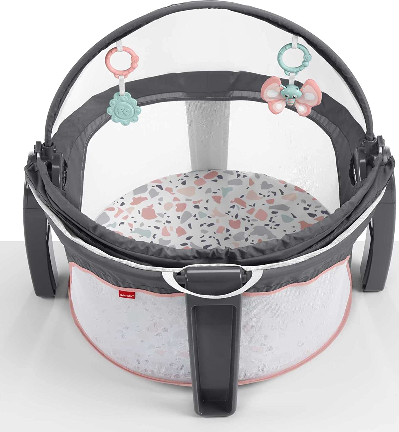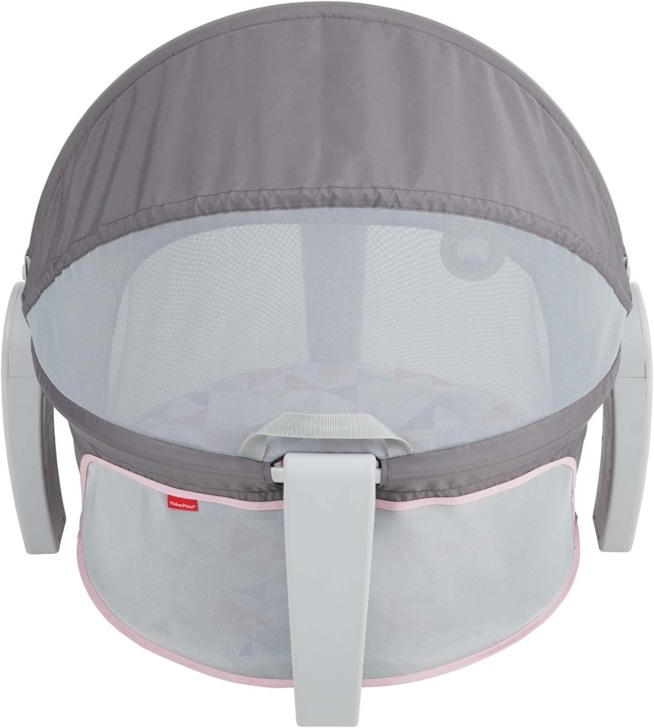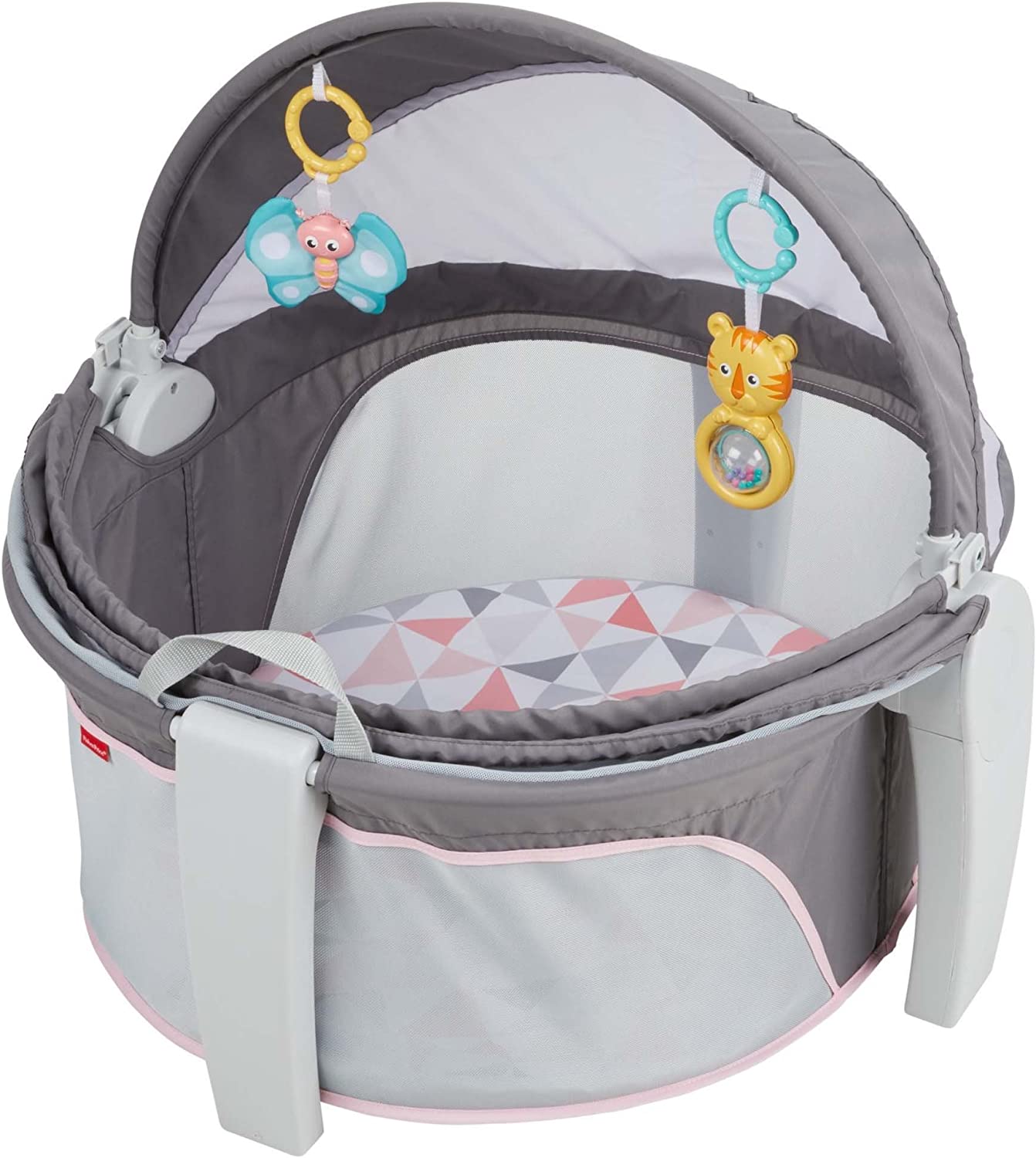 Fisher-Price Portable Bassinet and Play Space On-The-Go Baby Dome with Developmental Toys and Canopy. Pink Pacific Pebble