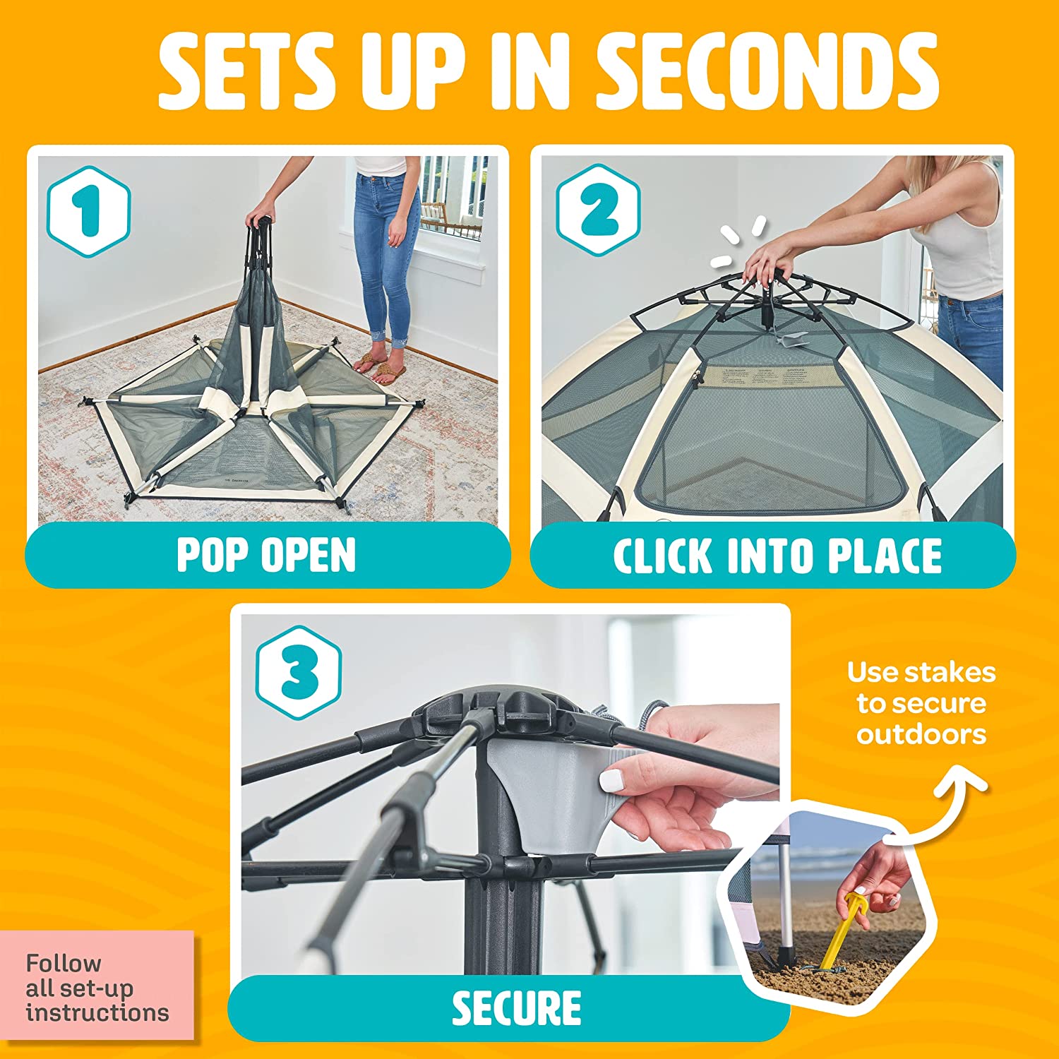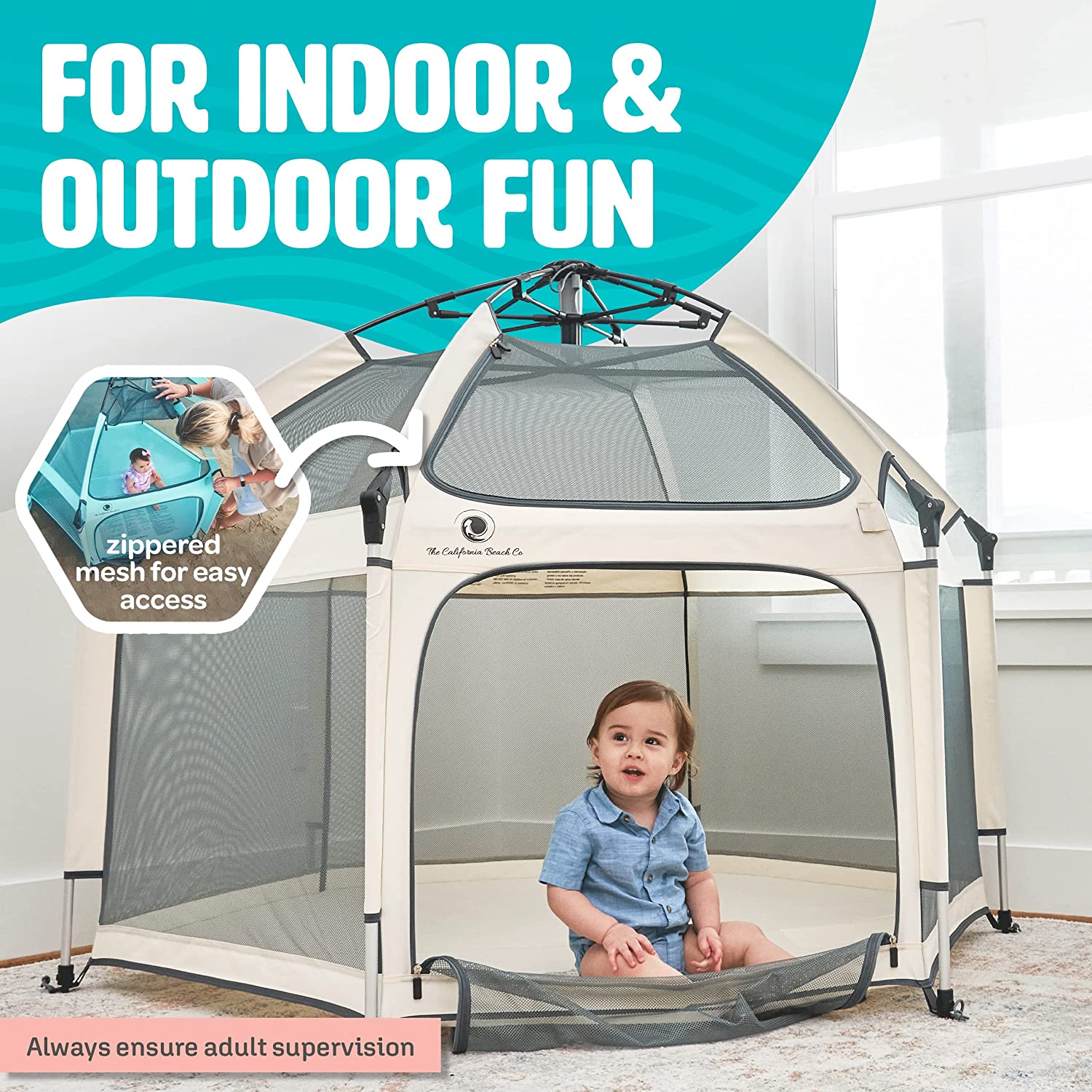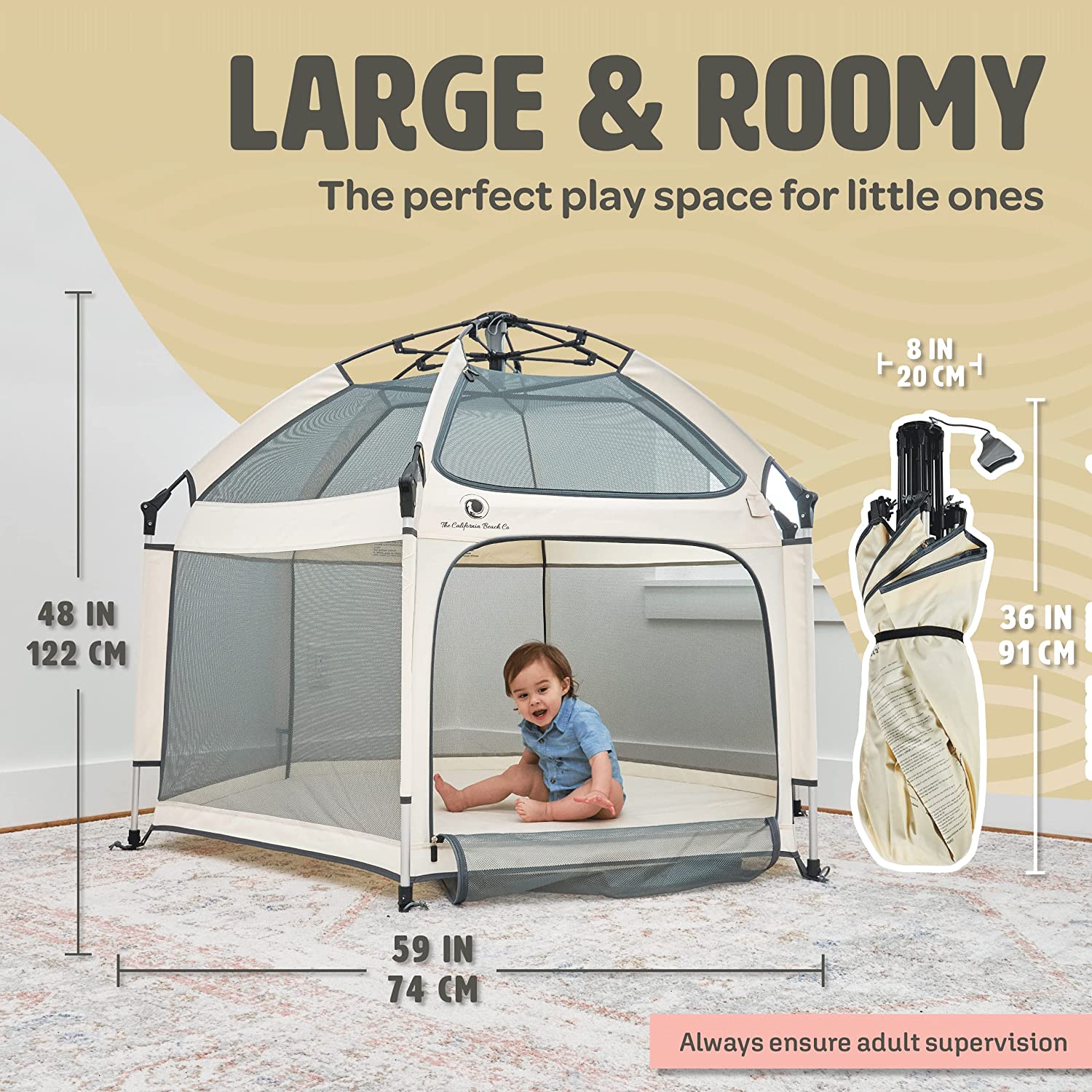 POP ‘N GO Premium Indoor and Outdoor Baby Playpen - Portable. Lightweight. Pop Up Pack and Play Toddler Play Yard w/Canopy and Travel Bag - Warm Ivory