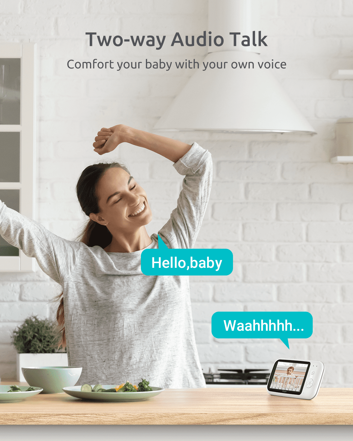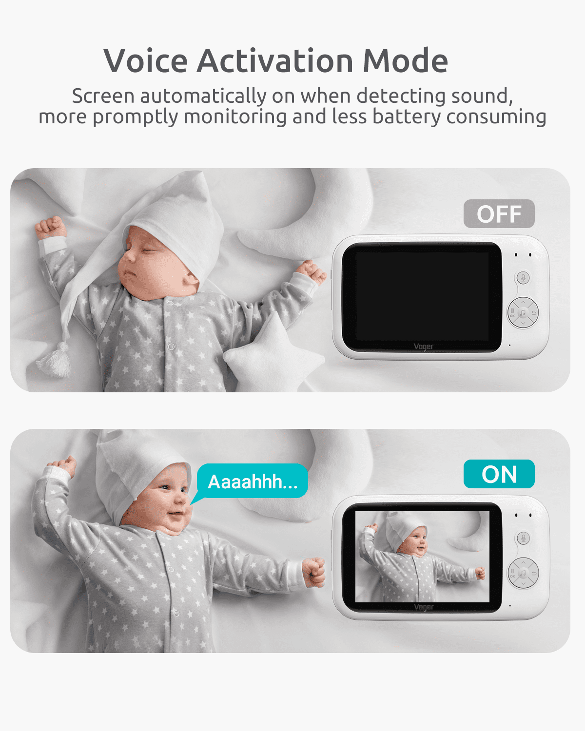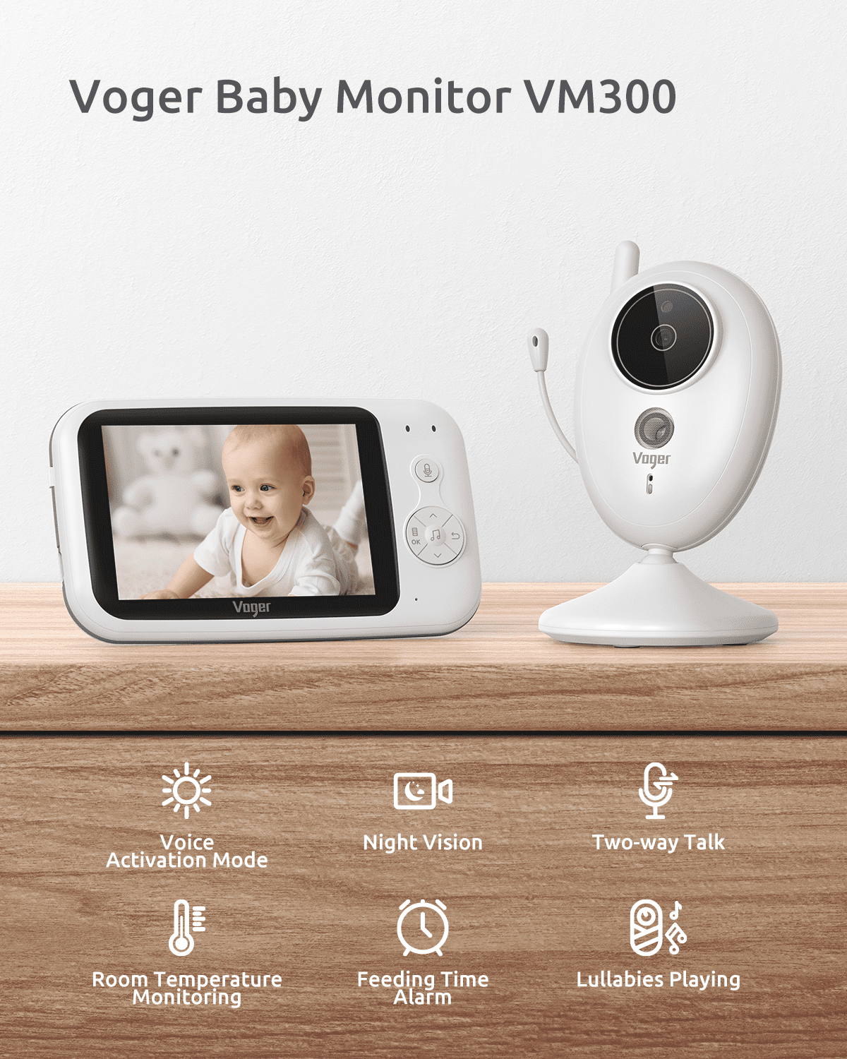 Voger Video Baby Monitor with Camera. 3.2-inch LCD Screen. 2.4GHz Wireless Digital Transmission. VOX Mode. Temperature Sensor. Night Vision. 8 Lullabies. Two Way Talk