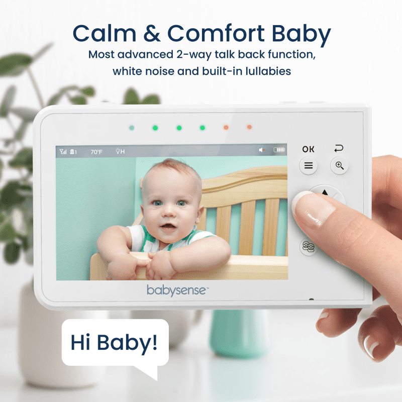 Babysense Split Screen Video Baby Monitor. 4.3″ Display with 2 PTZ Cameras. Long Range. Night Light & Vision. Two-Way Talk. V43