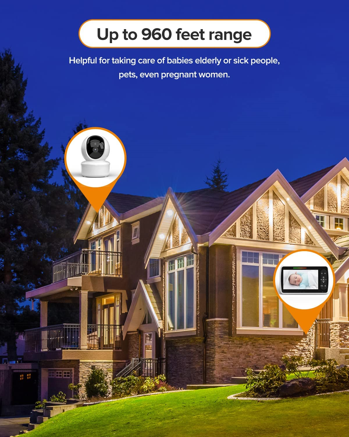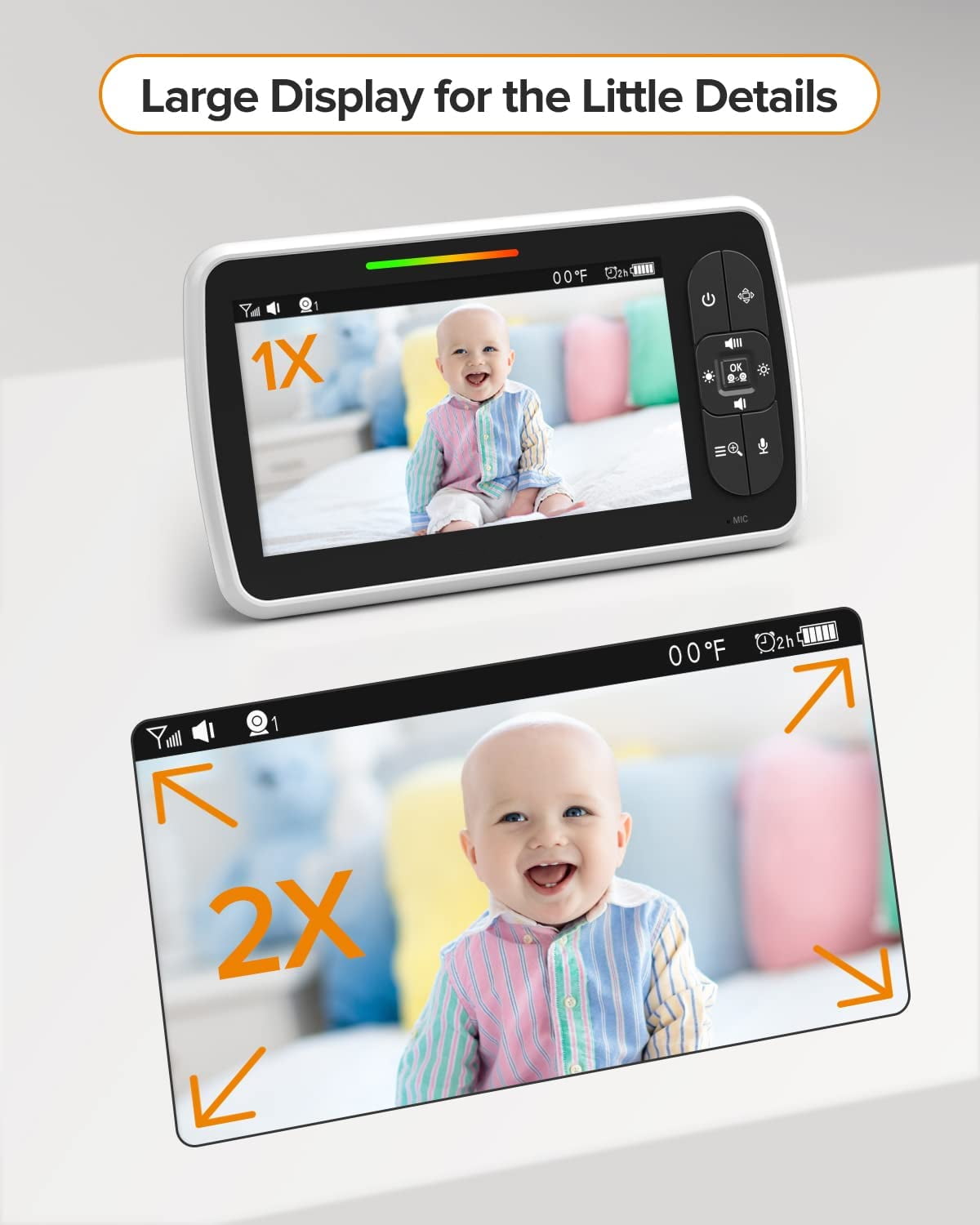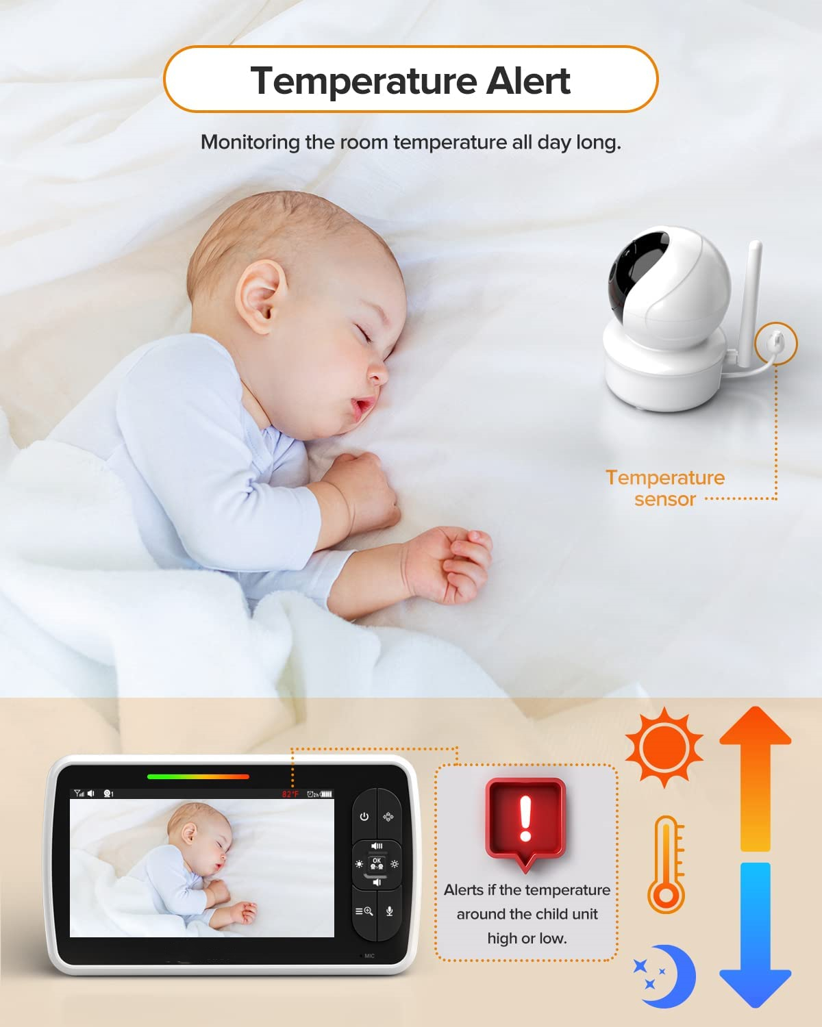Baby Monitor - 5 Large Display Video Baby Monitor with Remote Pan-Tilt-Zoom |Infrared Night Vision. Temperature Display. Lullaby. Two Way Audio |1000ft Range Baby Monitor with Camera and Audio