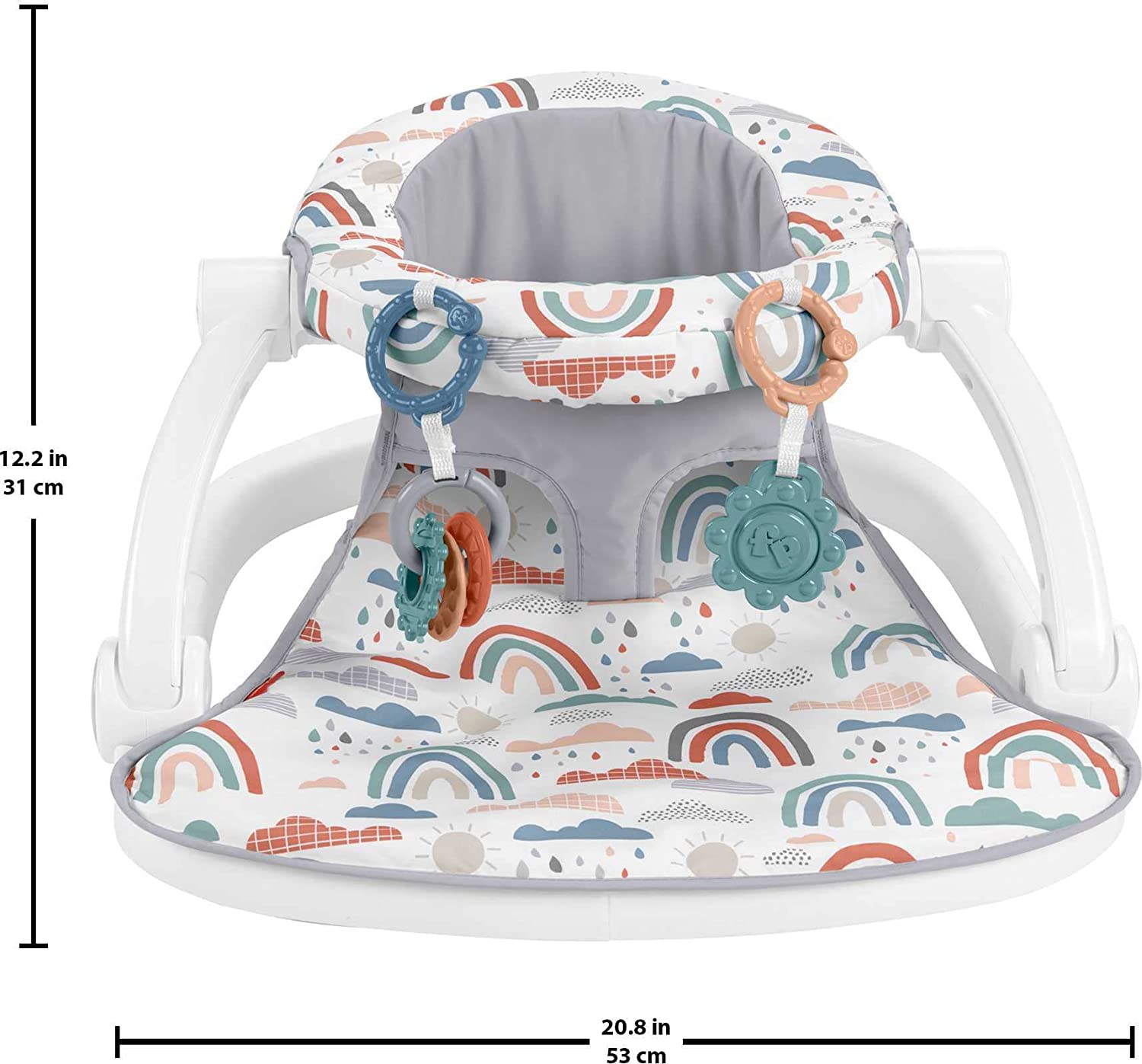 Fisher-Price Portable Baby Chair Sit-Me-Up Floor Seat with 2 Developmental Toys. Rainbow Showers