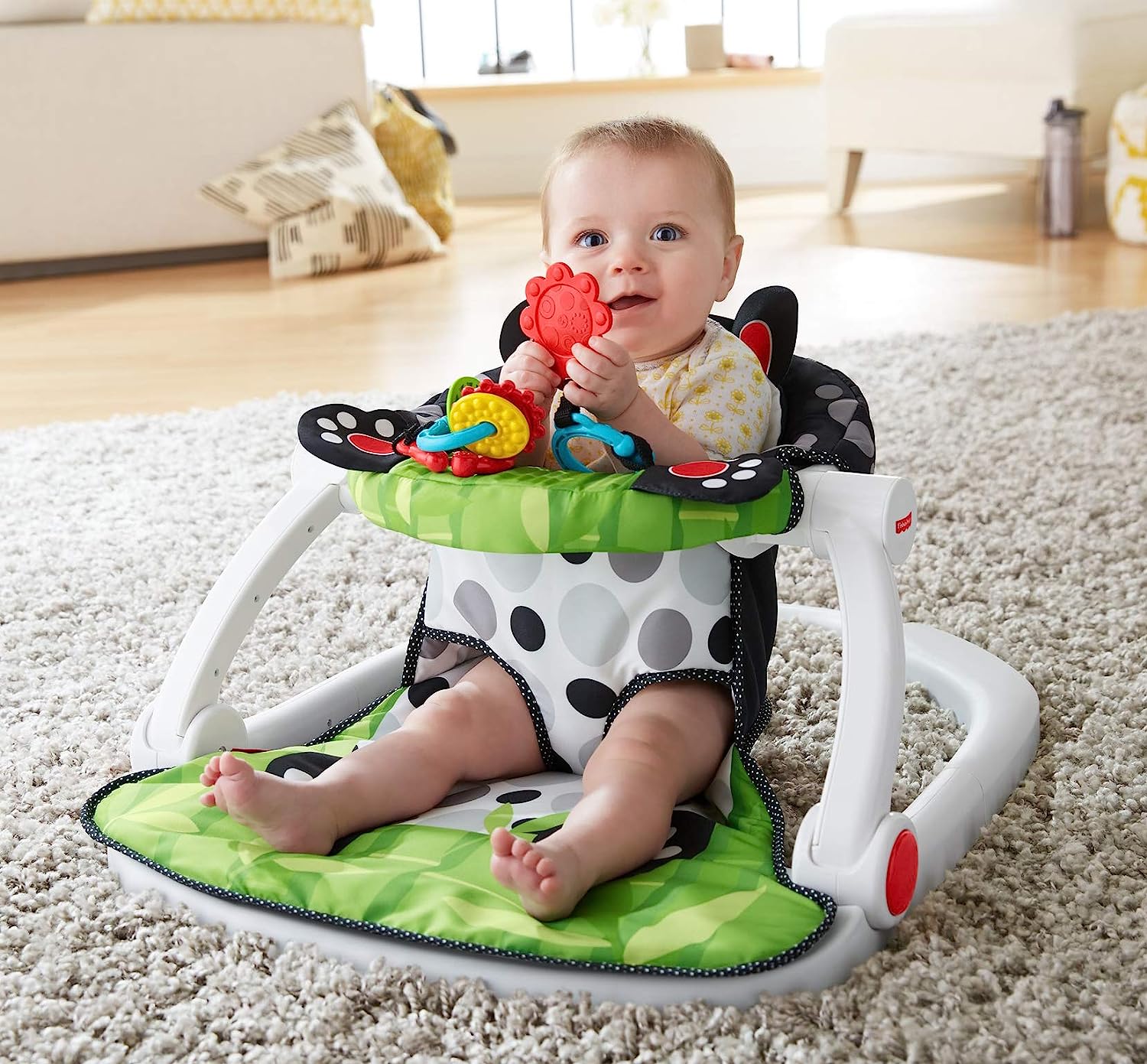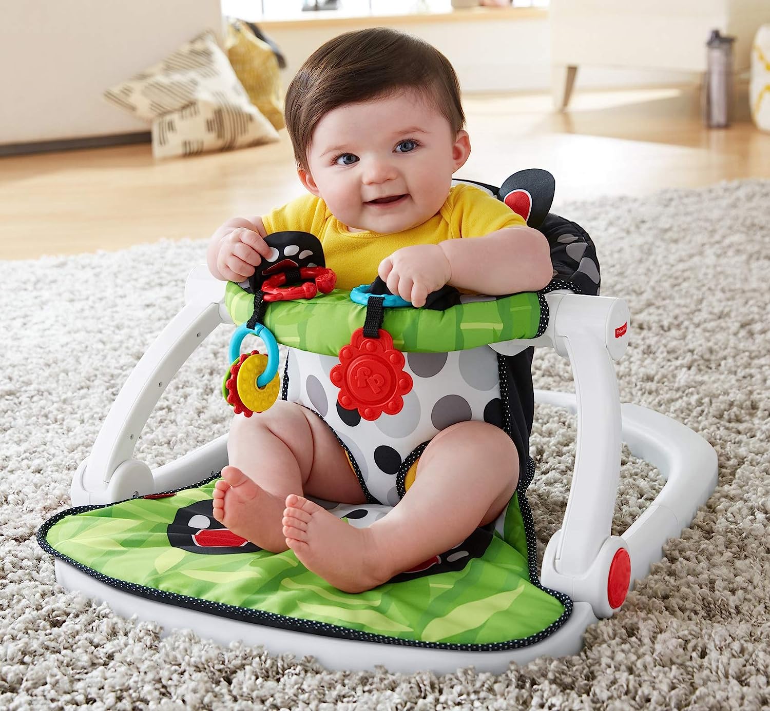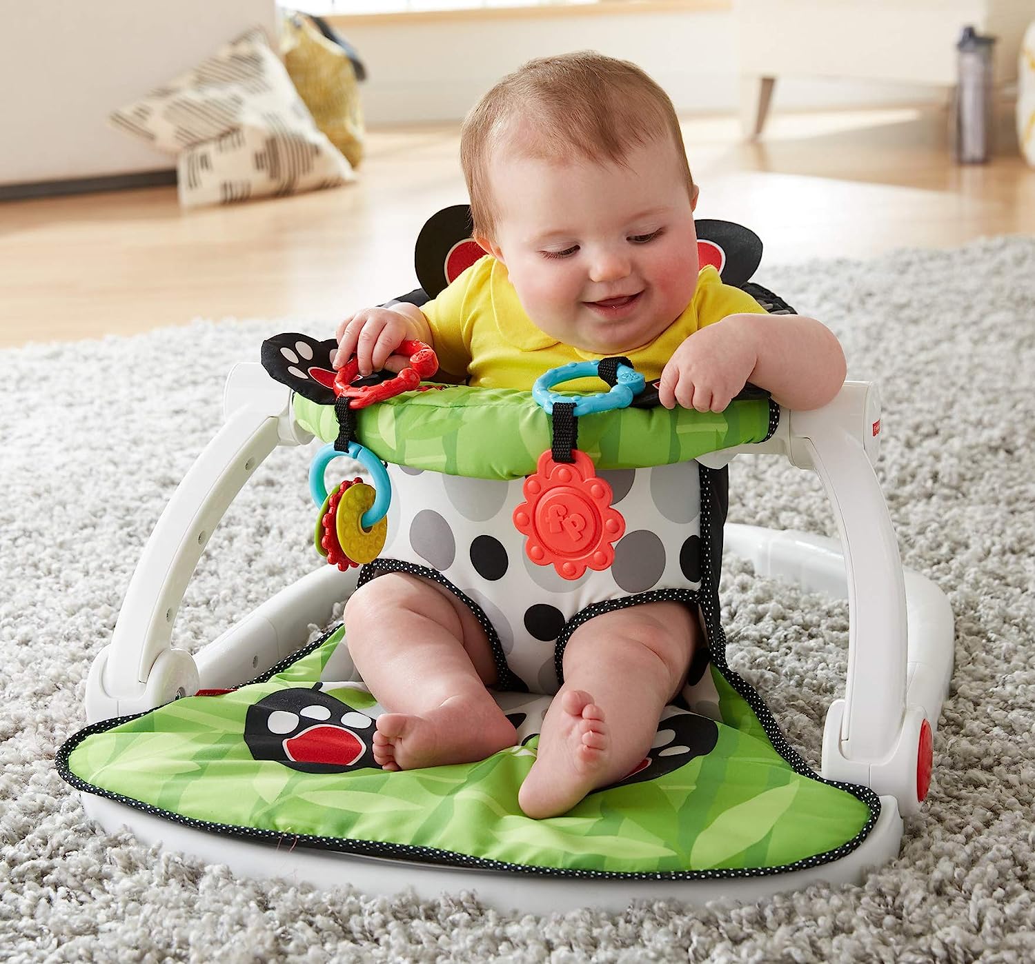 Fisher-Price Portable Baby Chair Sit-Me-Up Floor Seat with Developmental Toys and Crinkle & Squeaker Seat Pad. Panda Paws