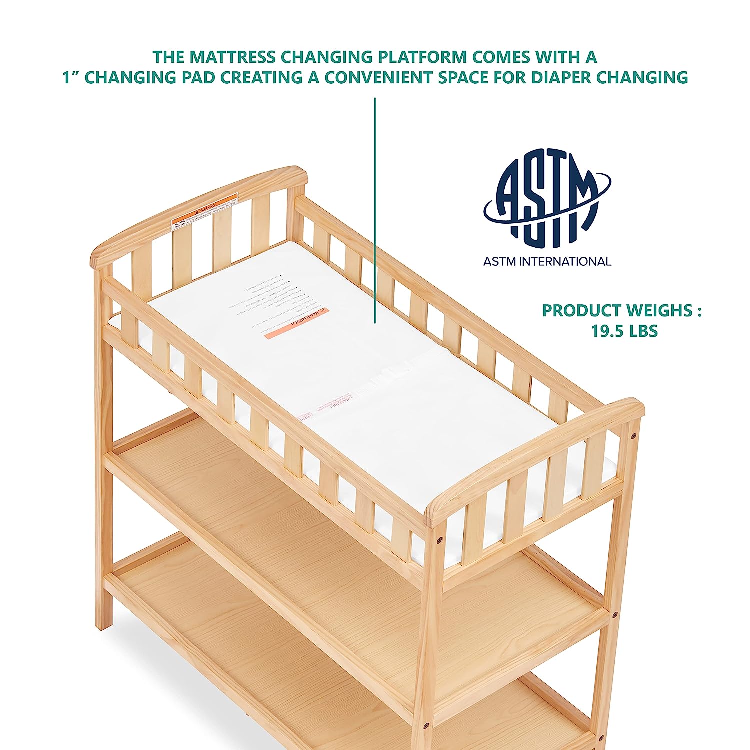 Dream On Me Emily Changing Table In Natural. Comes With 1″ Changing Pad. Features Two Shelves. Portable Changing Station. Made Of Sustainable New Zealand Pinewood