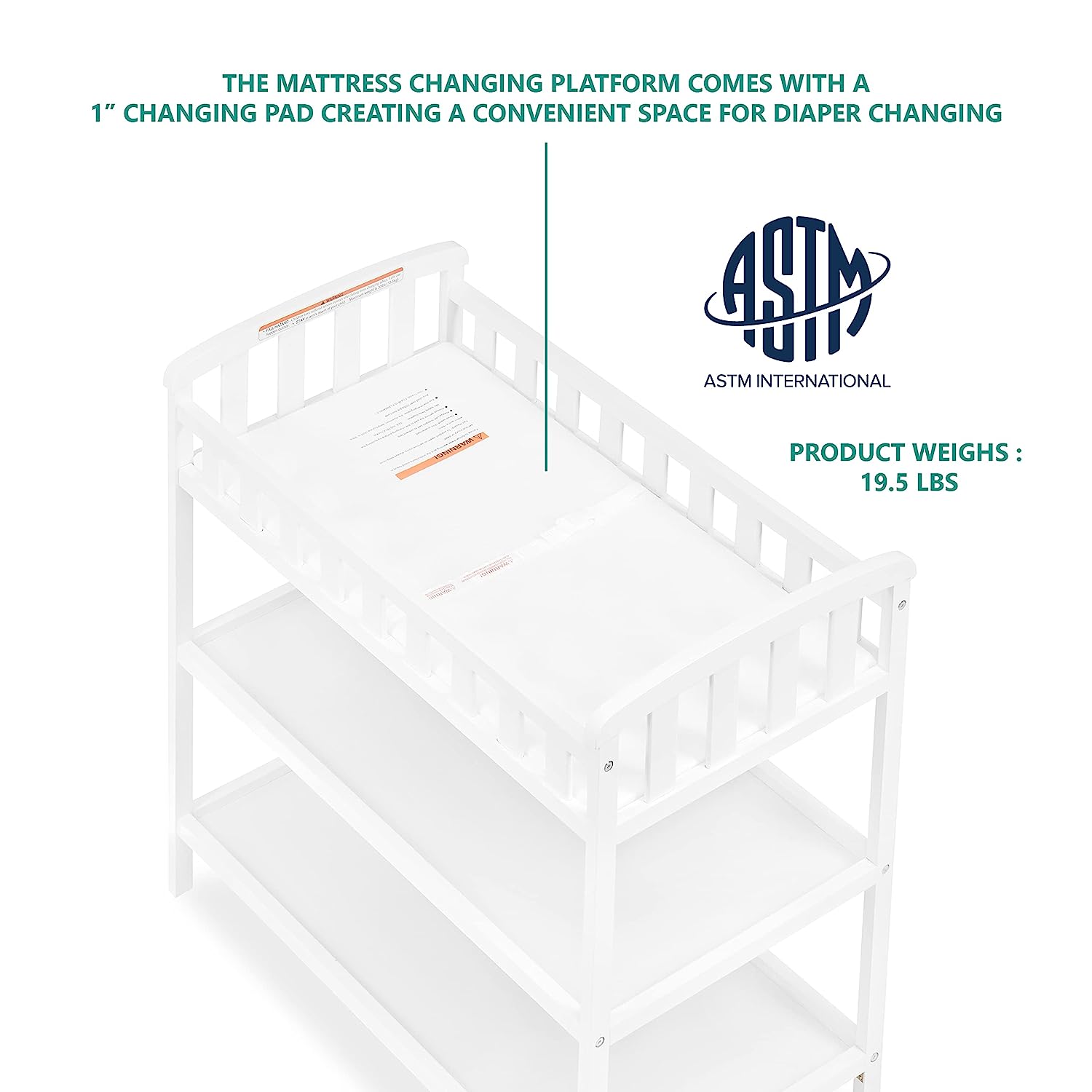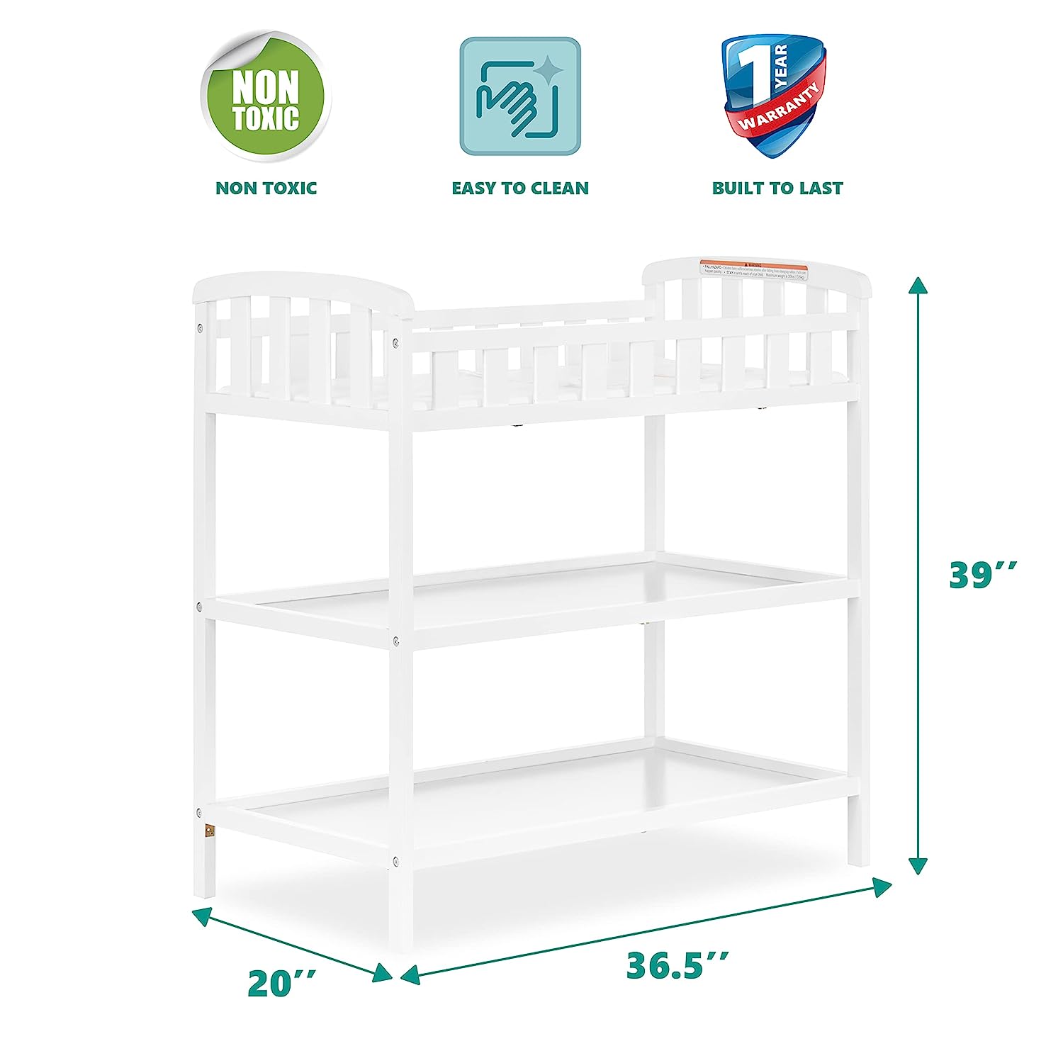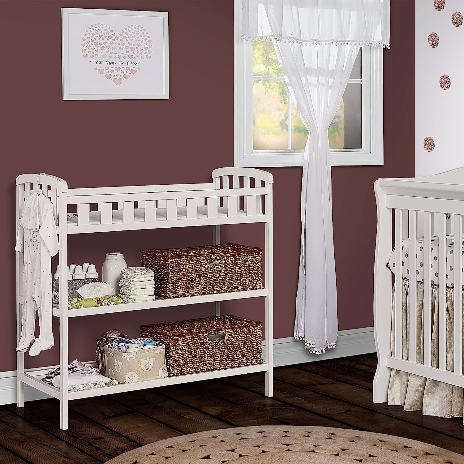 Dream On Me Emily Changing Table In White. Comes With 1″ Changing Pad. Features Two Shelves. Portable Changing Station. Made Of Sustainable New Zealand Pinewood