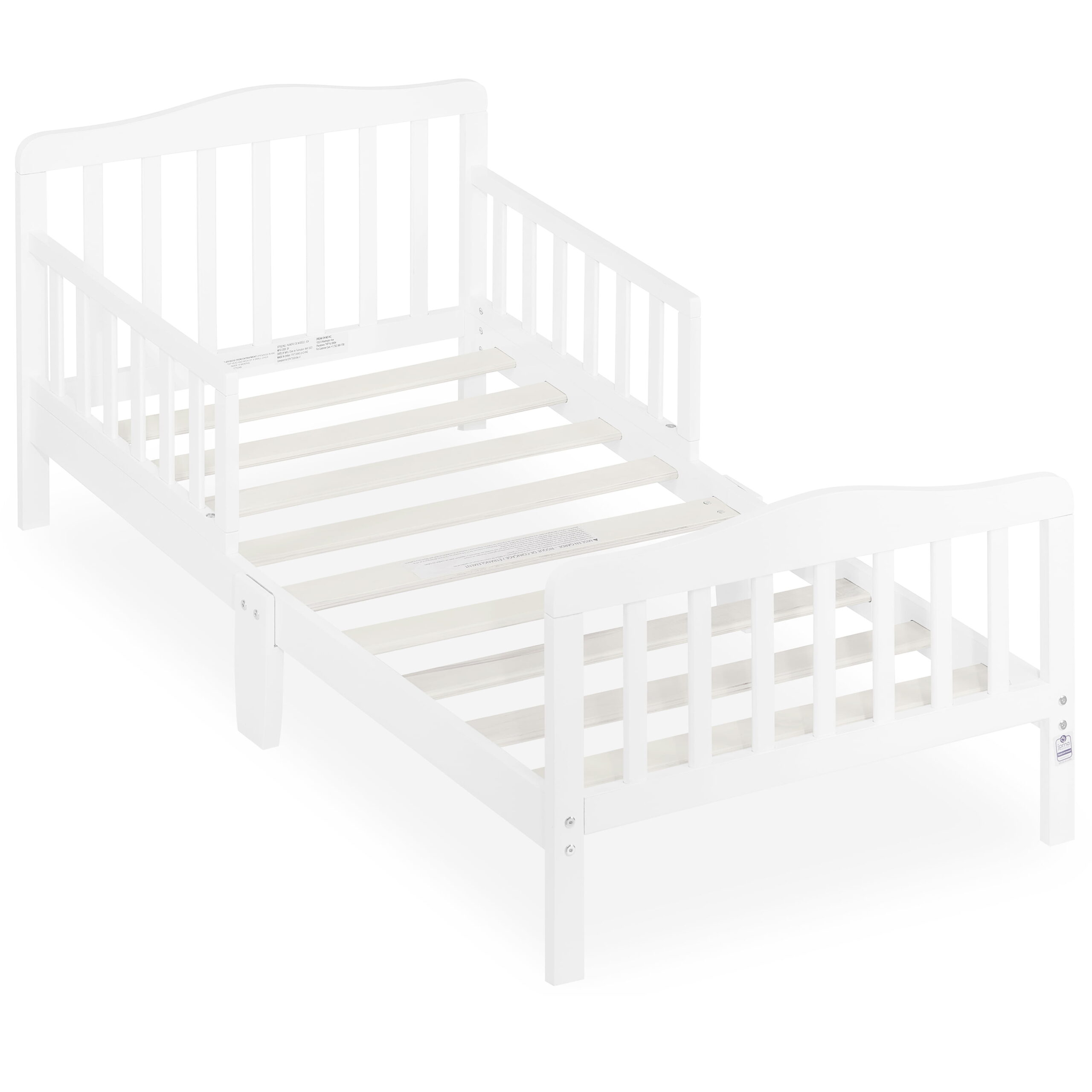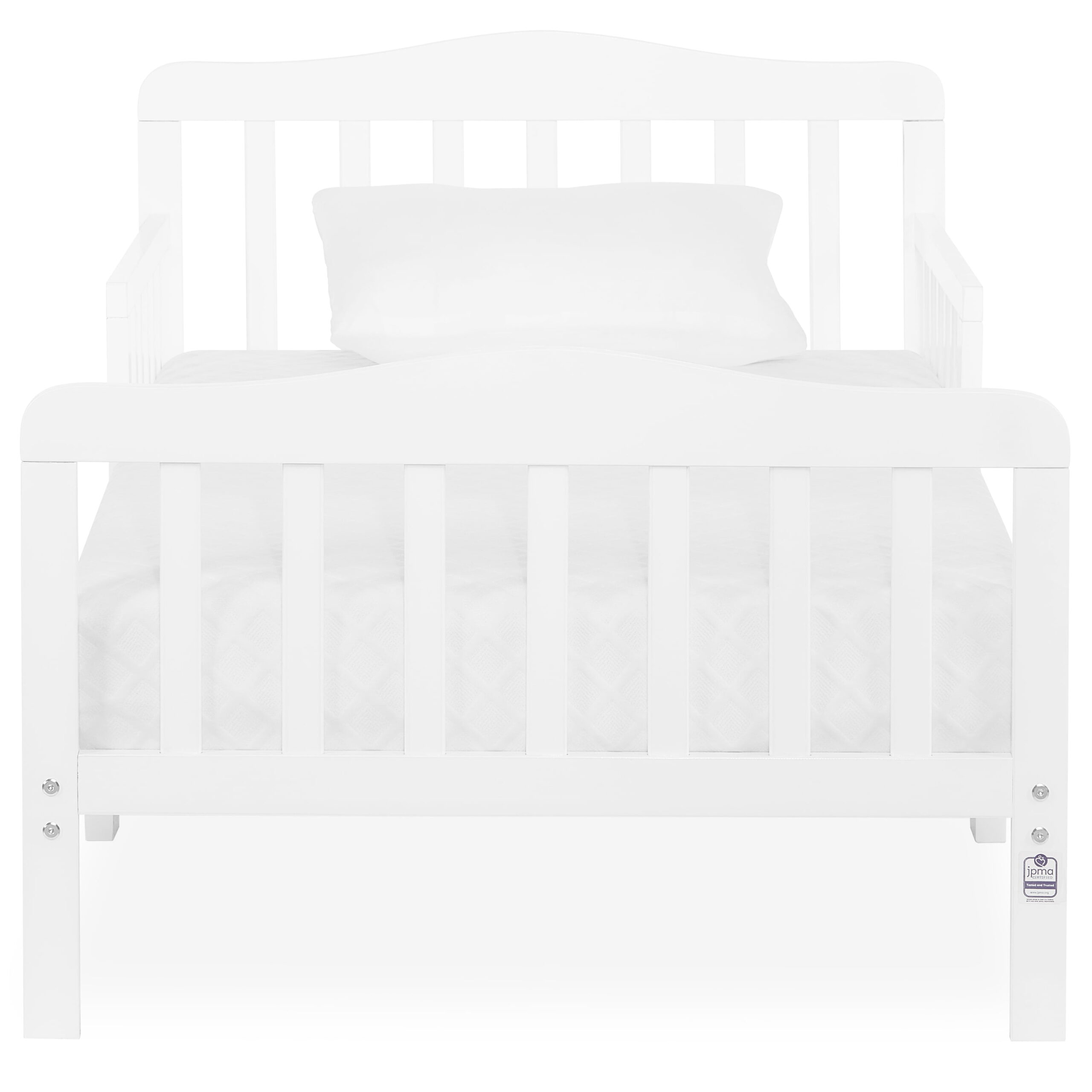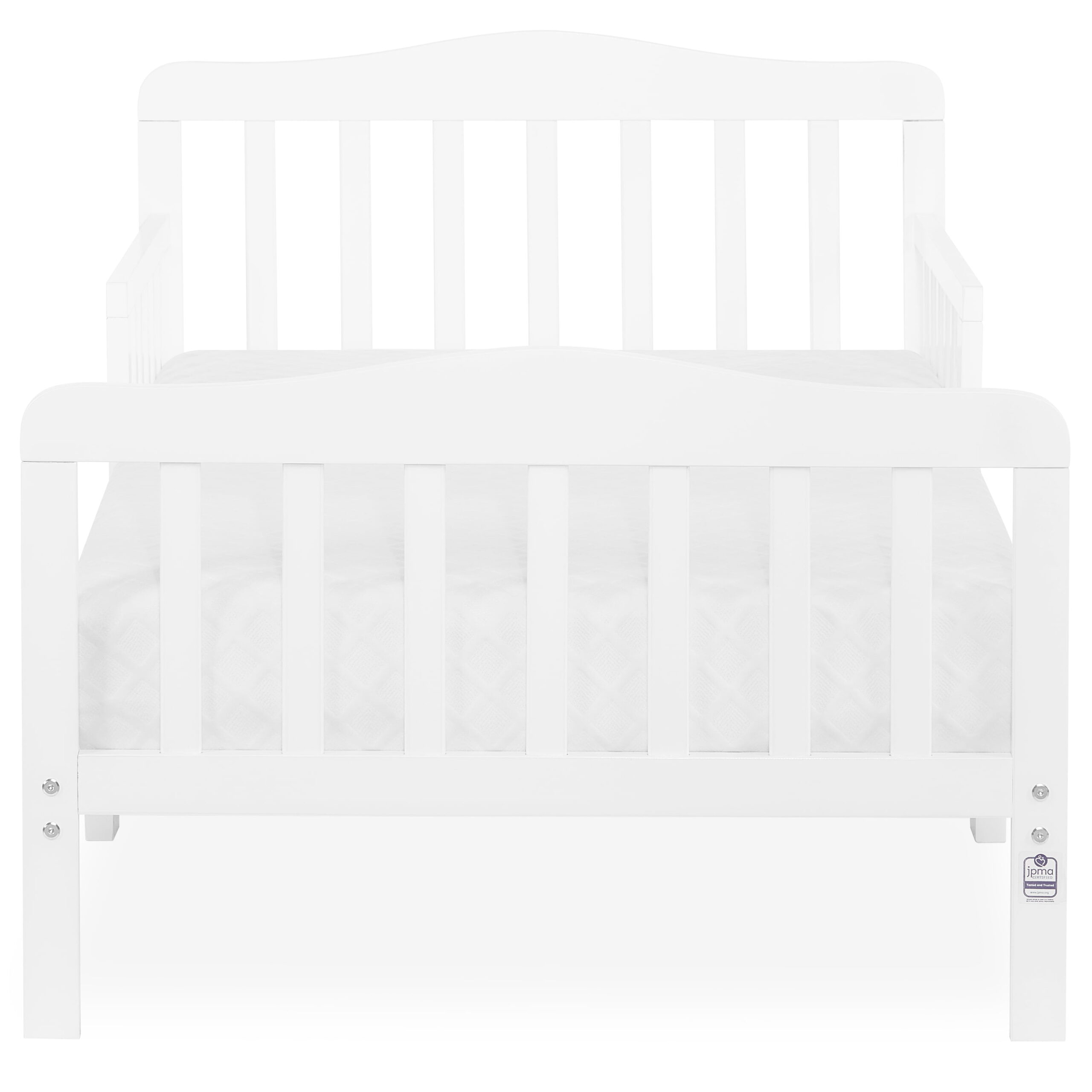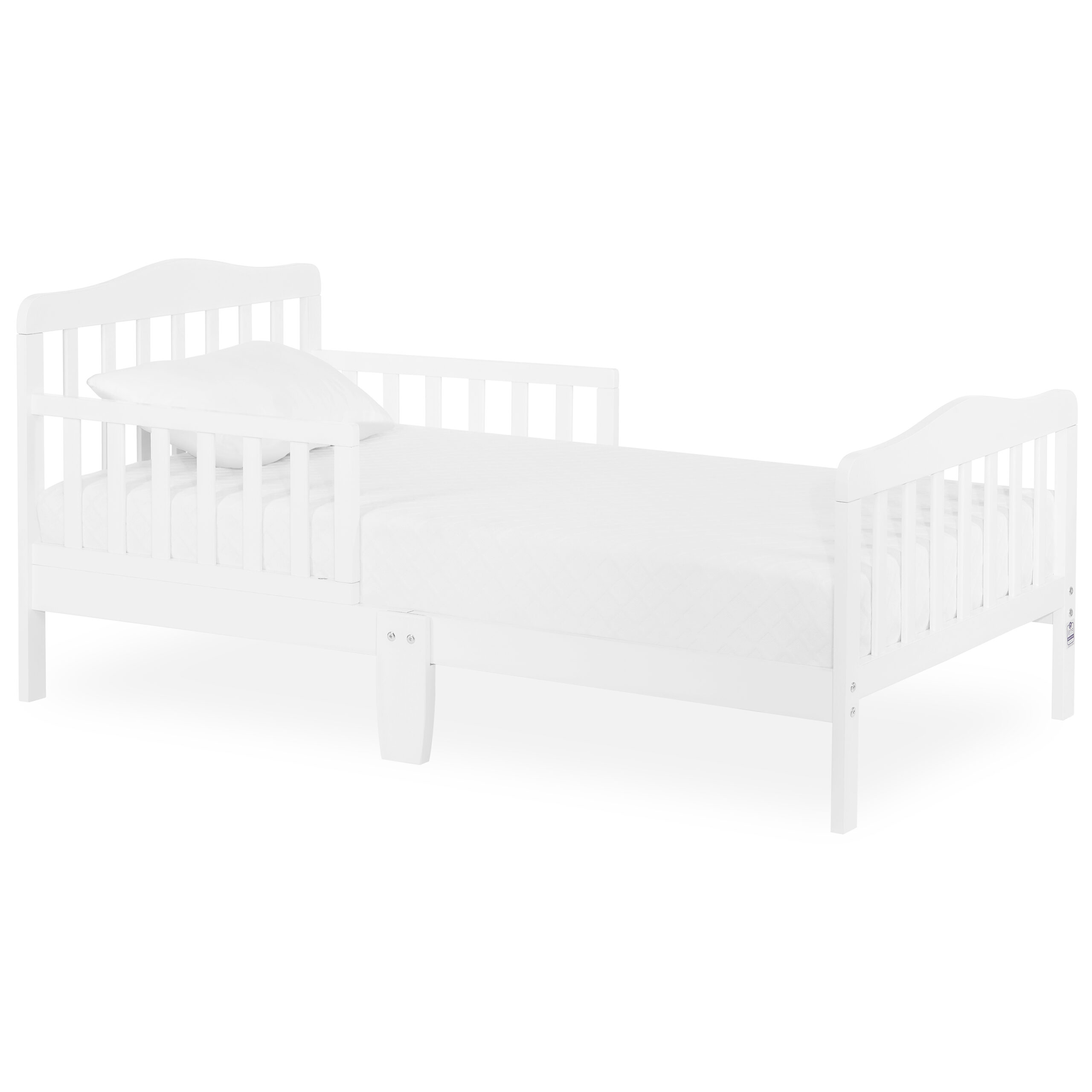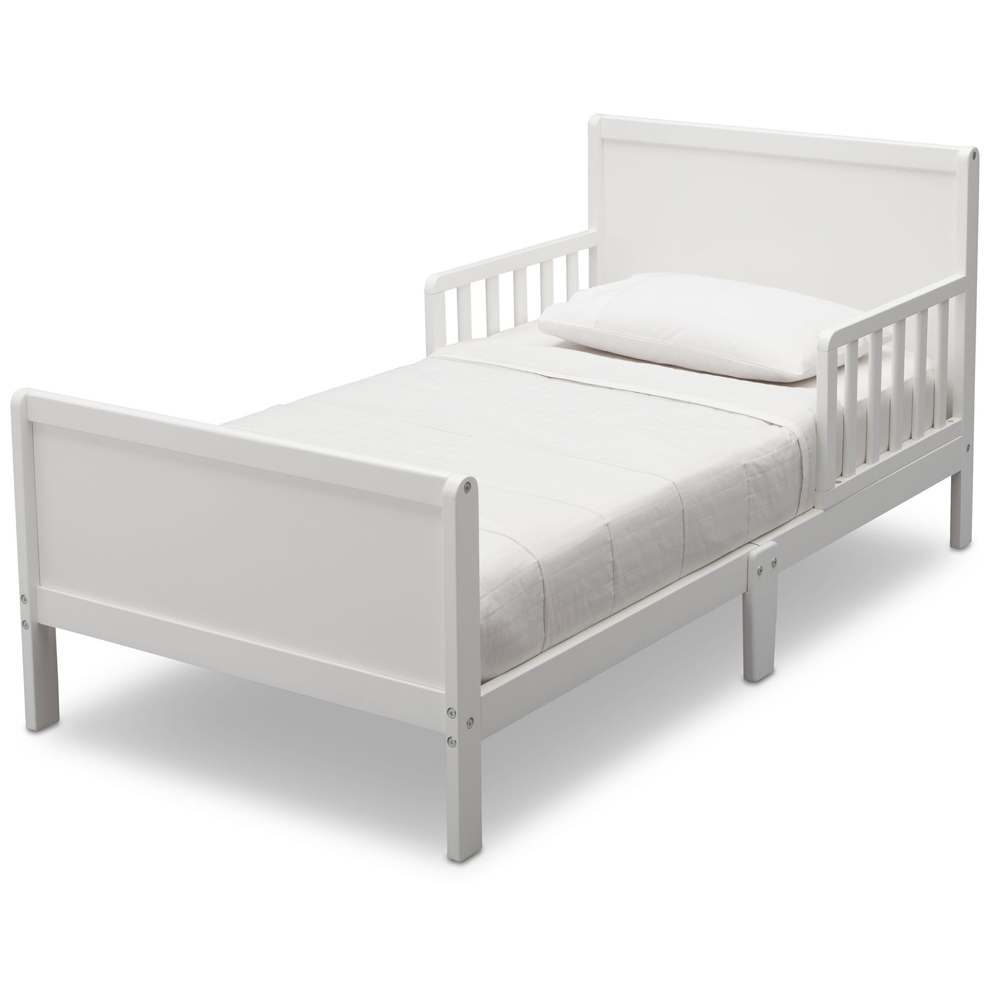 Delta Children Epic Wood Toddler Bed with Attached Guardrails. Bianca White