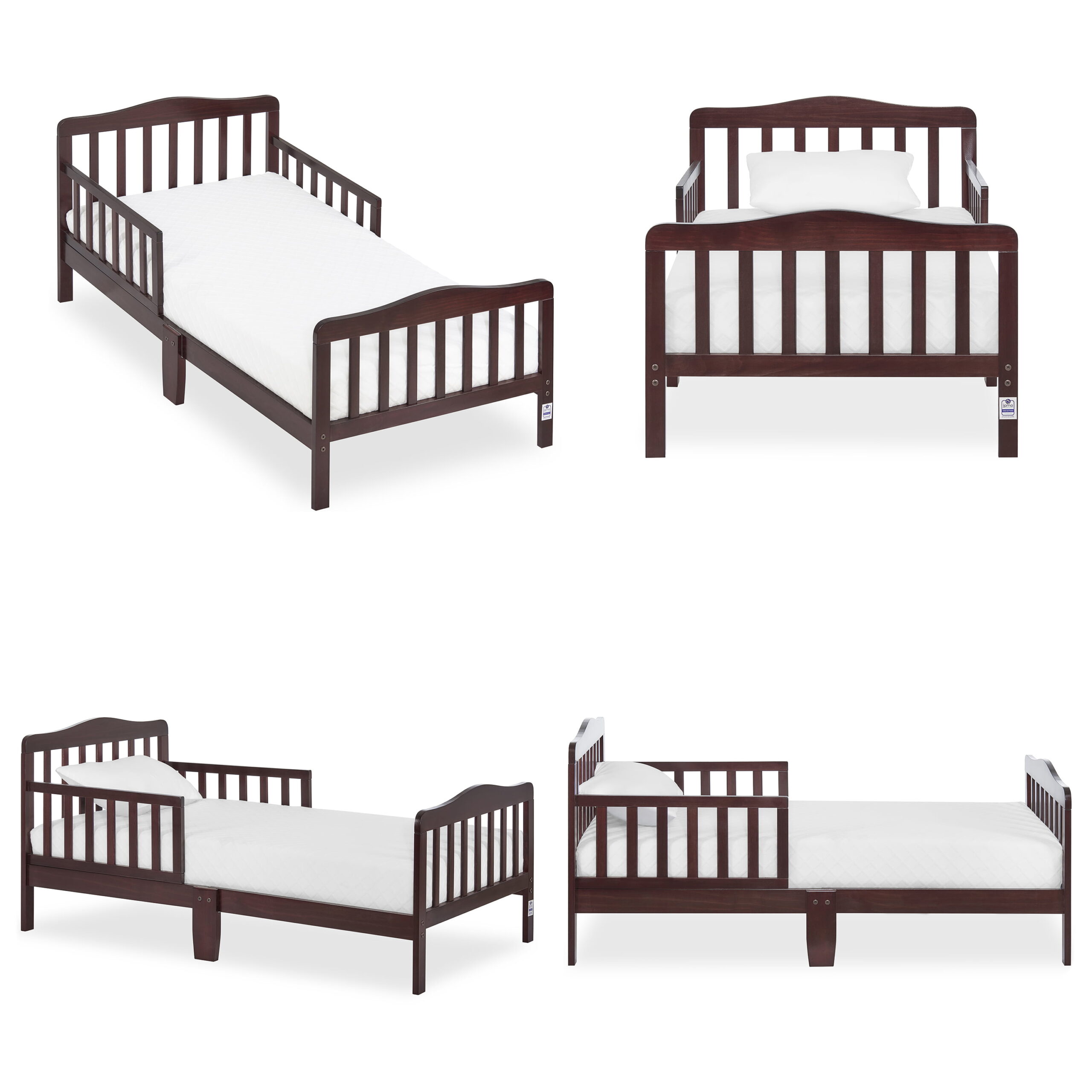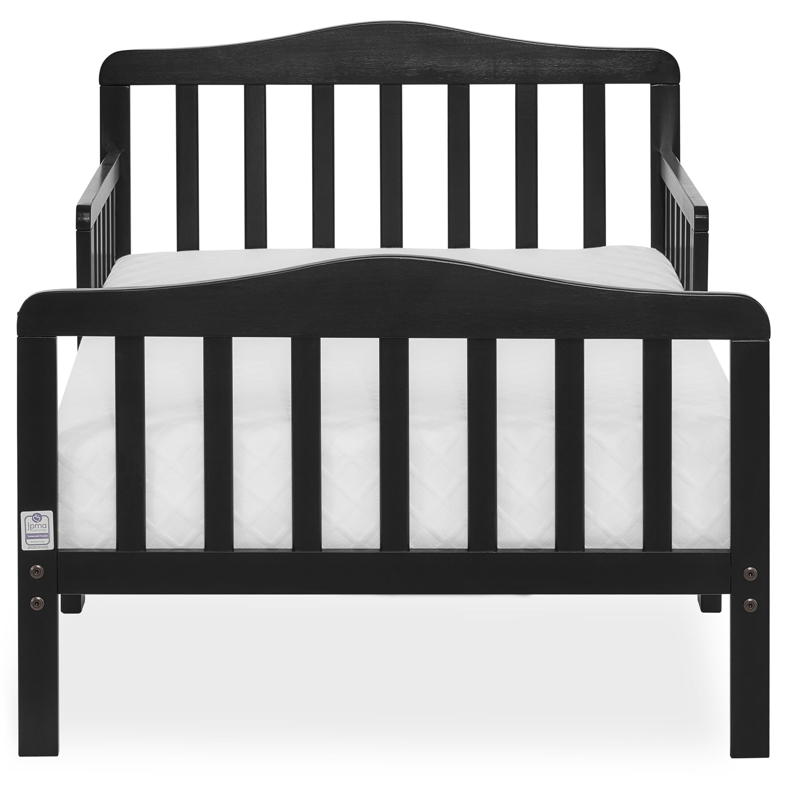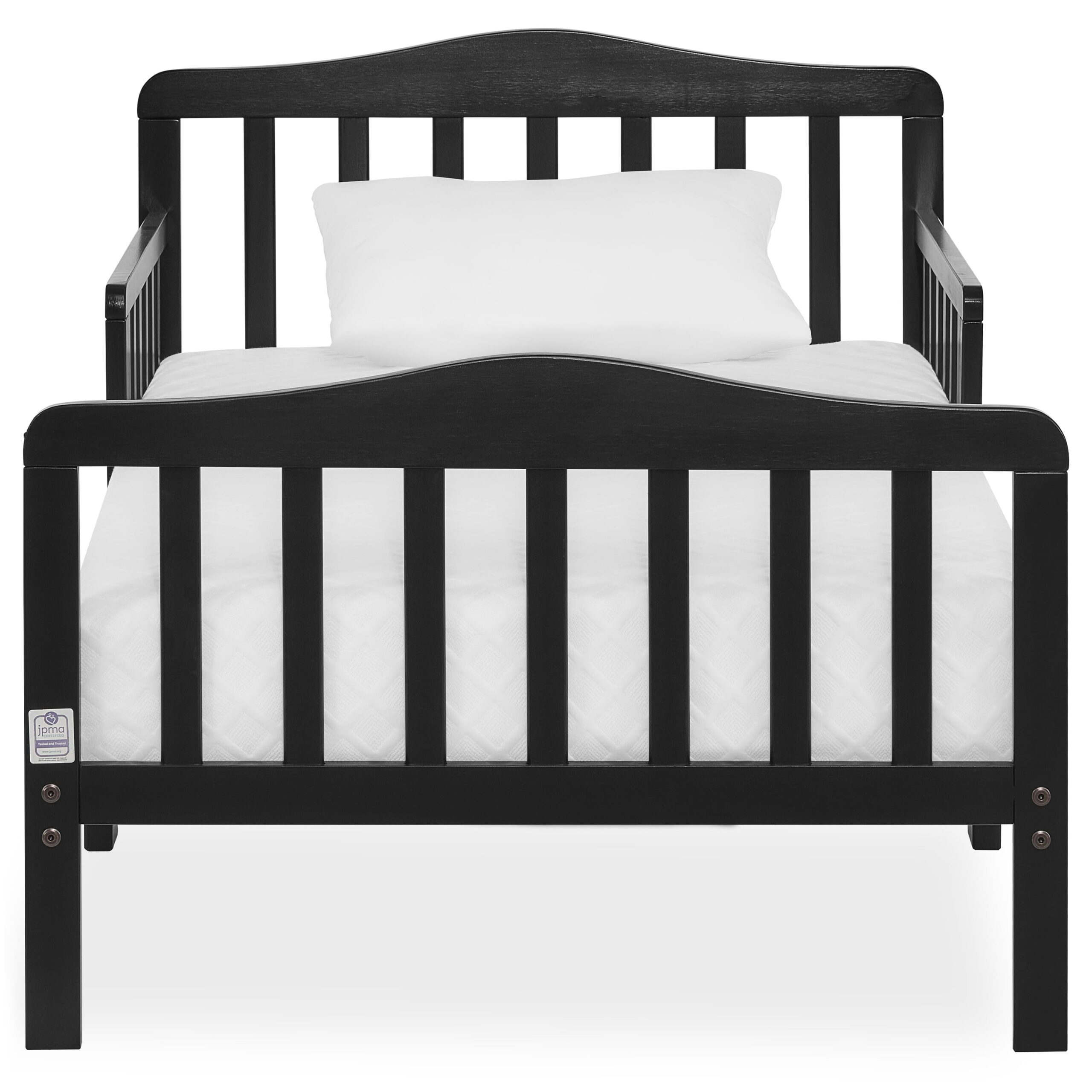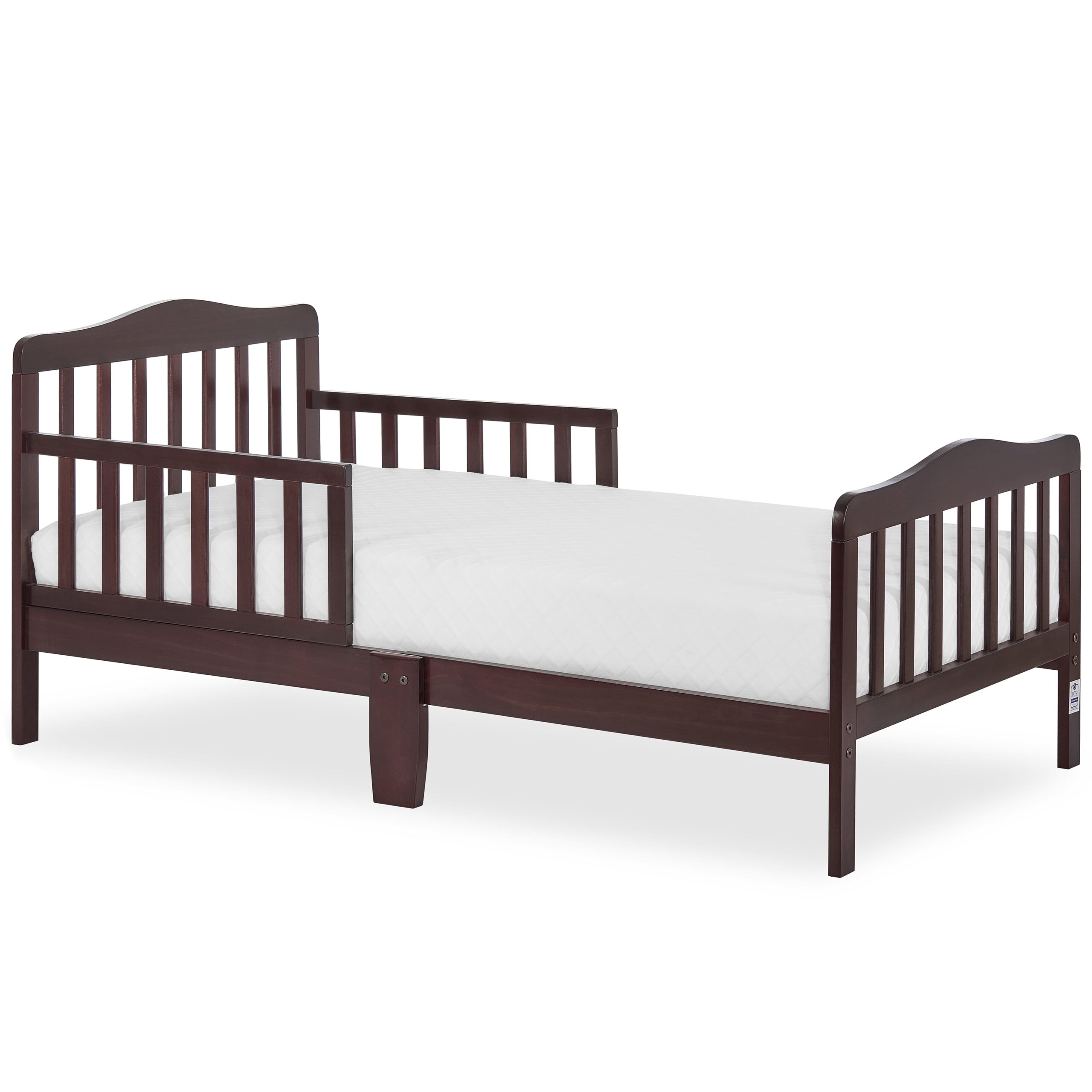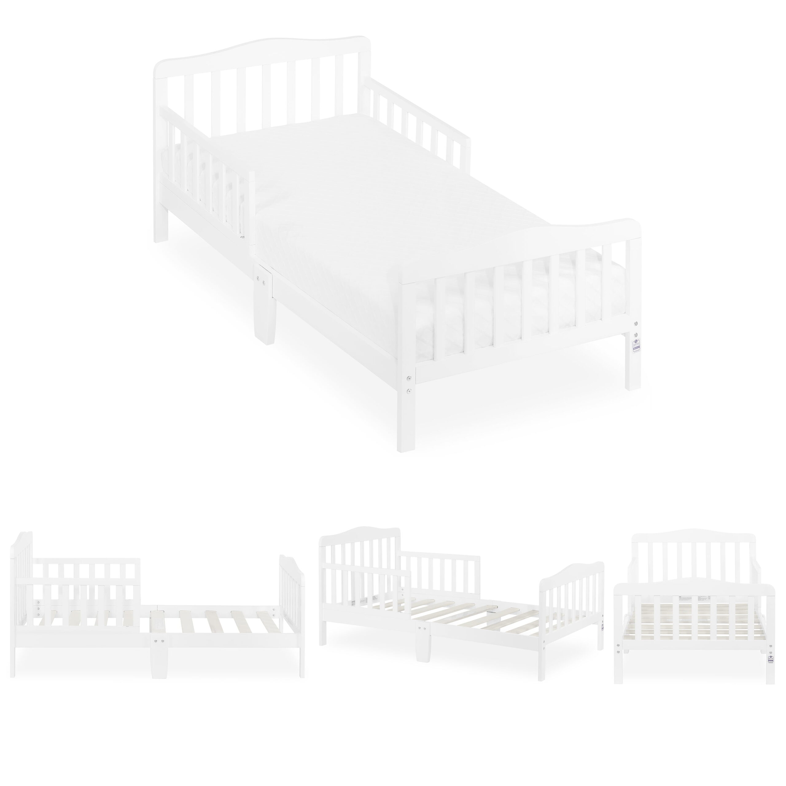 Delta Children Epic Wood Toddler Bed with Attached Guardrails. Bianca White