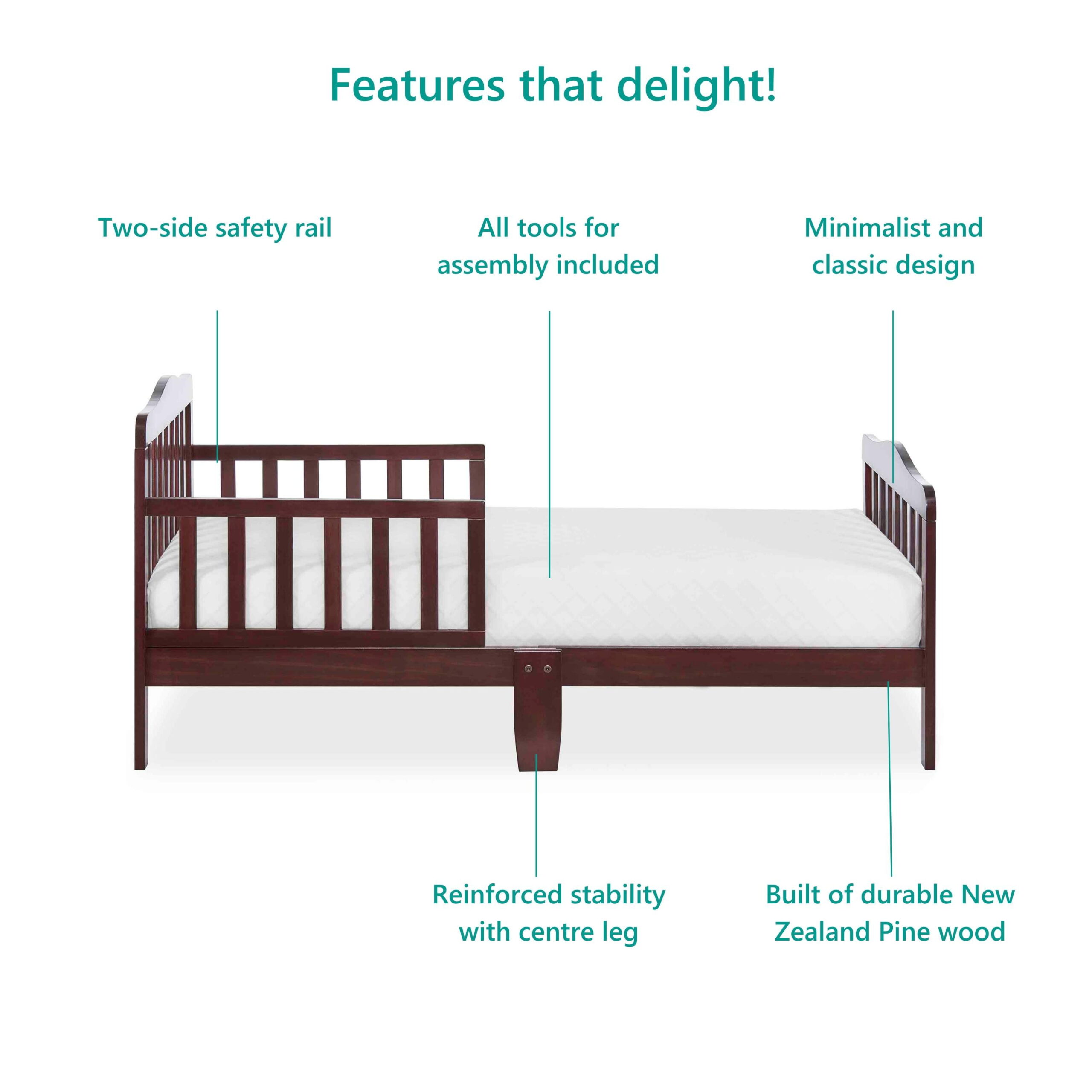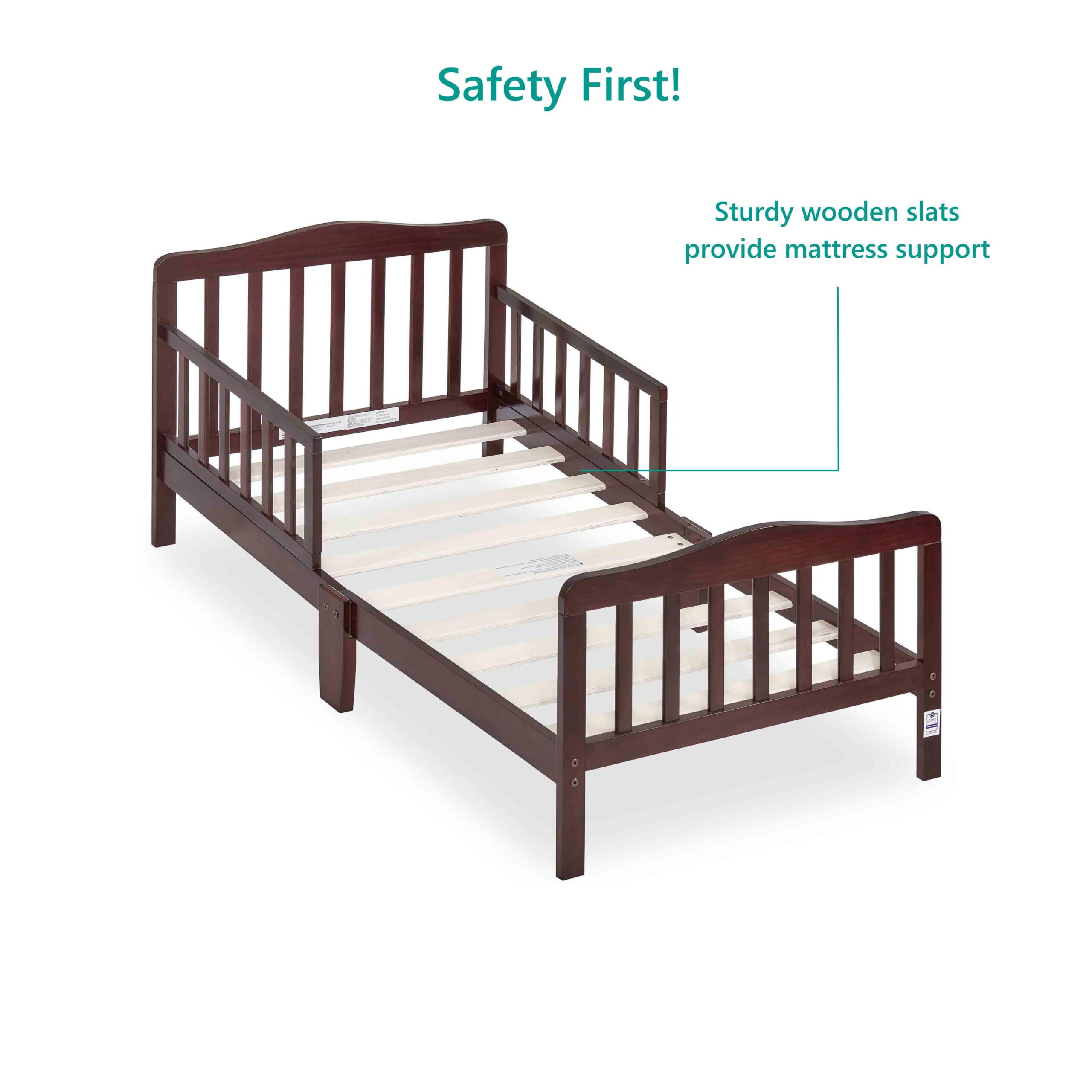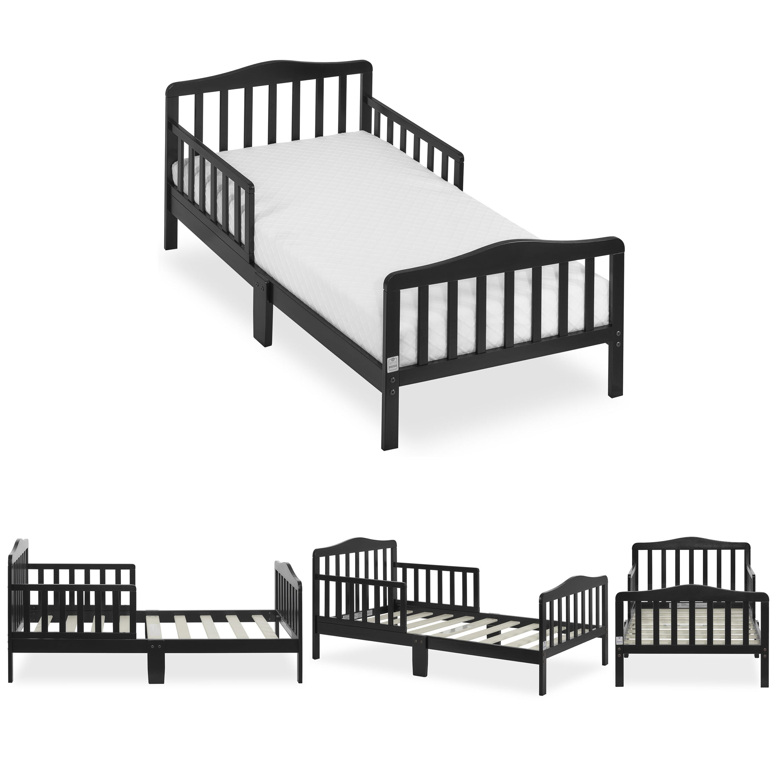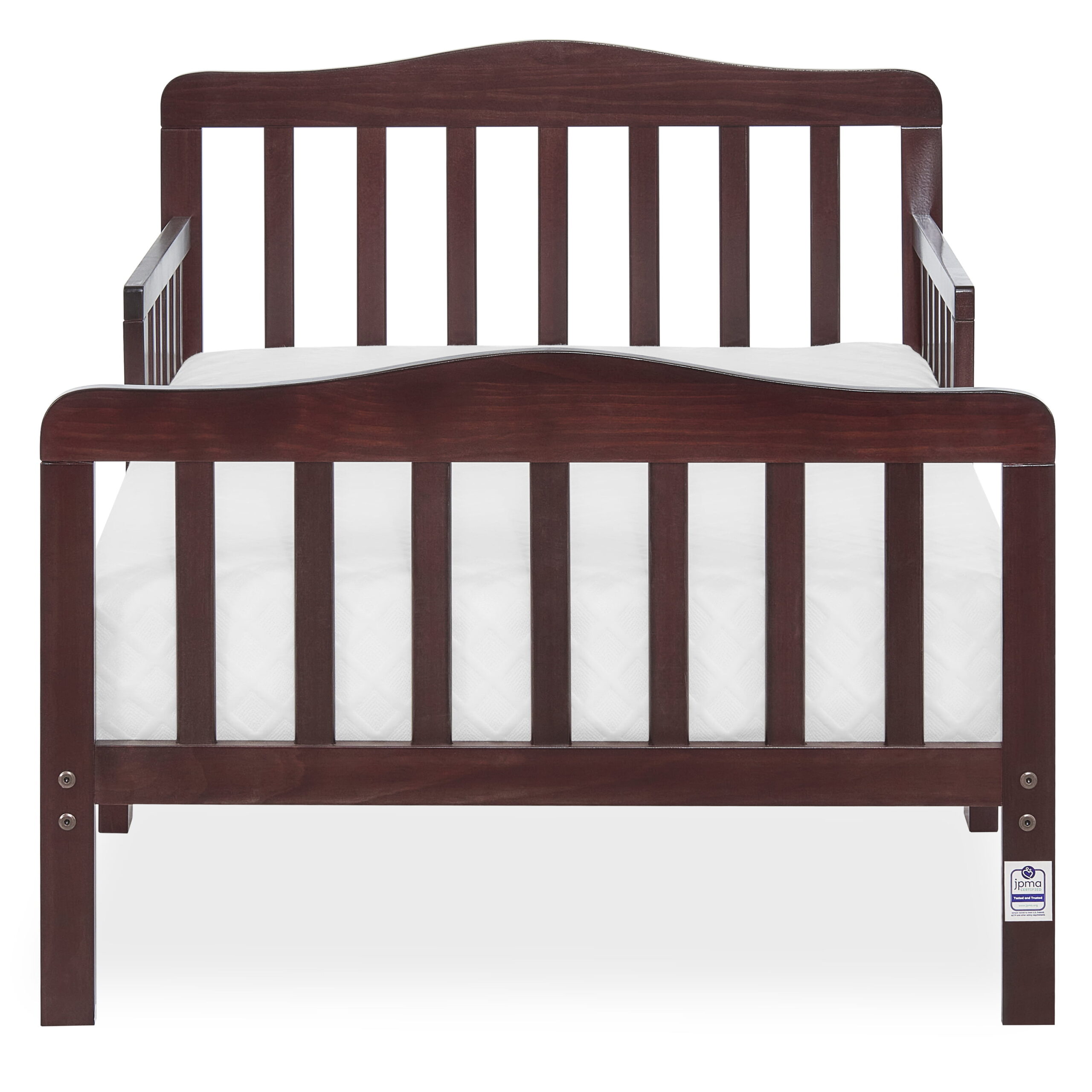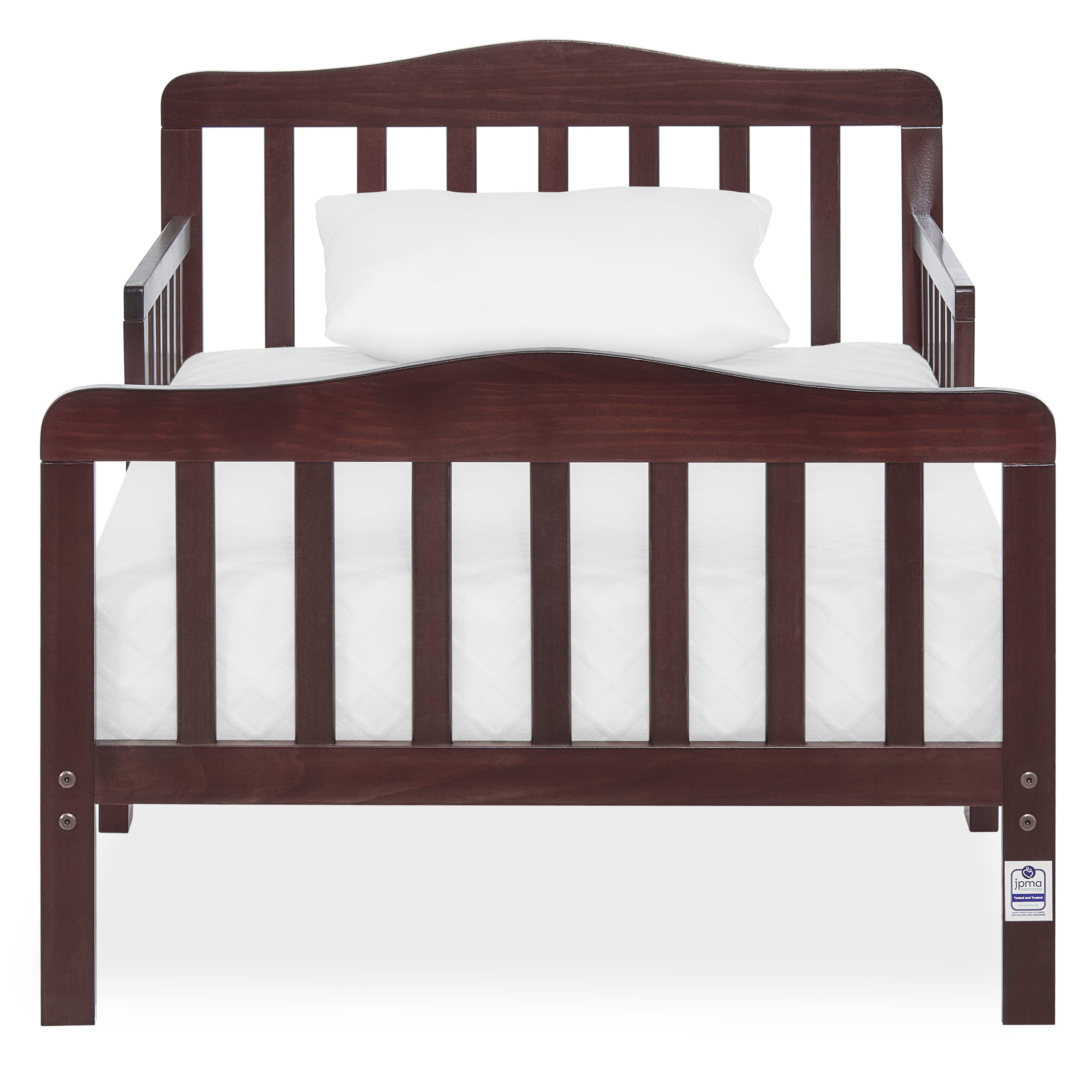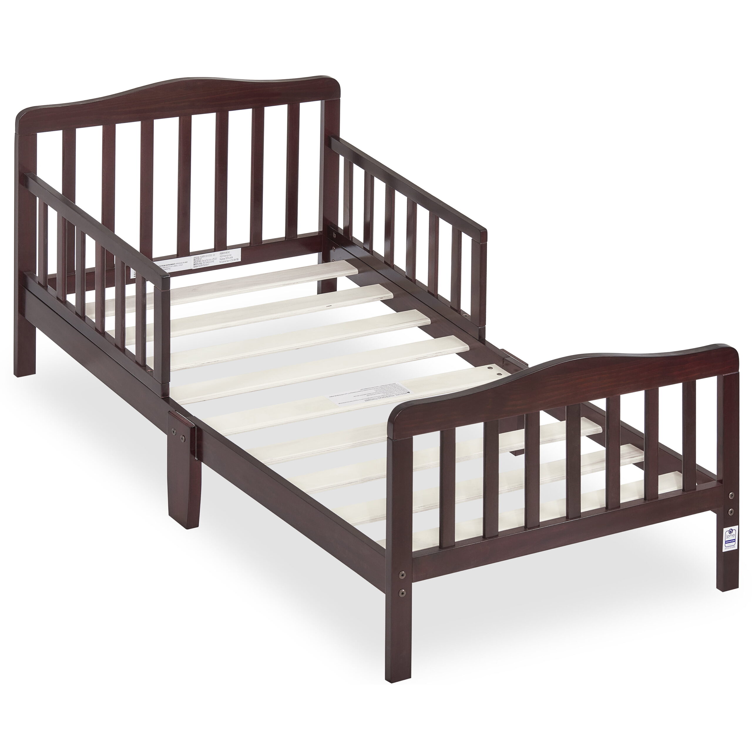 Delta Children Epic Wood Toddler Bed with Attached Guardrails. Bianca White