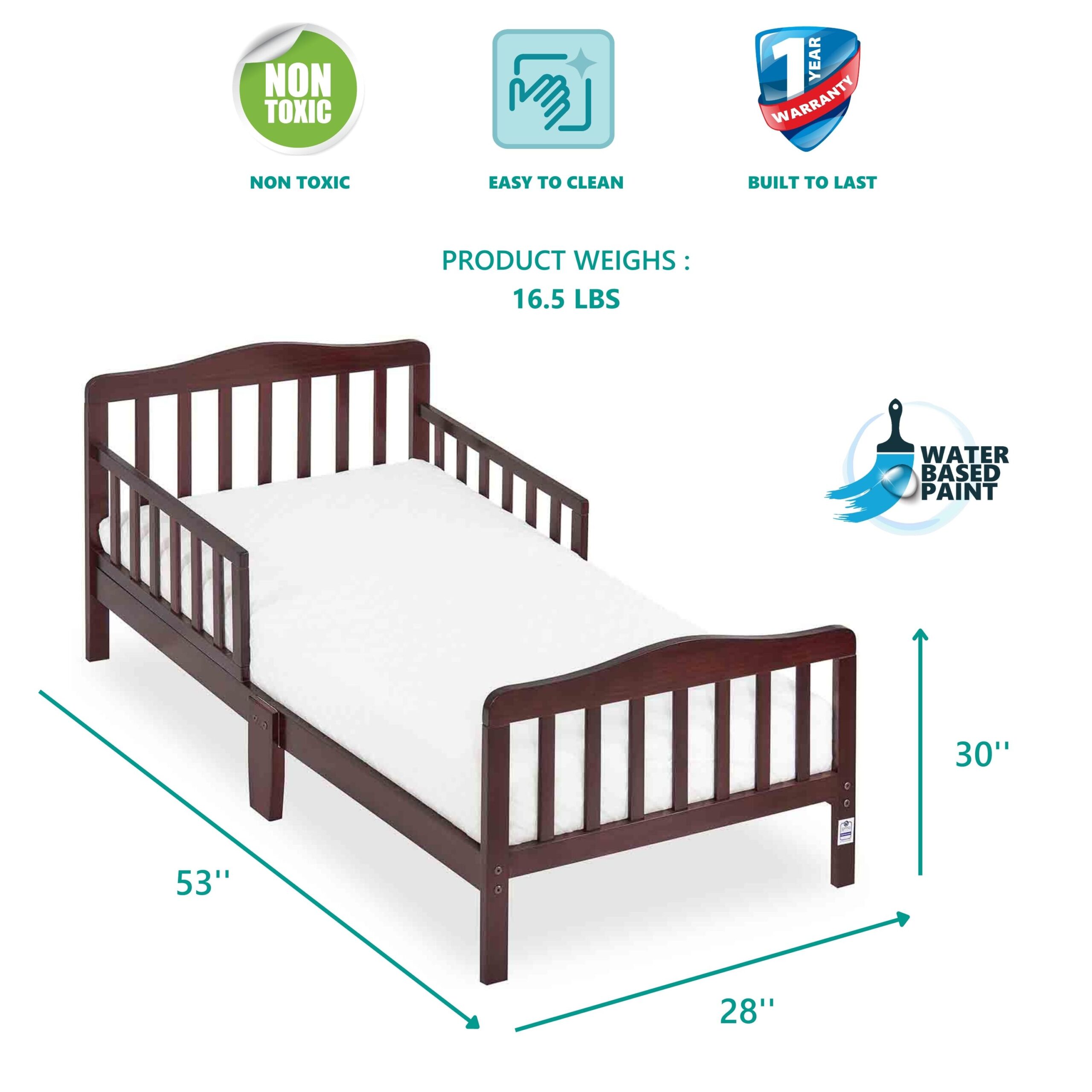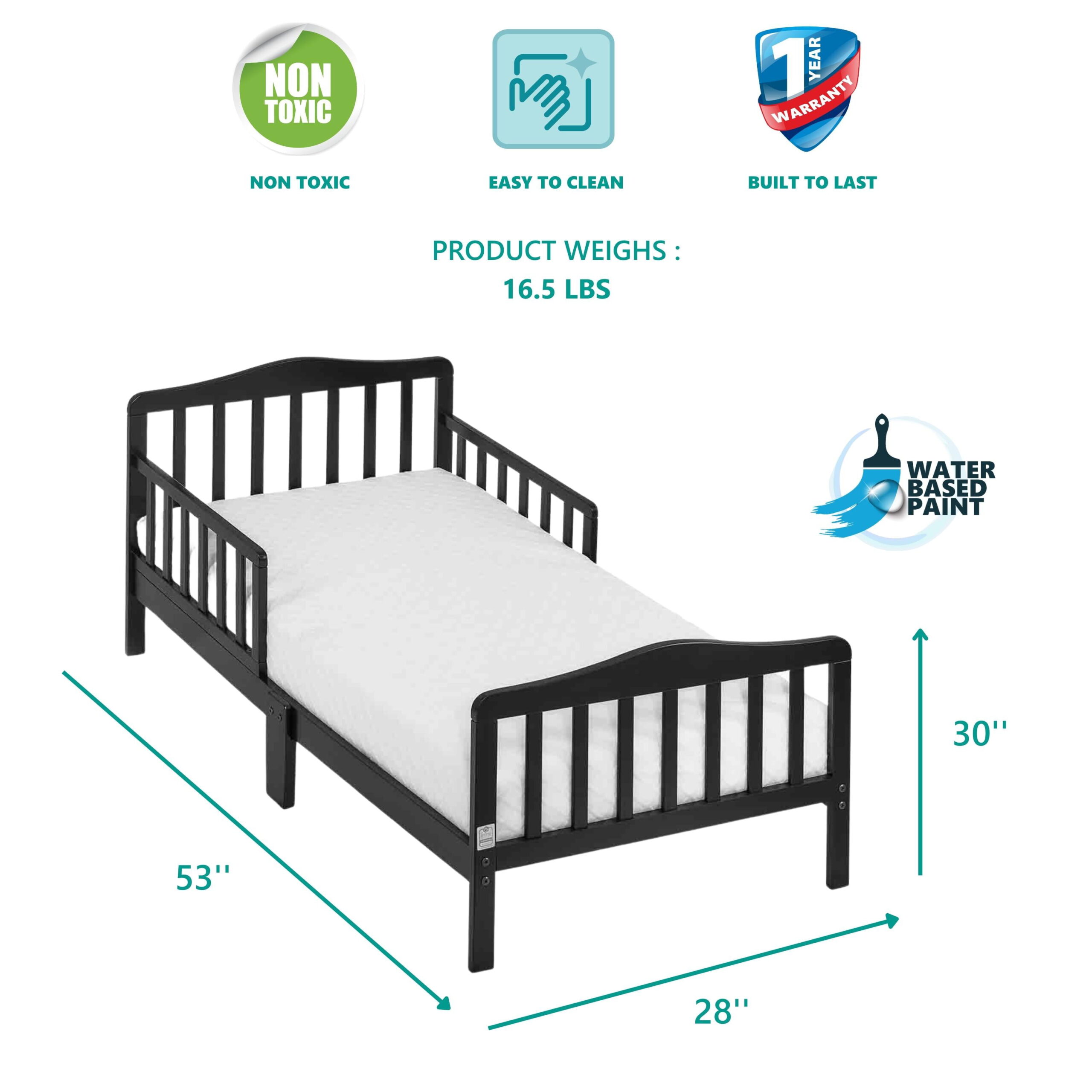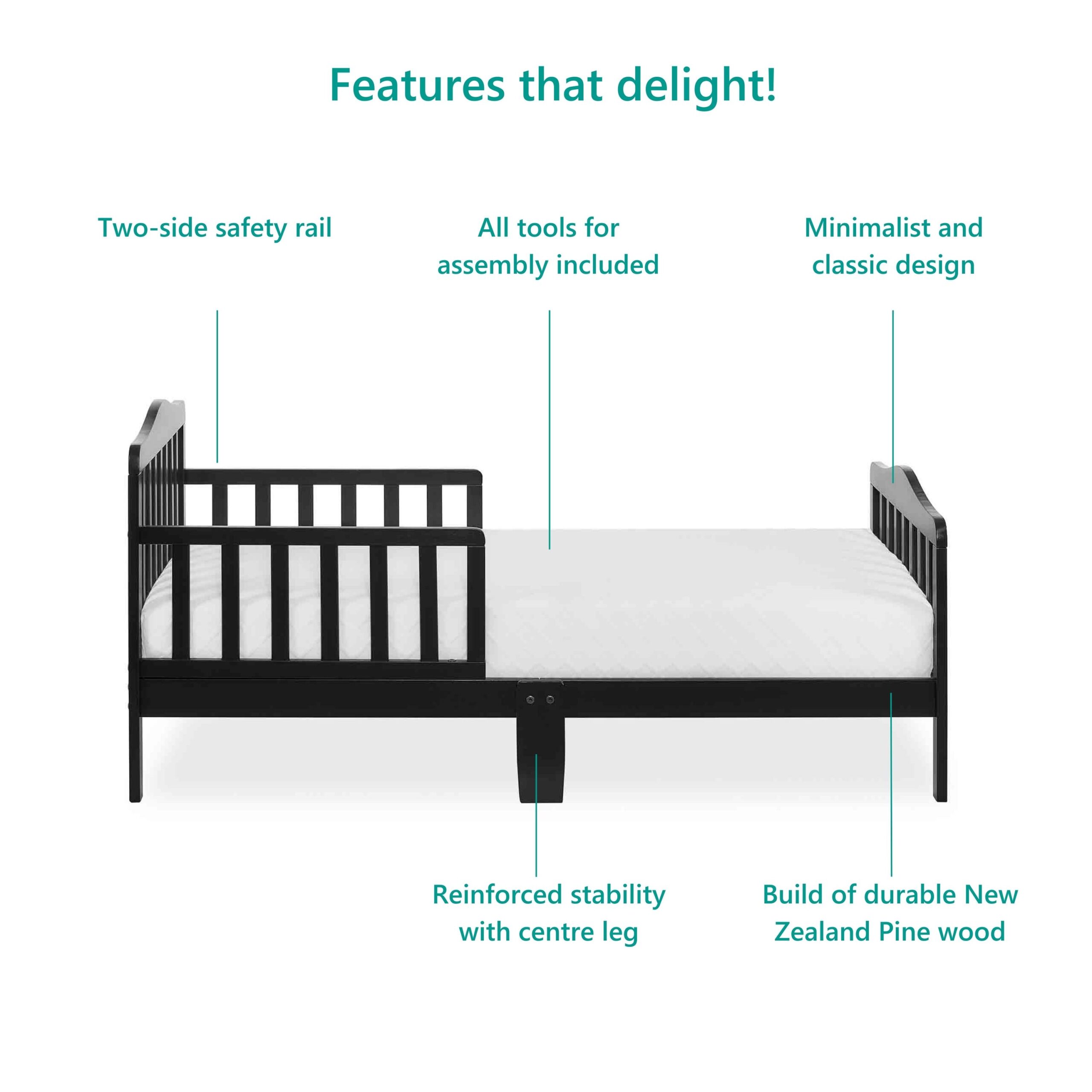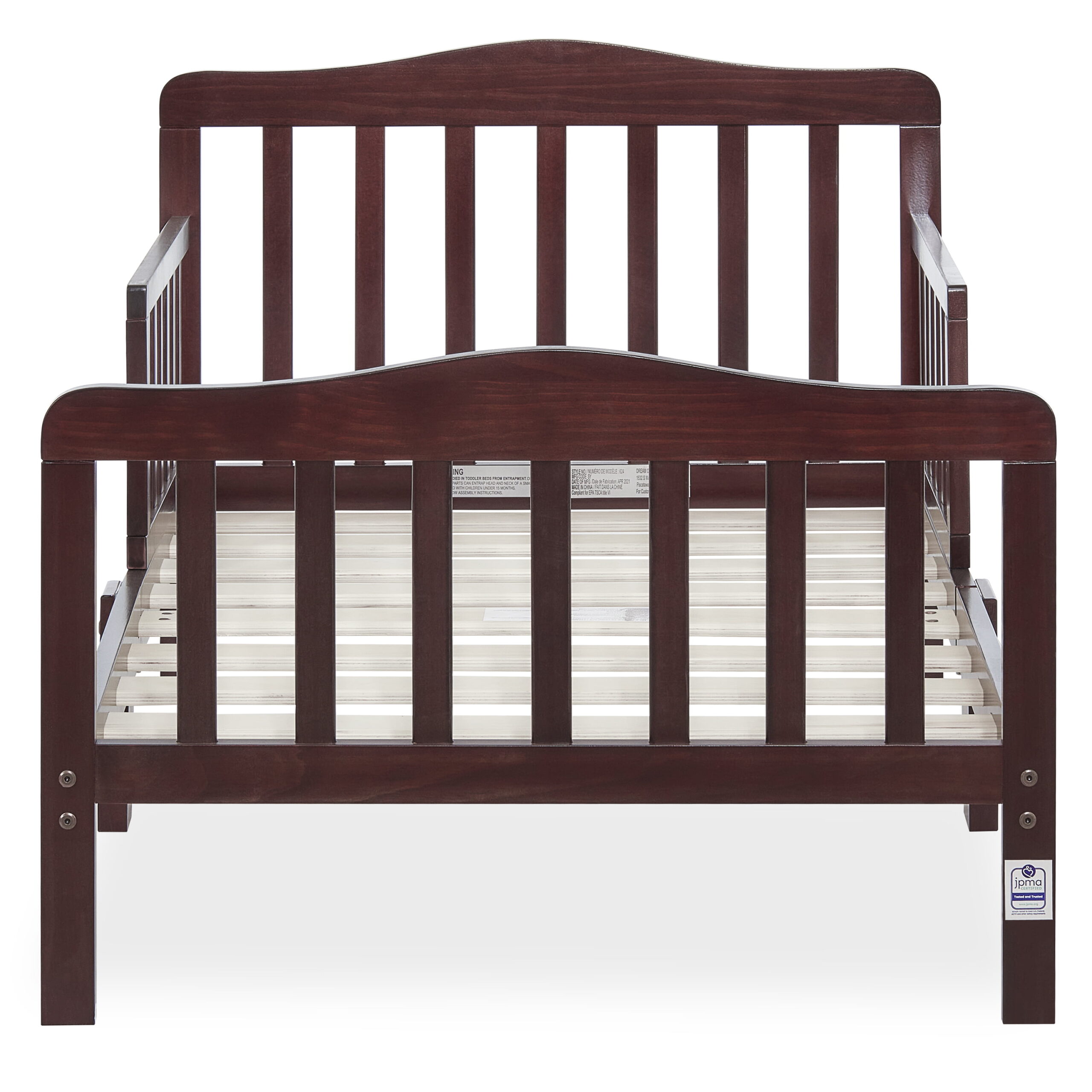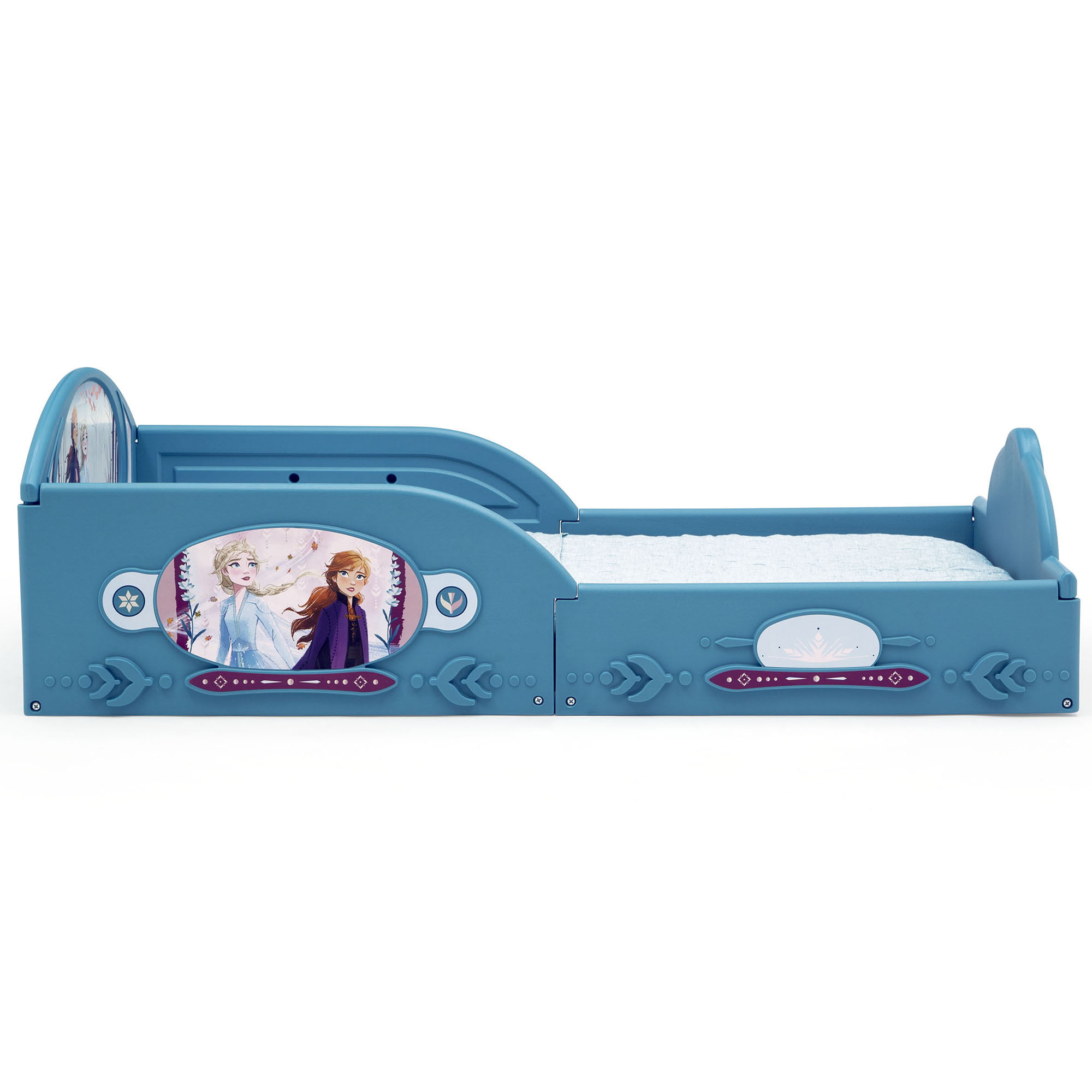 Delta Children Epic Wood Toddler Bed with Attached Guardrails. Bianca White