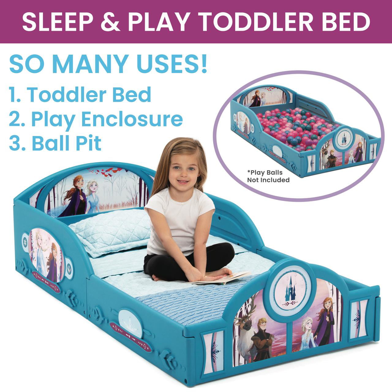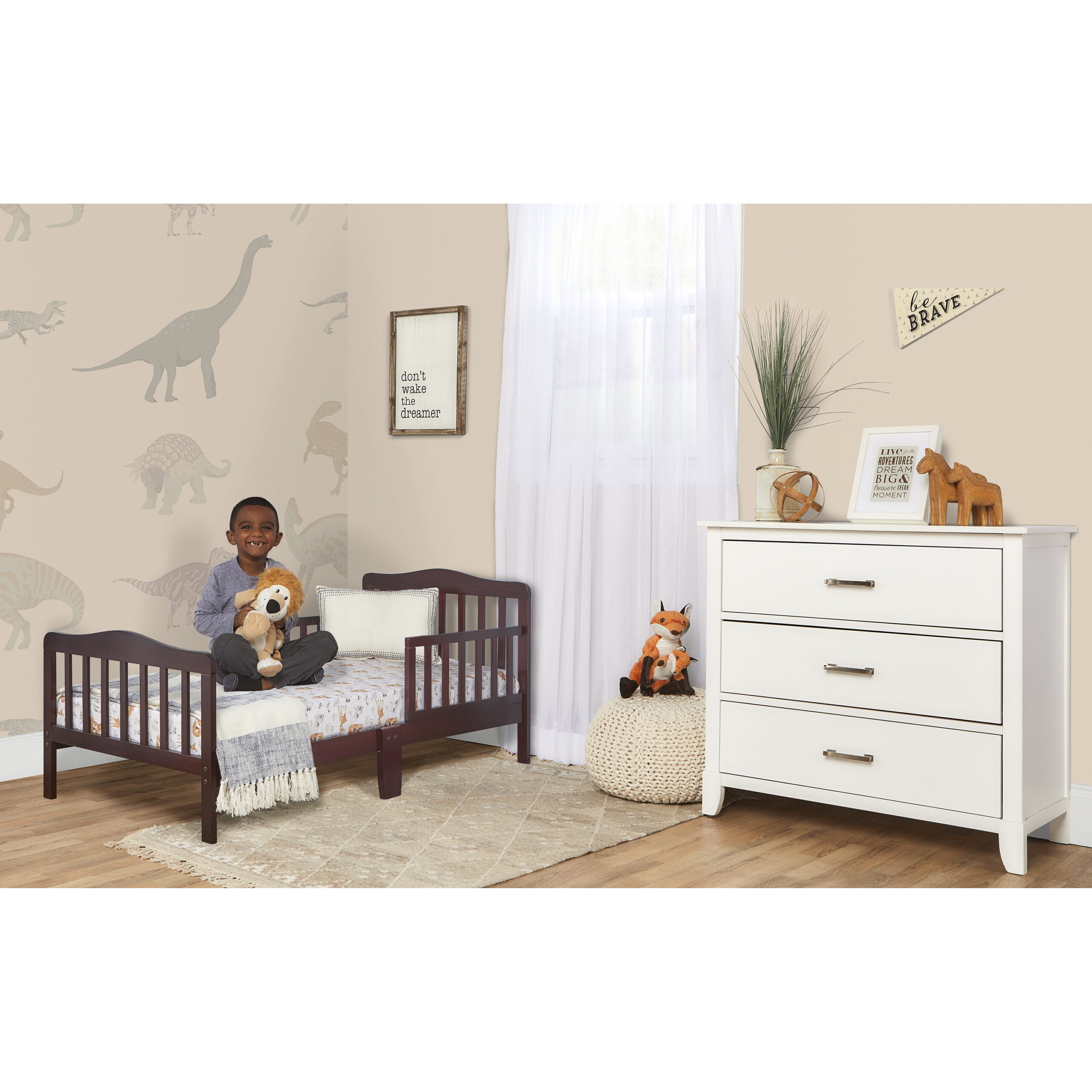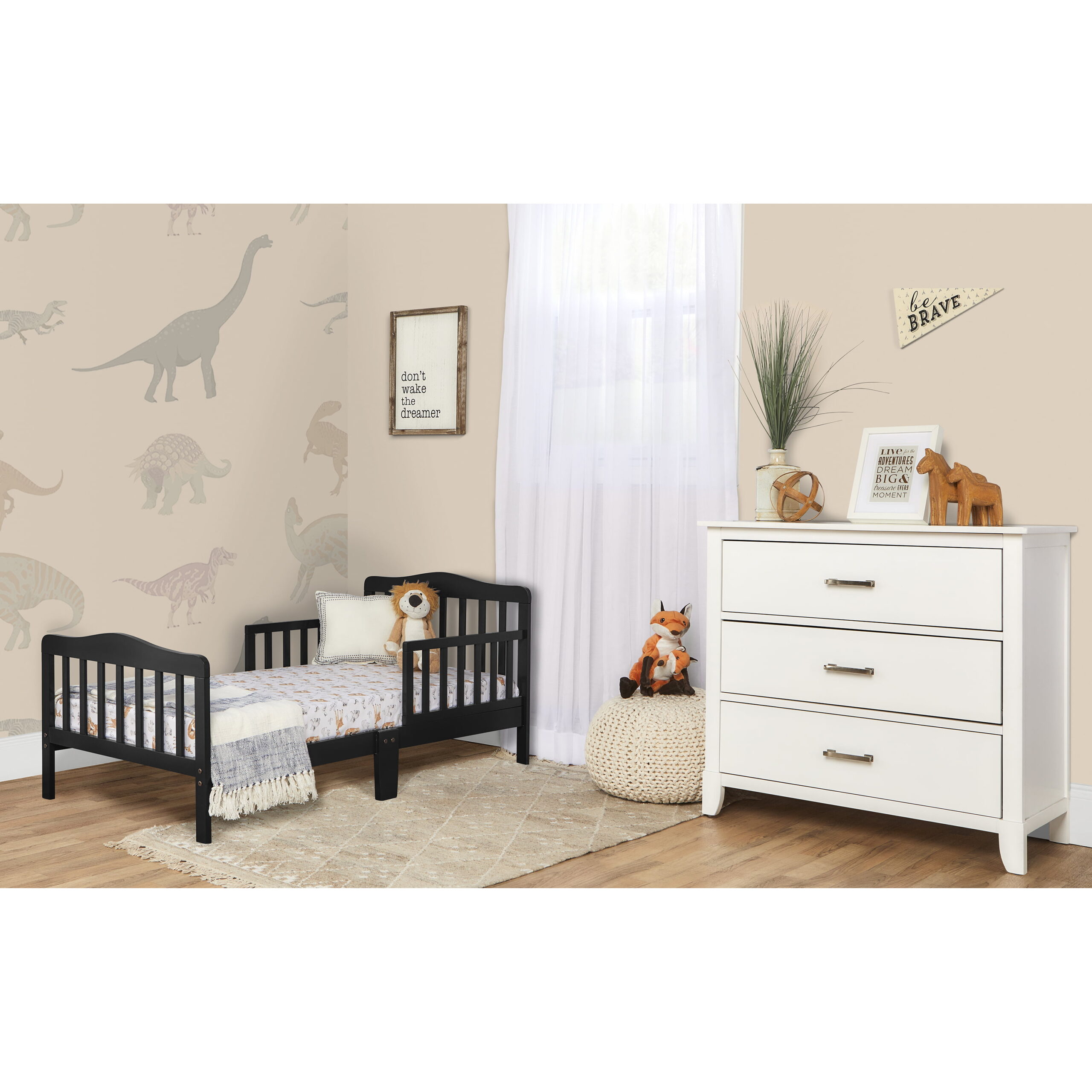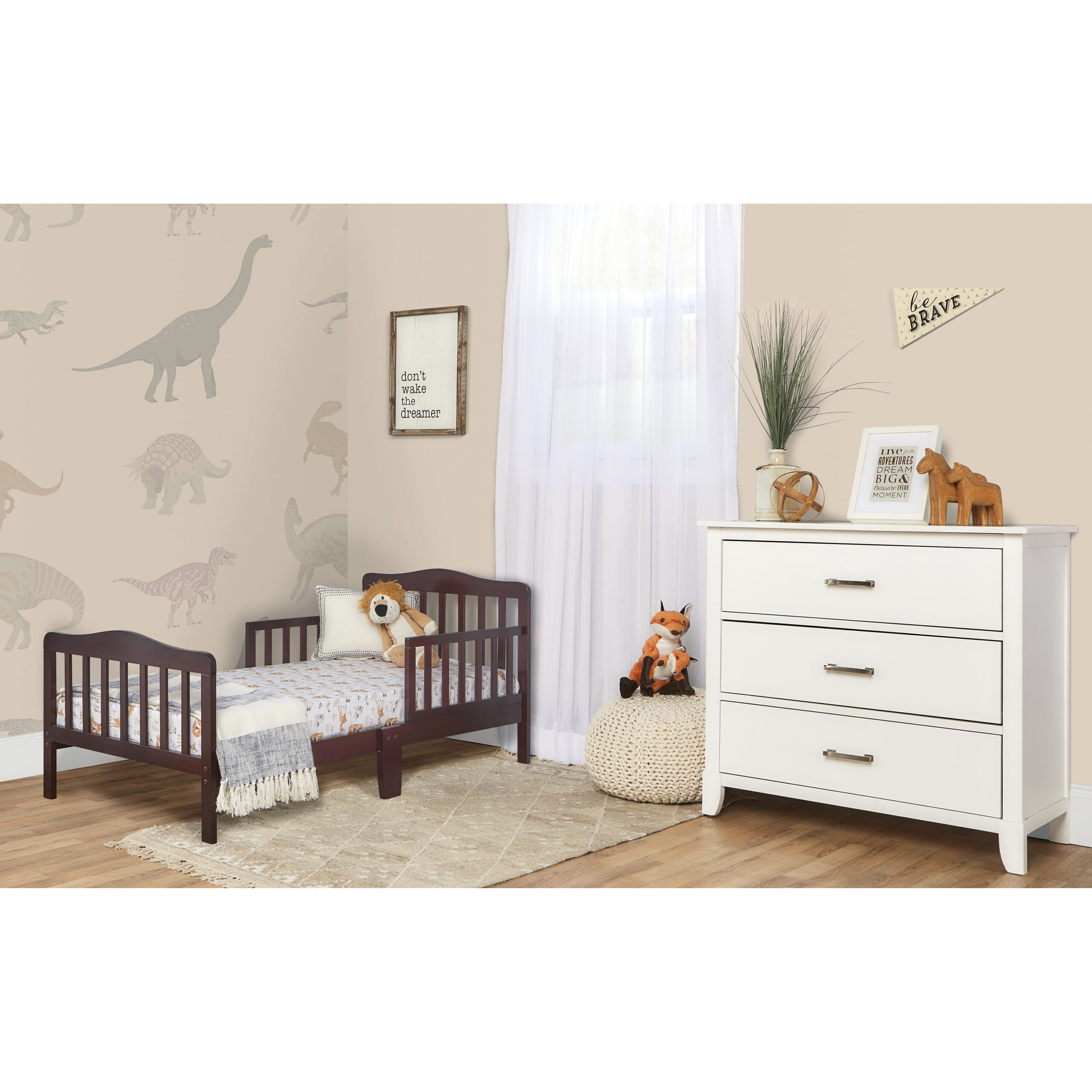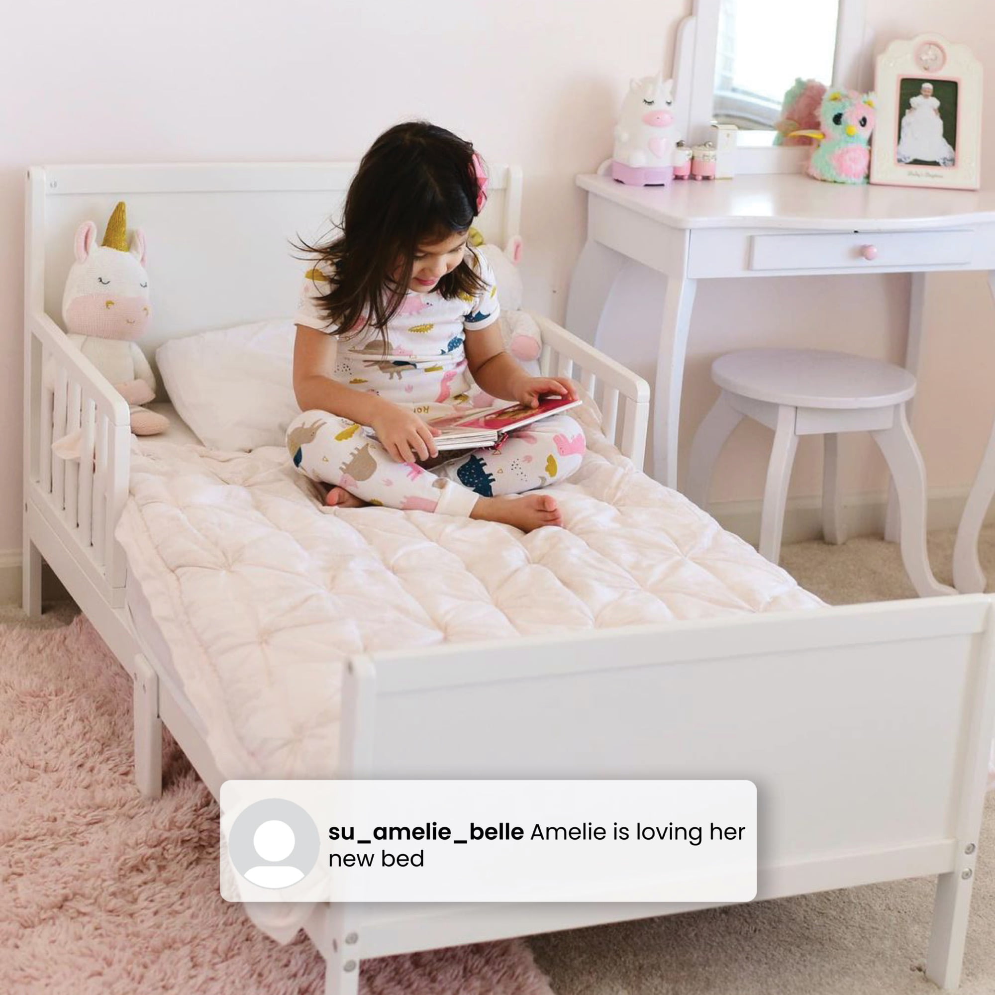 Delta Children Epic Wood Toddler Bed with Attached Guardrails. Bianca White