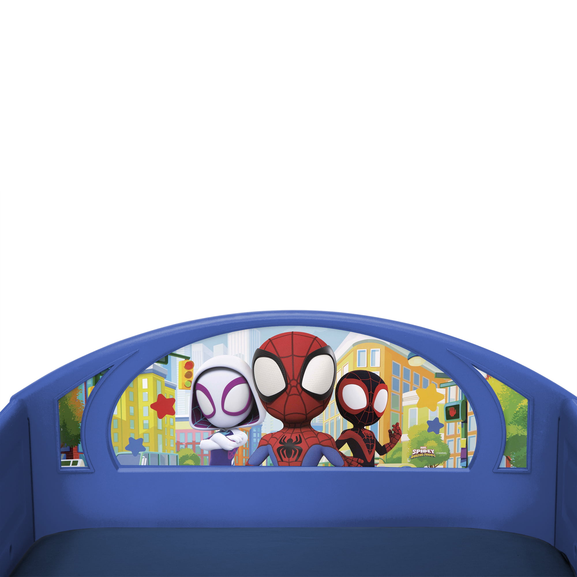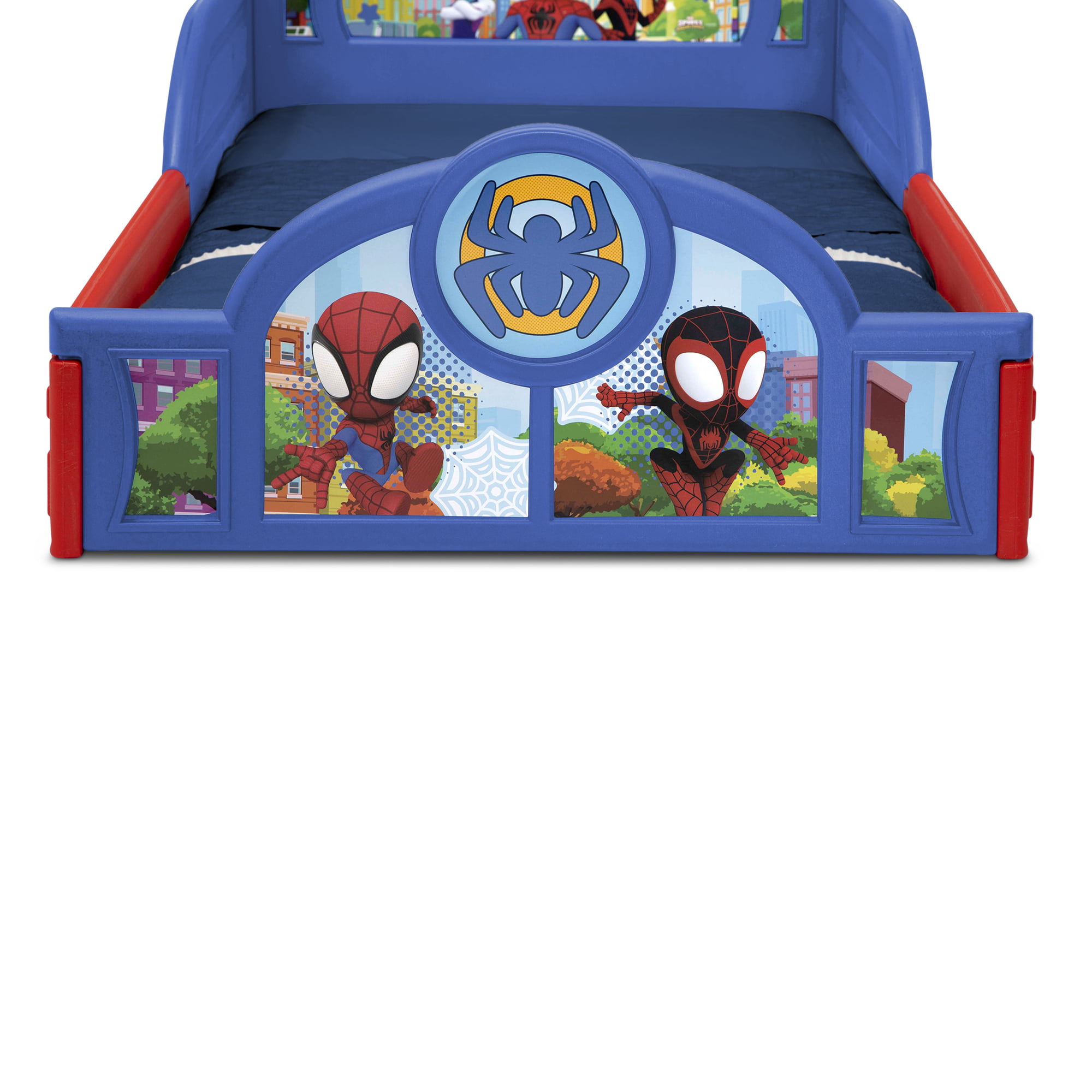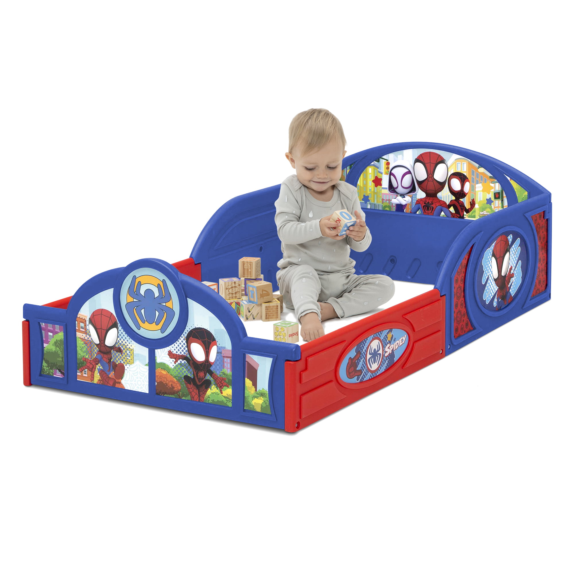 CoComelon Sleep and Play Toddler Bed with Built-In Guardrails by Delta Children. Blue/Multi