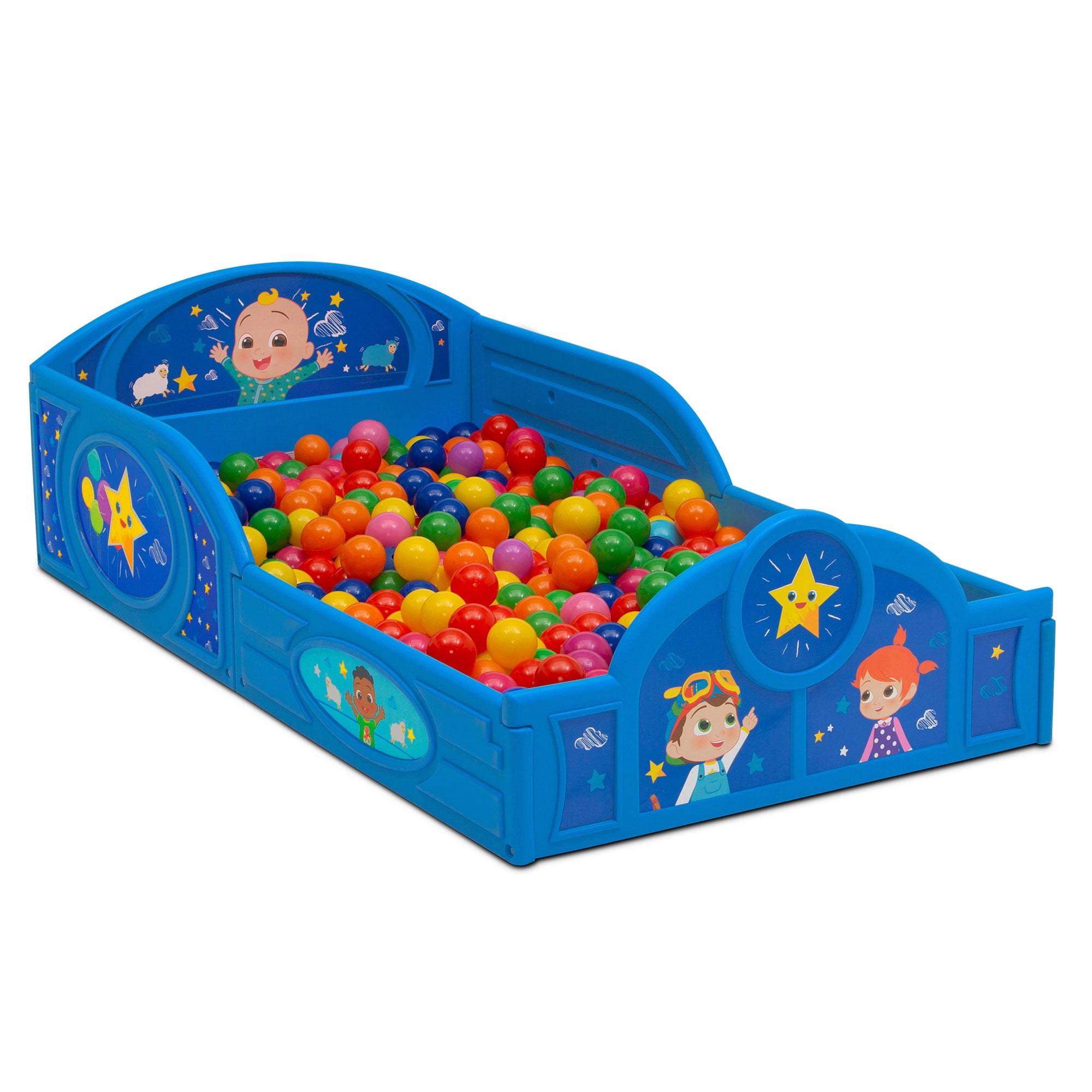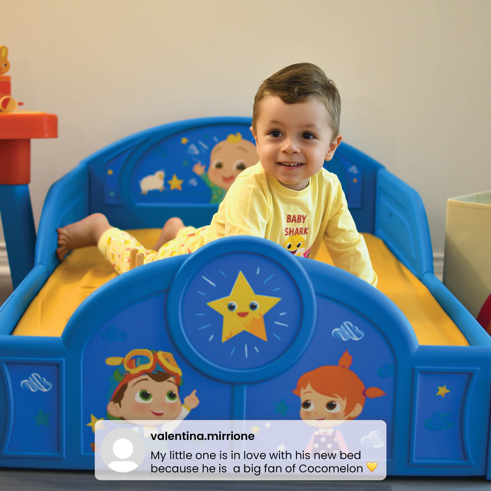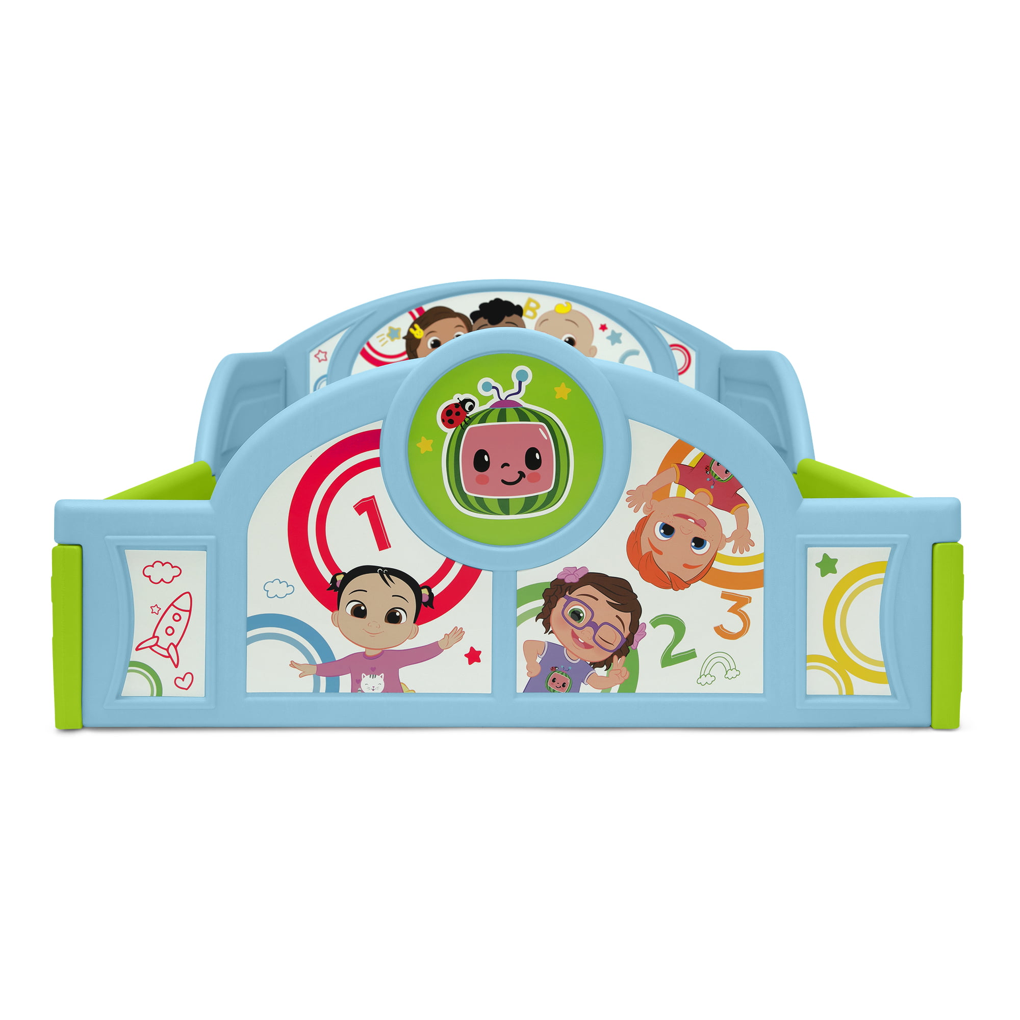 CoComelon Sleep and Play Plastic Toddler Bed with Built-in Guardrails