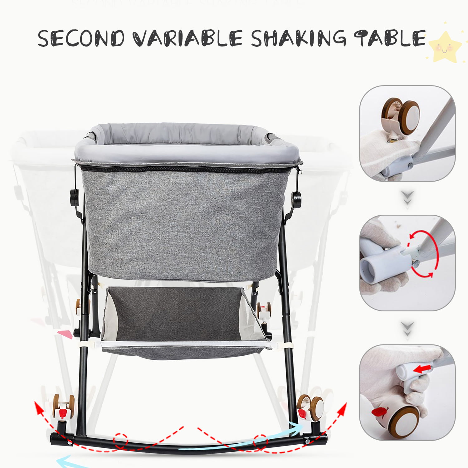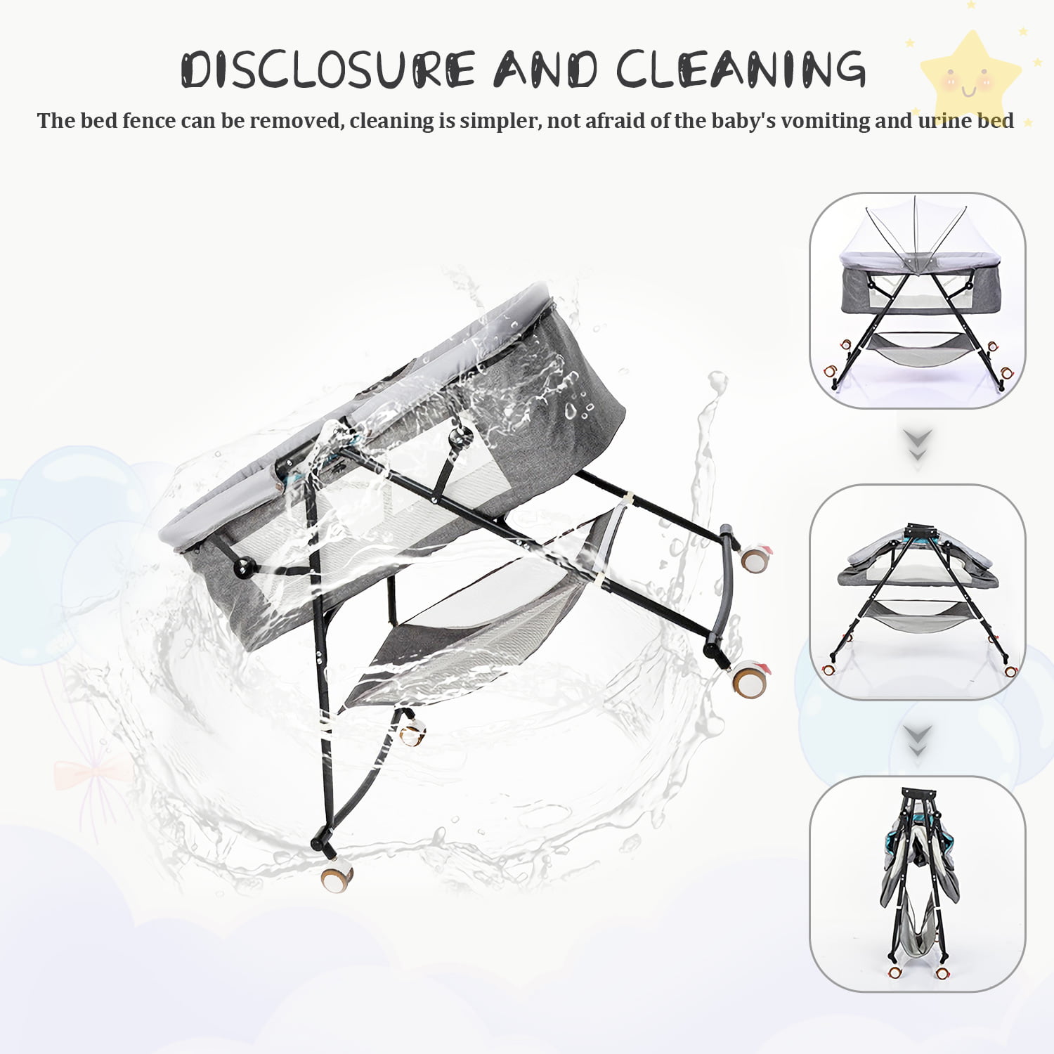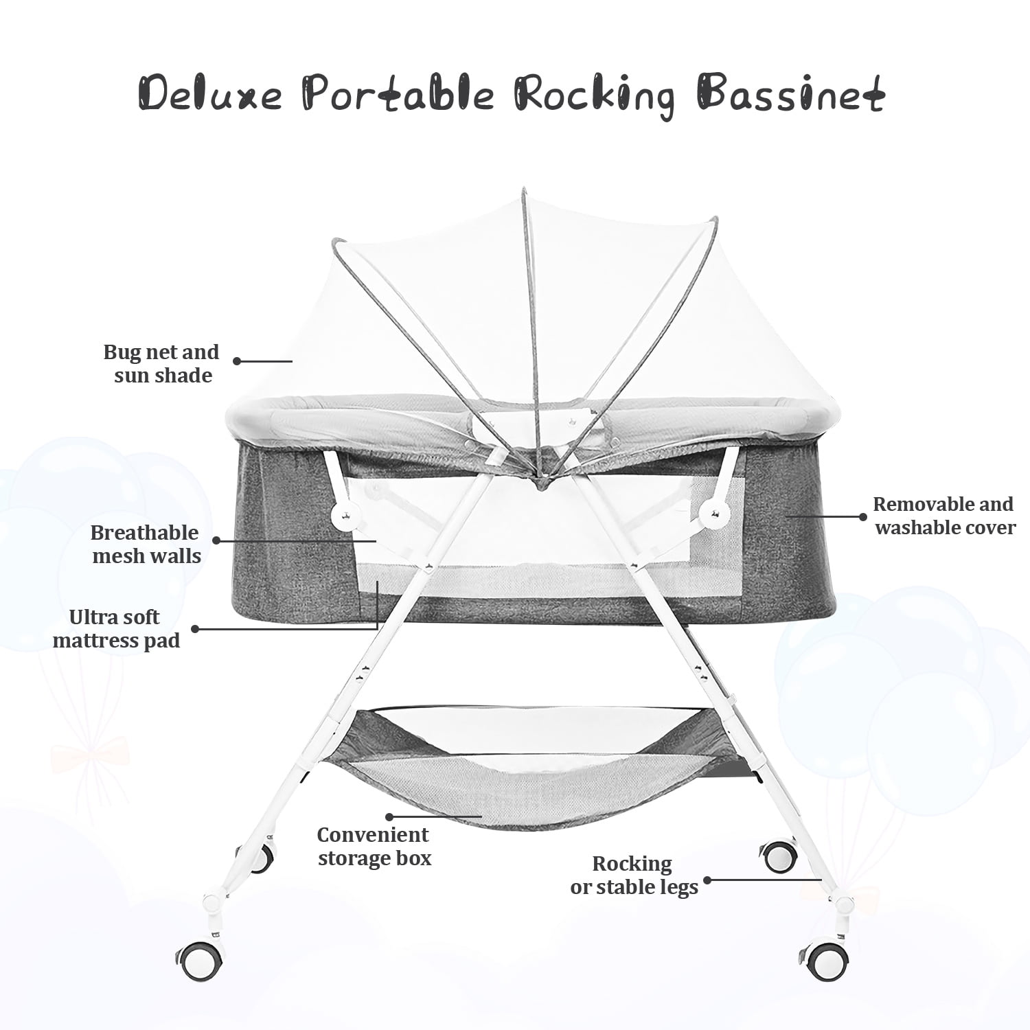 Bassinet for Babies. Yadala 4 in 1 Portable Rocking Bassinet. Quick-Fold Crib for Newborn Girl Boy Infant. Grey