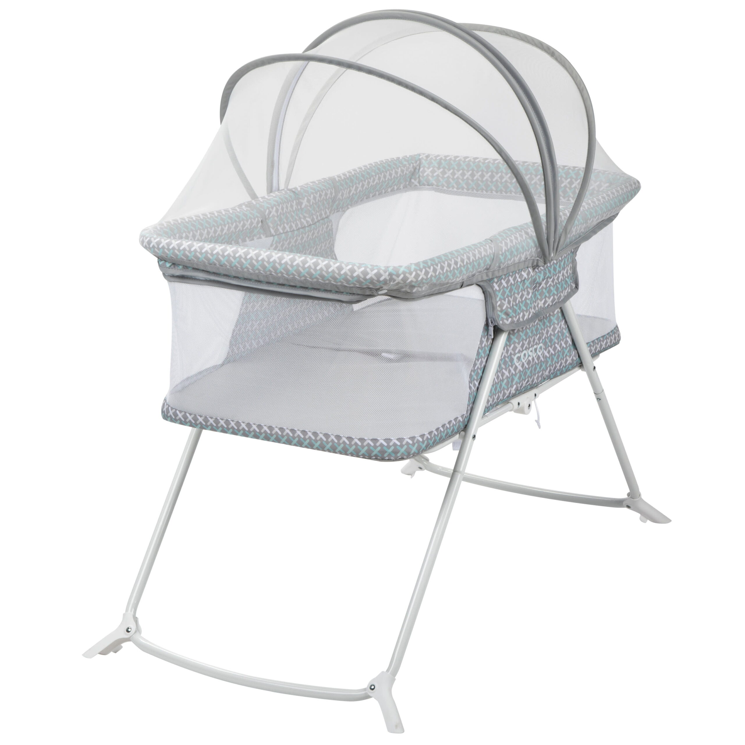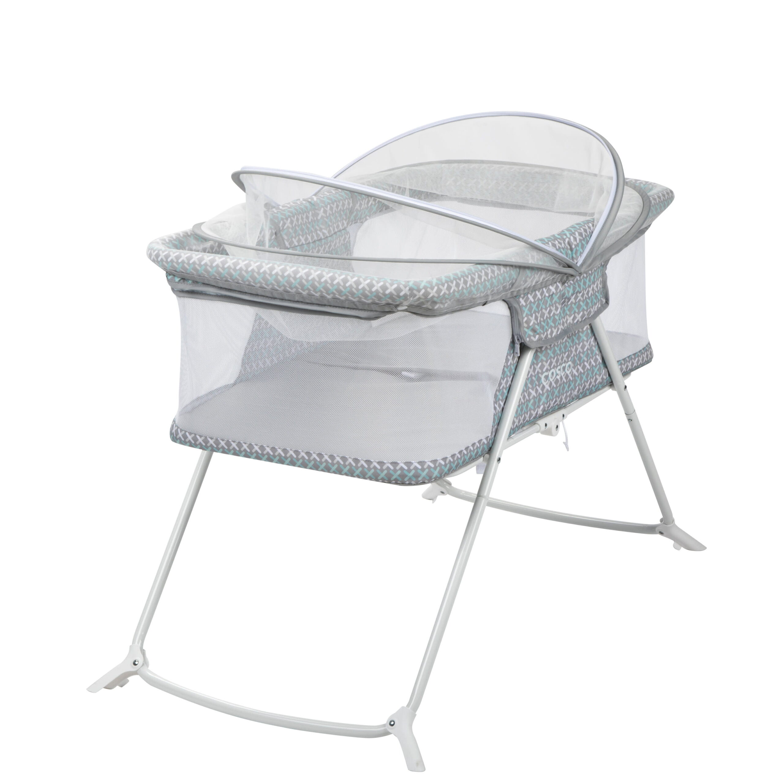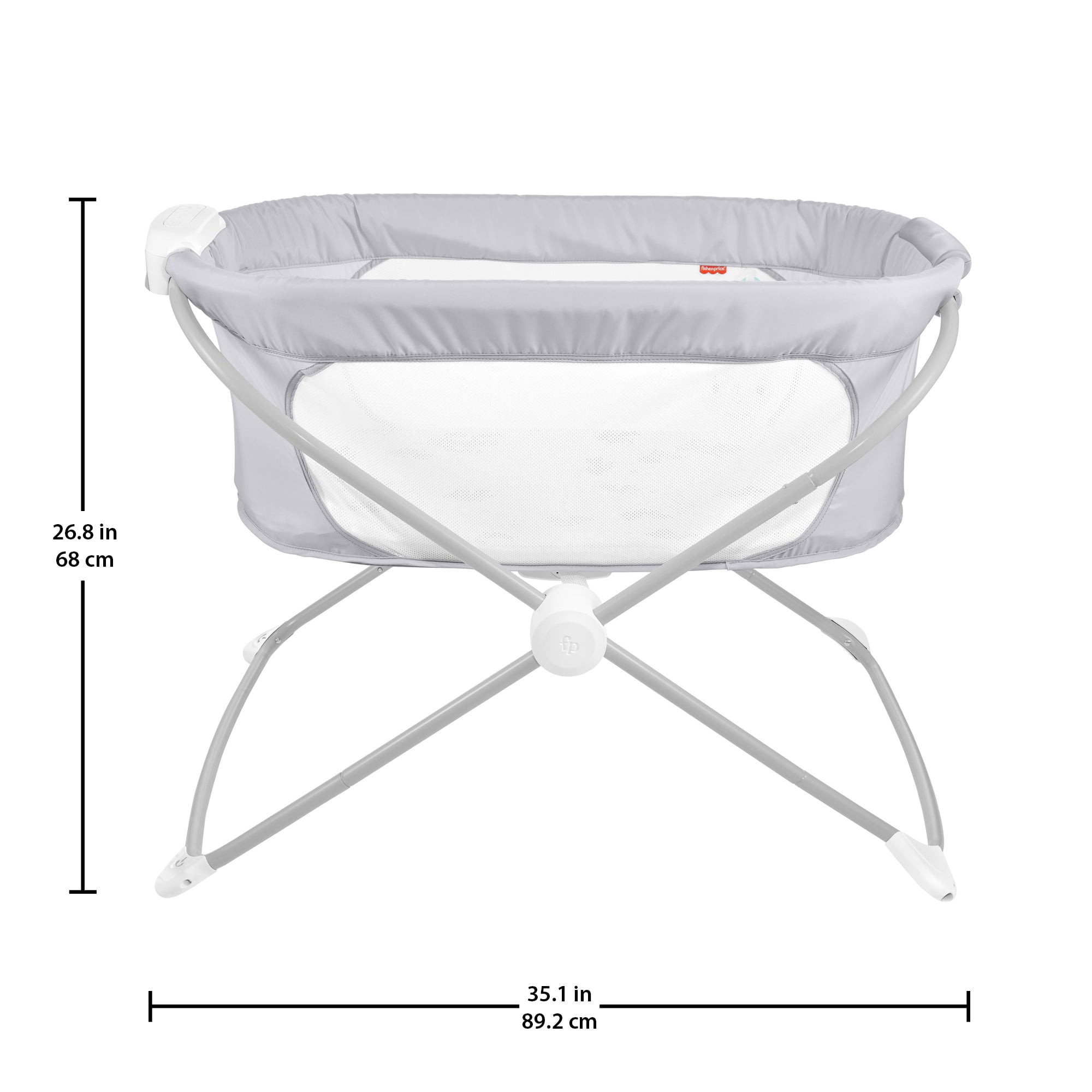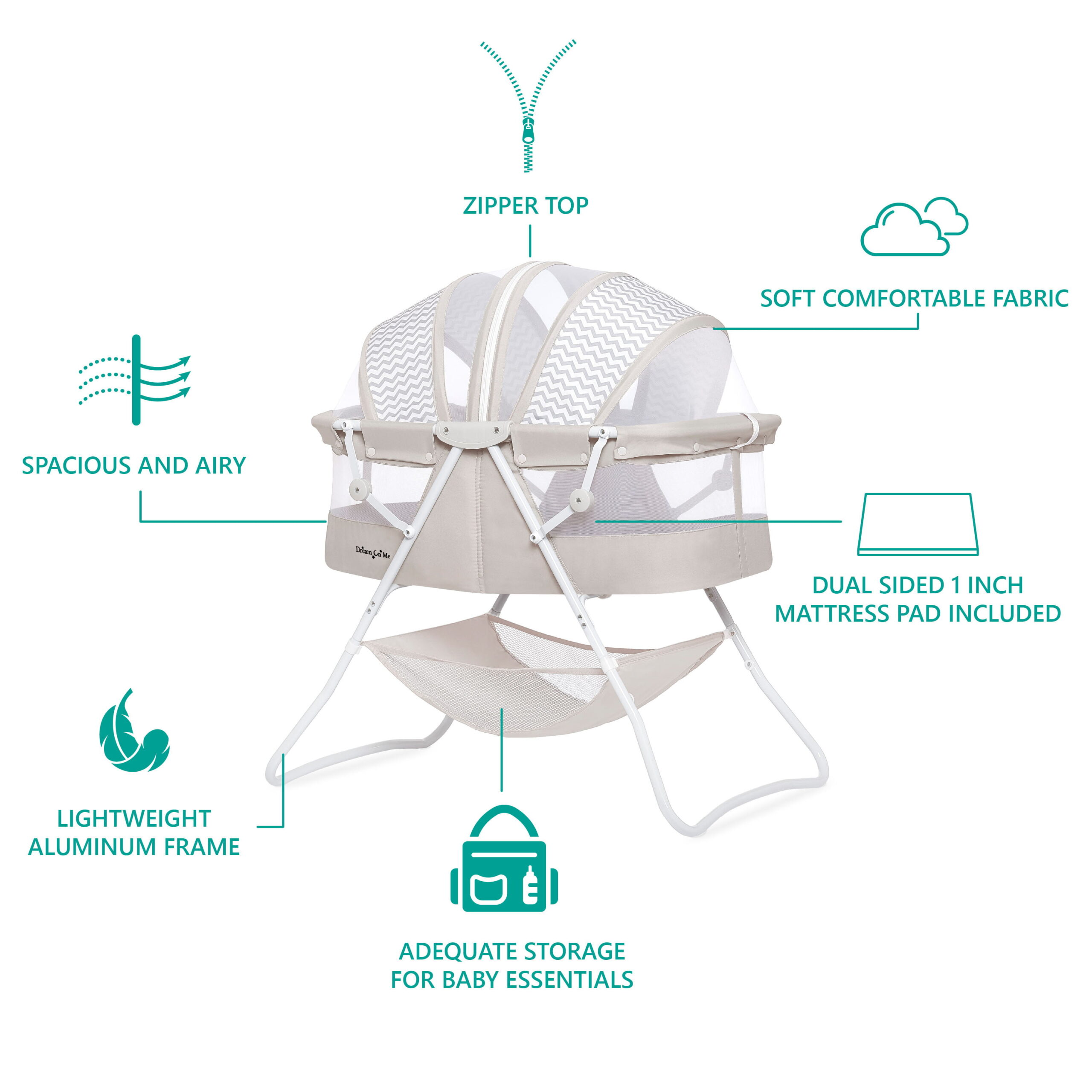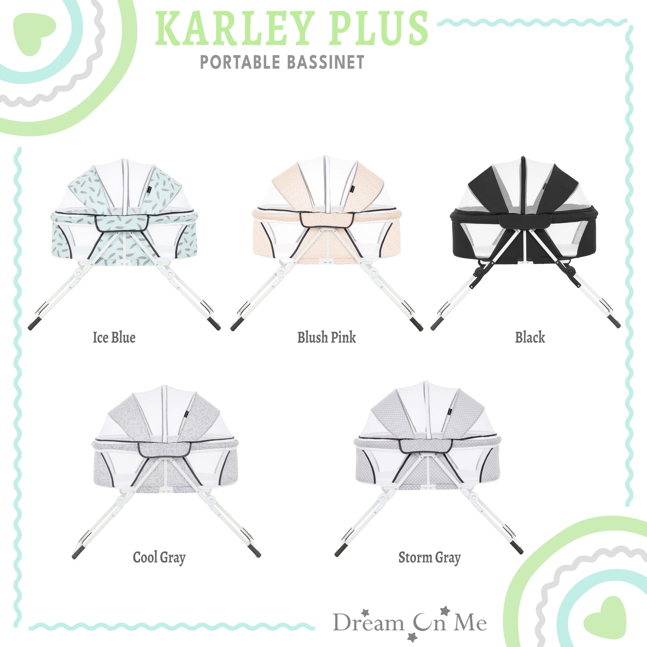 Dream On Me Karley Bassinet in Grey. Quick Fold and Easy to Carry. Large Storage Basket