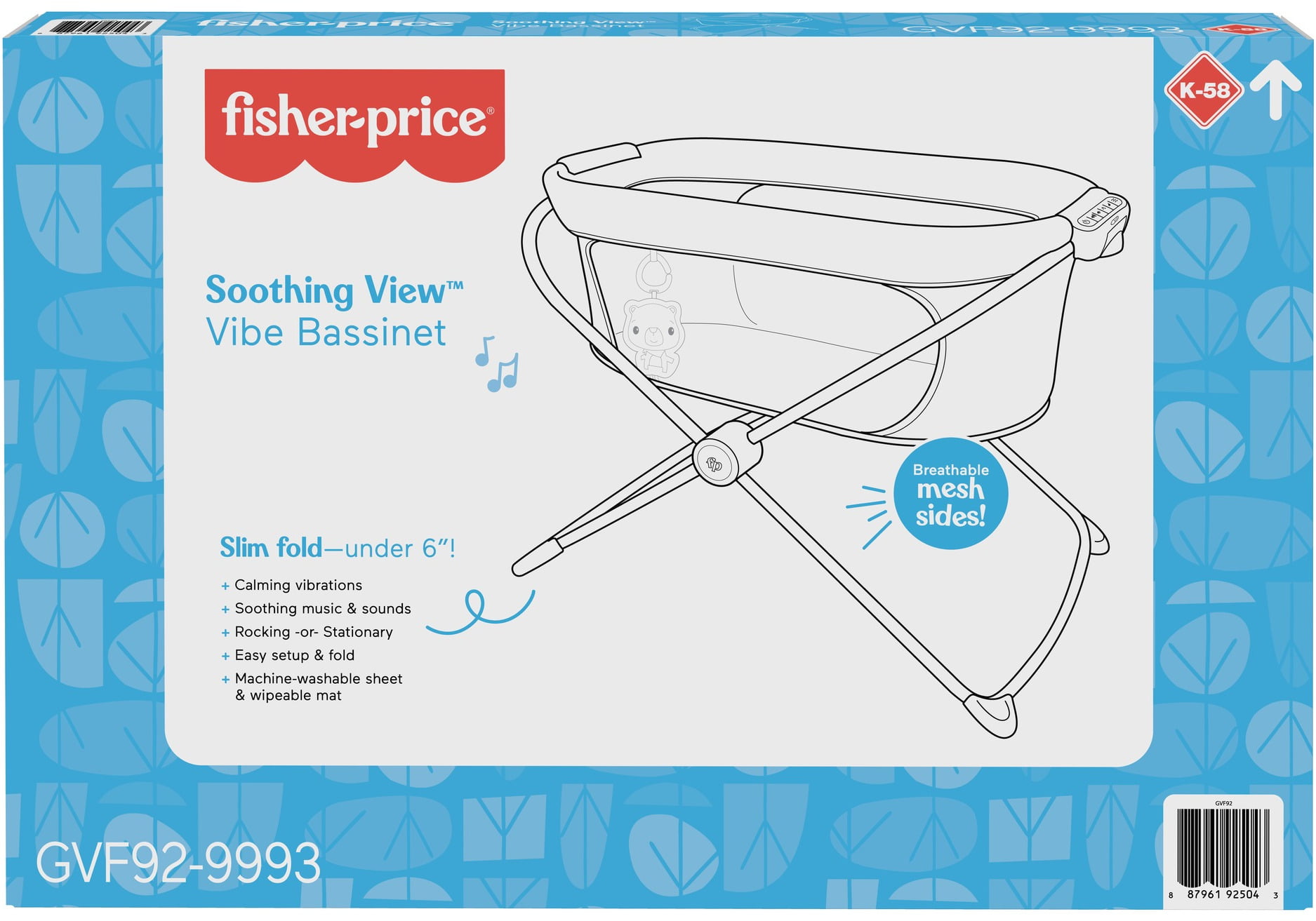 Fisher-Price Soothing View Vibe Bassinet Portable Baby Crib with Music & Vibrations. Cool Cactus